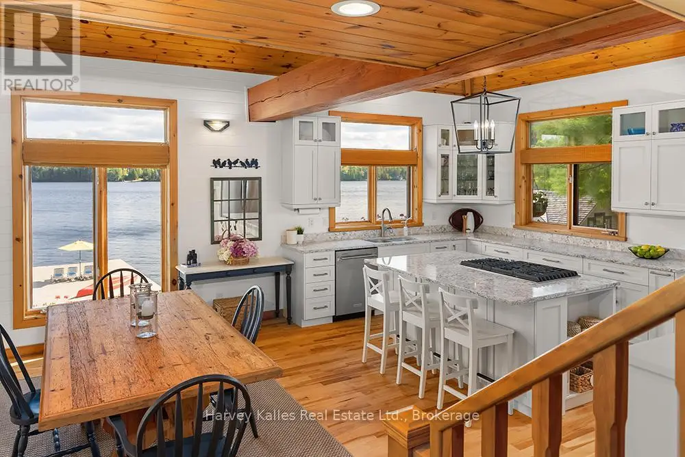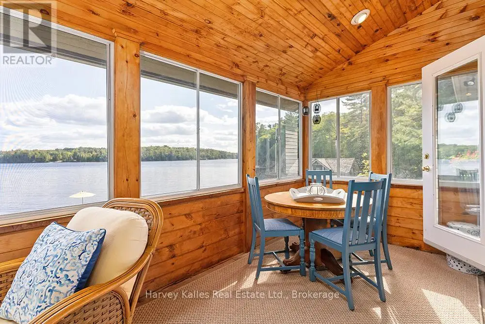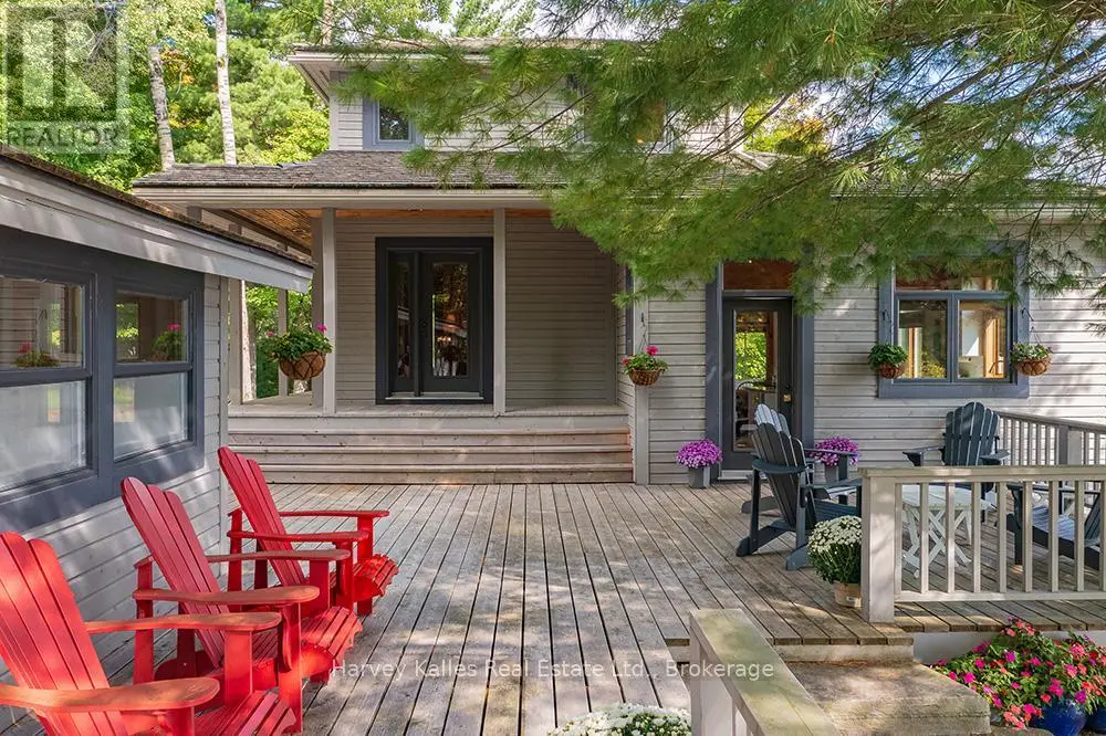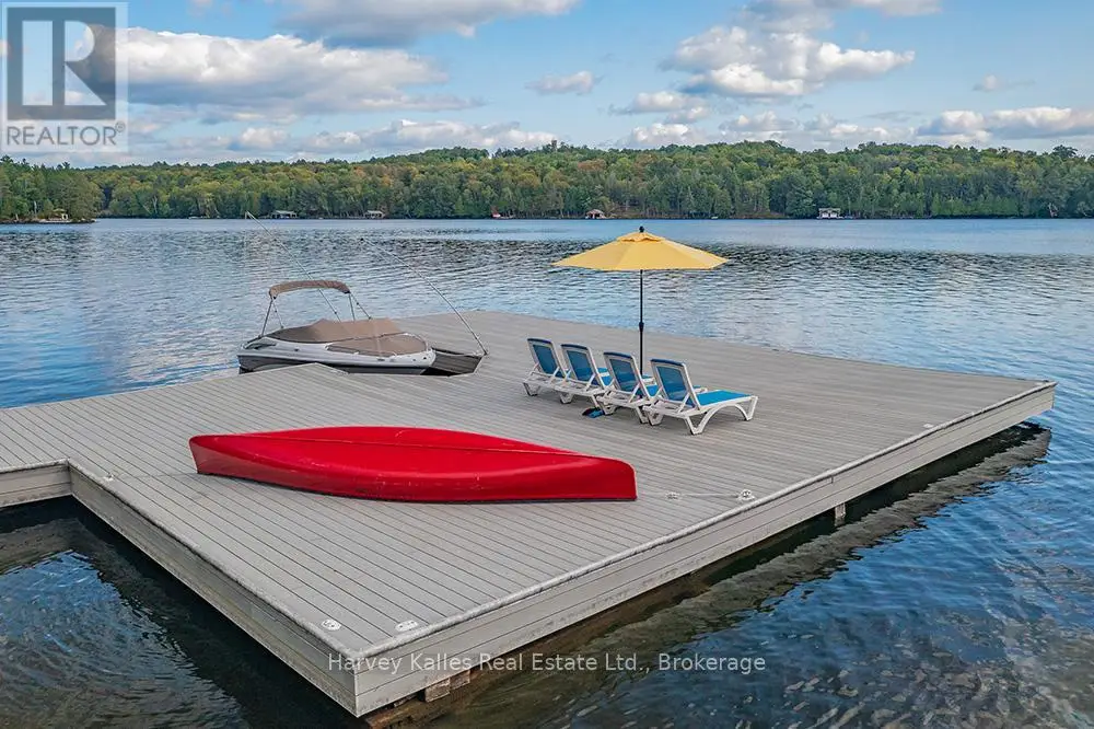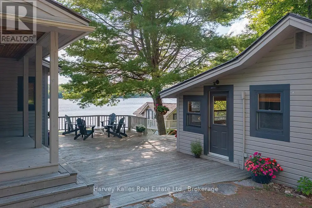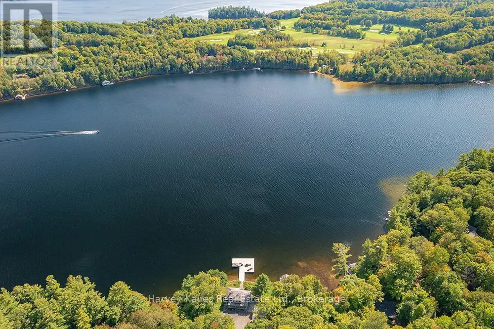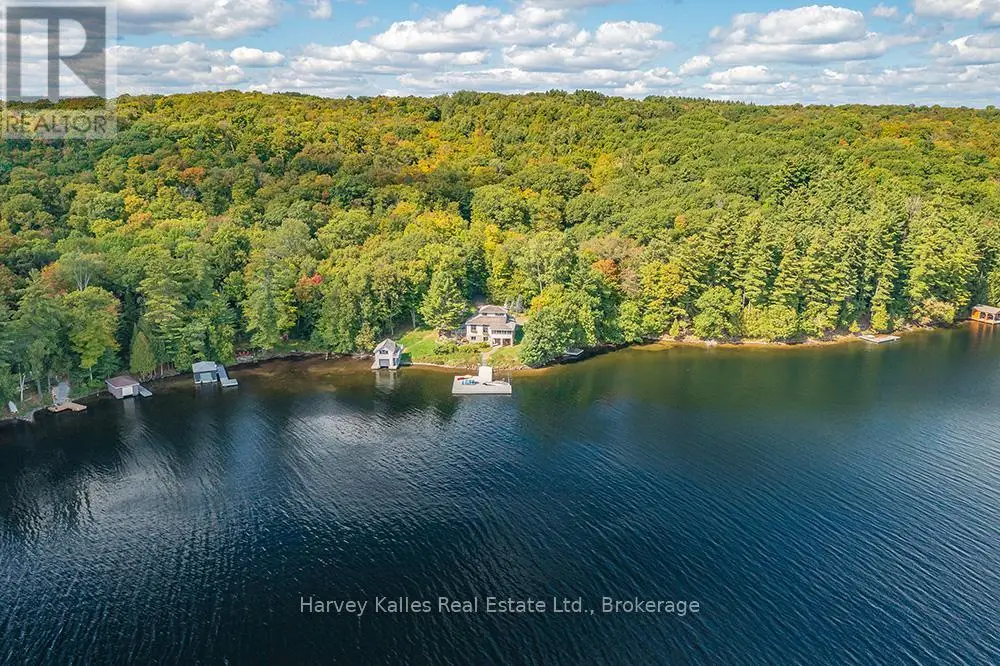 Elevate your lakeside lifestyle to unparalleled heights along Lake of Bays's coveted shores. Ideally situated with sought-after southern exposure, this remarkable property boasts an impressive 332' of frontage and 5.74 acres. For those who wish to have additional privacy, the adjacent vacant lot with 205' of frontage and 3.32 acres is also available for purchase (MLS #X12102319). Upon entering the main cottage, you'll love the sunlit kitchen with exquisite finishes and built-in appliances. The open-concept layout is a dream for those who love to entertain and the spacious sunroom offers additional space for your guests where they can soak in the mesmerizing lake views. This multi-level cottage ingeniously provides a thoughtful separation between the guest bedrooms, owners retreat and living space. The primary bedroom suite is perfectly tucked away, featuring a full ensuite bathroom, a walk-in closet, and a private balcony, affording you a personal retreat that's second to none. The two additional bedrooms are located on the lower level, each with lake views and access to a full guest bathroom and a walkout from the family room to the lakeside. An independent secondary cottage is mere steps away, equipped with a full kitchen, a 3-piece bathroom, and two bedrooms, ensuring ample accommodations for your guests or family. At the water's edge, a shallow, sandy entry to Lake of Bays beckons individuals of all ages, providing a safe and inviting place to wade into the crystal-clear waters. The extensive composite dock is your gateway to endless days basking in the warm sun, and as a bonus, a 2-storey boathouse not only safeguards your watercraft but also offers extra storage or accommodations. Completing this splendid package is a new single-car garage with large studio or gym space. Whether you aspire to make this your permanent residence or seasonal retreat, this property leaves no desire unfulfilled (id:6370)