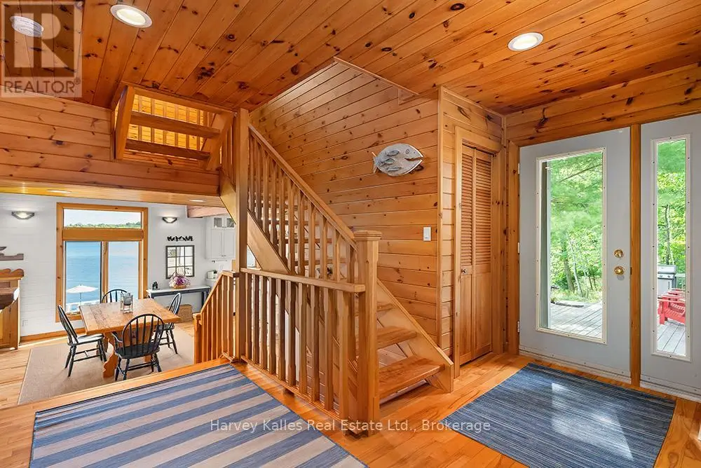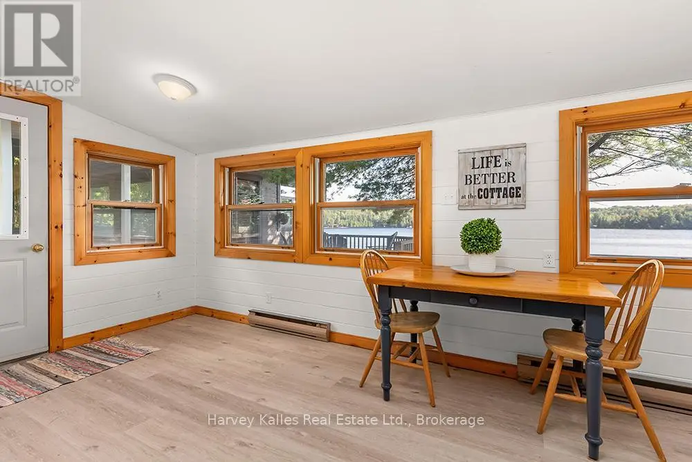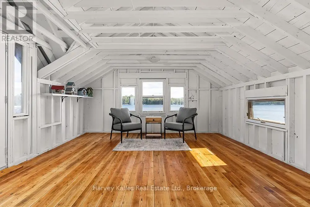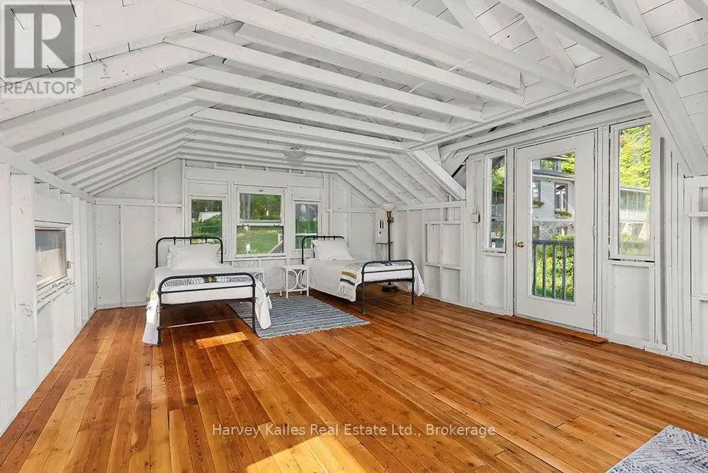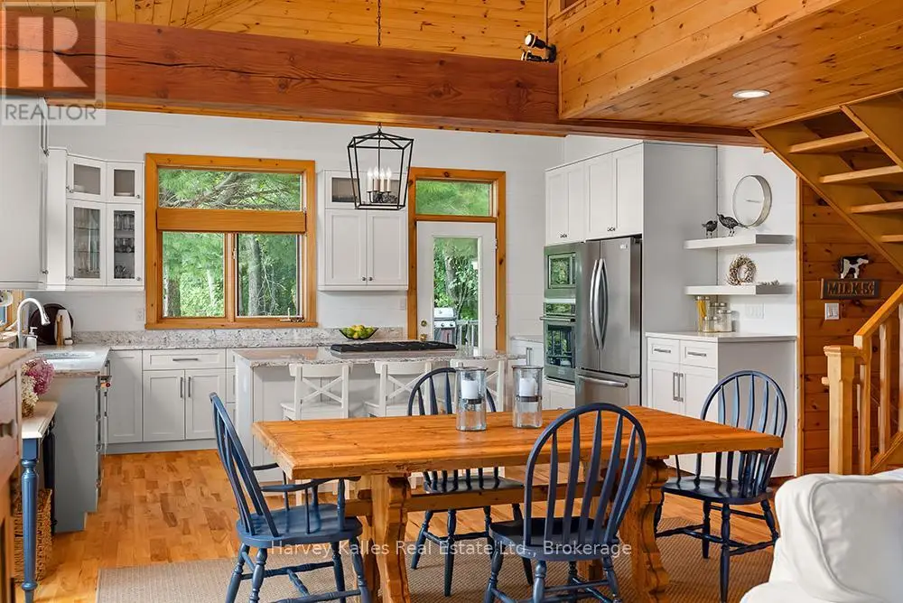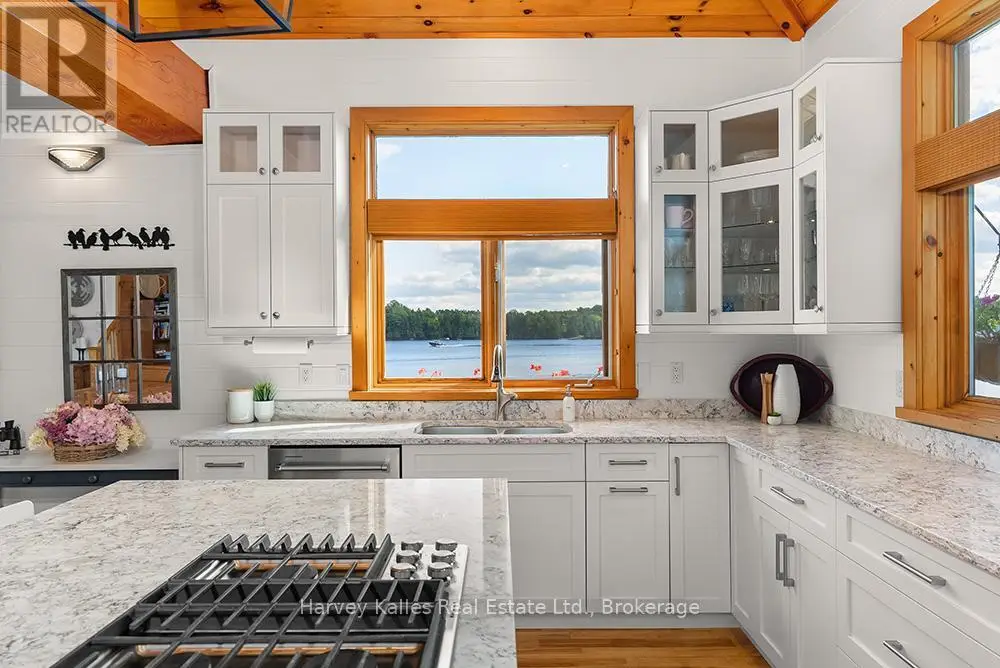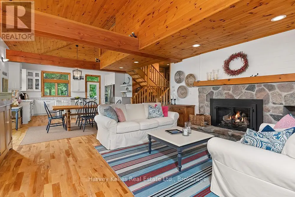Elevate your lakeside lifestyle to unparalleled heights along Lake of Bays's coveted shores. Ideally situated with sought-after southern exposure, this remarkable property boasts an impressive 332' of frontage and 5.74 acres. For those who wish to have additional privacy, the adjacent vacant lot with 205' of frontage and 3.32 acres is also available for purchase (MLS #X12102319). Upon entering the main cottage, you'll love the sunlit kitchen with exquisite finishes and built-in appliances. The open-concept layout is a dream for those who love to entertain and the spacious sunroom offers additional space for your guests where they can soak in the mesmerizing lake views. This multi-level cottage ingeniously provides a thoughtful separation between the guest bedrooms, owners retreat and living space. The primary bedroom suite is perfectly tucked away, featuring a full ensuite bathroom, a walk-in closet, and a private balcony, affording you a personal retreat that's second to none. The two additional bedrooms are located on the lower level, each with lake views and access to a full guest bathroom and a walkout from the family room to the lakeside. An independent secondary cottage is mere steps away, equipped with a full kitchen, a 3-piece bathroom, and two bedrooms, ensuring ample accommodations for your guests or family. At the water's edge, a shallow, sandy entry to Lake of Bays beckons individuals of all ages, providing a safe and inviting place to wade into the crystal-clear waters. The extensive composite dock is your gateway to endless days basking in the warm sun, and as a bonus, a 2-storey boathouse not only safeguards your watercraft but also offers extra storage or accommodations. Completing this splendid package is a new single-car garage with large studio or gym space. Whether you aspire to make this your permanent residence or seasonal retreat, this property leaves no desire unfulfilled (id:6370)