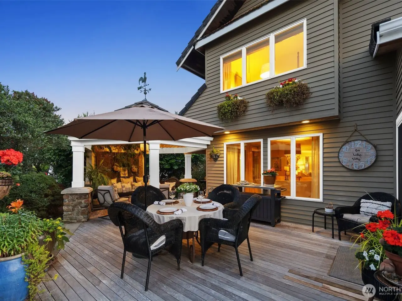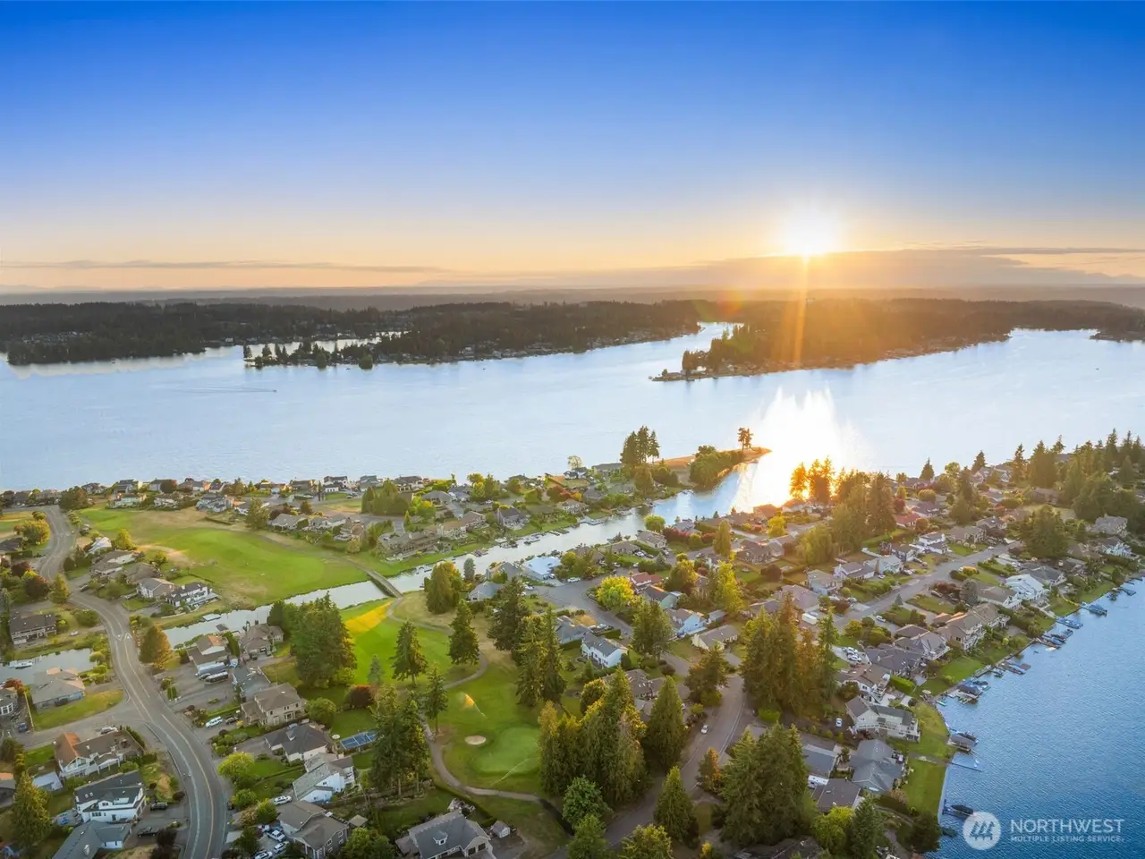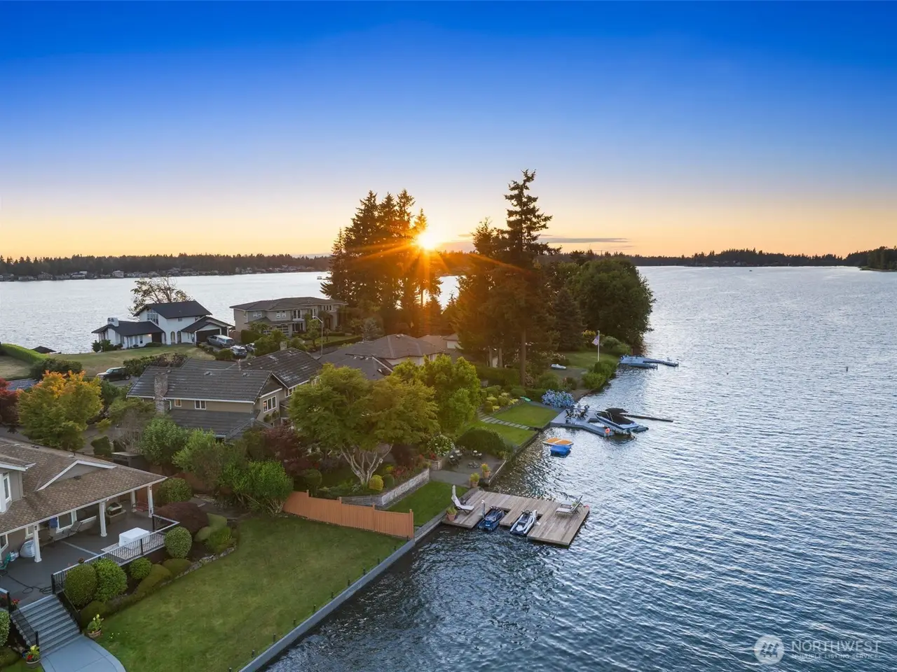 Complete serenity meets timeless resort-style living at Tapps Island. Tree-lined drive w/lush, manicured grounds & seasonally curated gardens lead to a rare first time offering: custom-built residence evokes the charm & tranquility of the South of France. Cobblestone path lead from front flower filled gardens to 70' of Lake Tapps' treasured shoreline. At water's edge: oversized dock, patio, swim area & picturesque Mt Rainier views. Designed w/an emphasis on style & elegance, maximizing effortless living. Unmatched comfort-perfect mix of sophisticated & casual spaces w/lux hand-picked architectural details. French doors open to wraparound porch w/stone pillars, gazebo, spa & private conversational areas--a rare fusion of refinement & harmony.