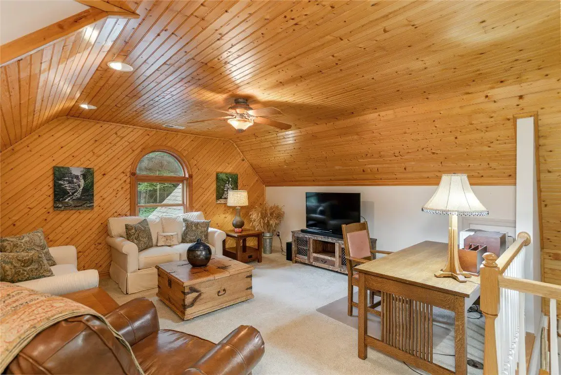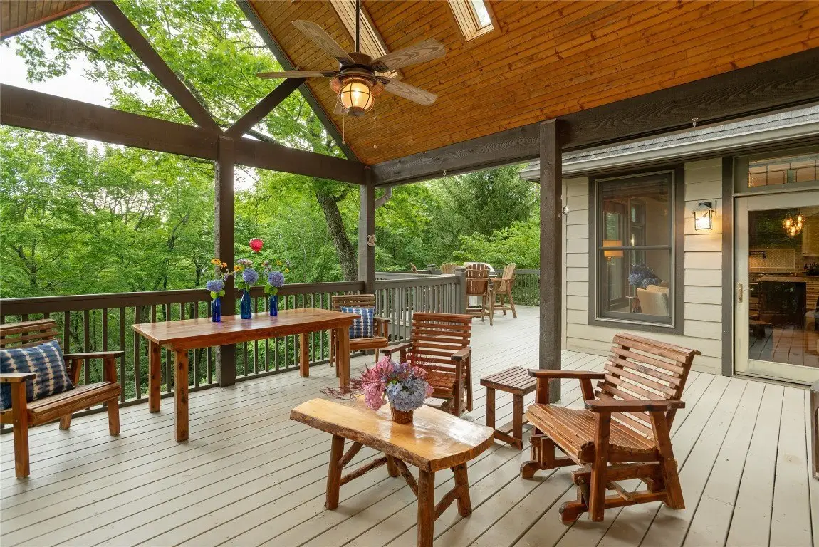 This one-of-a-kind, beautifully maintained four-bedroom, four-bathroom Arts and Crafts mountain retreat combines timeless craftsmanship with refined comfort, offering expansive golf course and mountain views from a prized location along the fifth green of the Lake Toxaway Golf Course. A private winding golf cart path leads from the home across a gentle stream and charming bridge directly onto the fairway, inviting peaceful excursions right from the backyard. The lushly landscaped entry, complete with a tranquil water feature, sets the stage for the serenity that defines this exceptional escape. Inside, custom details and quality finishes abound - a striking locust column and crown moulding as well as slate, oak, and ceramic tile flooring and a heated marble bathroom floor in the primary suite, which blends beauty and comfort. The main level features a vaulted ceiling entryway, a welcoming living room featuring a stone fireplace, an updated chef's kitchen with high-end stainless steel appliances, pot filler, ample counter space, a spacious laundry/mudroom, a comfortable guest suite, and a generous primary suite that opens to a covered Carolina porch with skylights and its own outdoor fireplace - perfect for cool evenings. Upstairs includes a private guest suite, additional living area, and a versatile bonus room. The lower level offers a cozy family room with a kitchenette and free-standing fireplace, a wine cellar, a light-filled flex room, a large guest suite, and a workshop. Outdoor spaces include open decks on both levels, a hot tub under the stars, and ample parking with a double garage - ideal for hosting family and friends. Located less than an hour from Asheville Regional Airport and close to the charming towns of Cashiers, Highlands, Sapphire, and Brevard, this home offers easy access to national forests, hiking trails, waterfalls, and endless adventure. An optional membership at Lake Toxaway Country Club provides golf, tennis, dining, fitness, pool, and private lake access. This exceptional retreat is more than a home - it's a lifestyle.