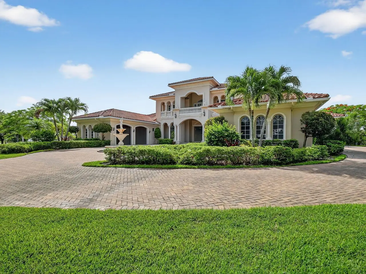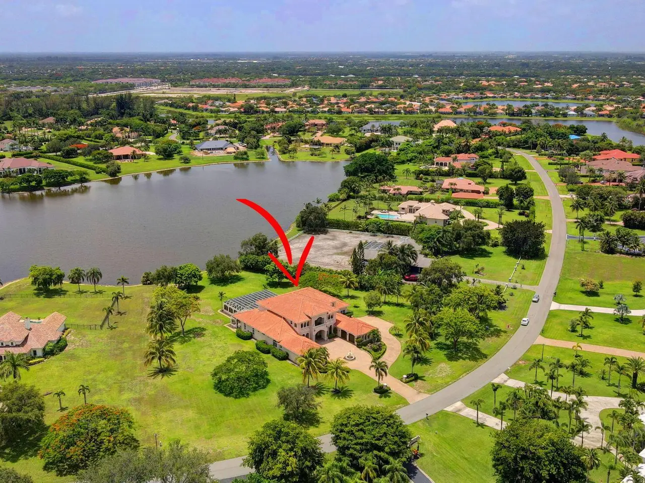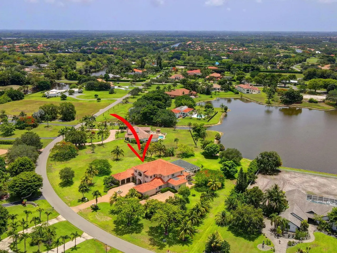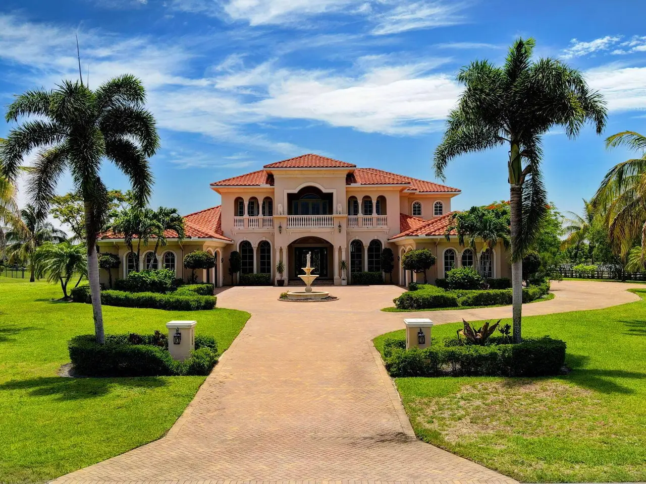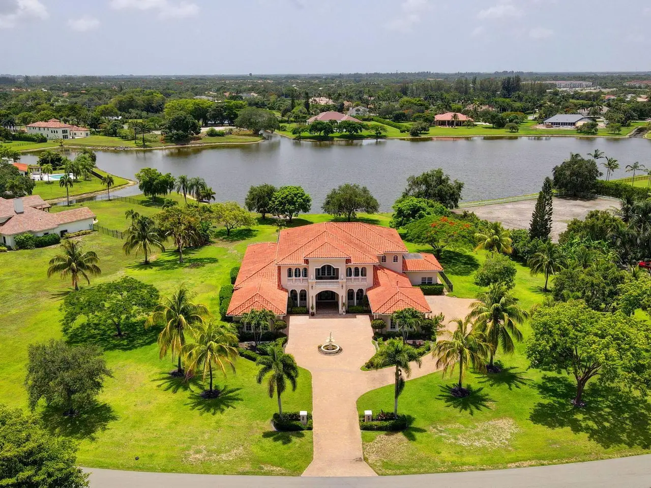 Casual elegance & exquisite craftsmanship define this magnificent custom-built home featuring 6 bedrooms, 7.5 bathrooms & 4 car garage. Situated on over 2 acres, the estate welcomes you with a wide circular driveway & fountain centerpiece. In the grand foyer, gleaming marble floors, a dazzling crystal chandelier & soaring ceilings create an unforgettable first impression. A breathtaking winding staircase sets the tone for the sophisticated design found throughout. The chef's island kitchen is a culinary dream, with 2 wall ovens, a Sub-Zero refrigerator & gas stove- perfect for entertaining or everyday luxury. Nearly every main room showcases a unique ceiling design, adding character & charm at every turn! Outside is your resort-style oasis. The pool/spa area is framed by elegant walled arches, creating a serene Mediterranean retreat. Multiple balconies & patios offer the perfect setting for al fresco dining, relaxation or entertaining. Wander down to the peaceful lakeside patio and soak in the views. Equestrians, your horses are welcome! Despite the serene seclusion, this exceptional home is conveniently located near restaurants, shops, cultural venues, & the Palm Beach International Airport. This one-of-a-kind estate is where timeless design meets modern luxury. Come experience it for yourself!
