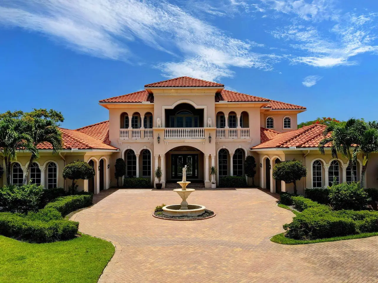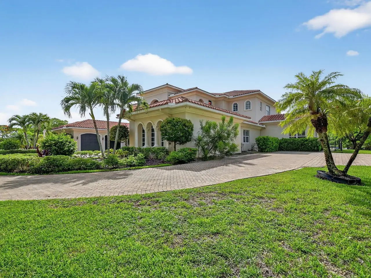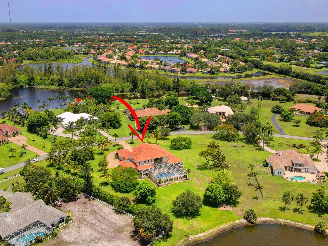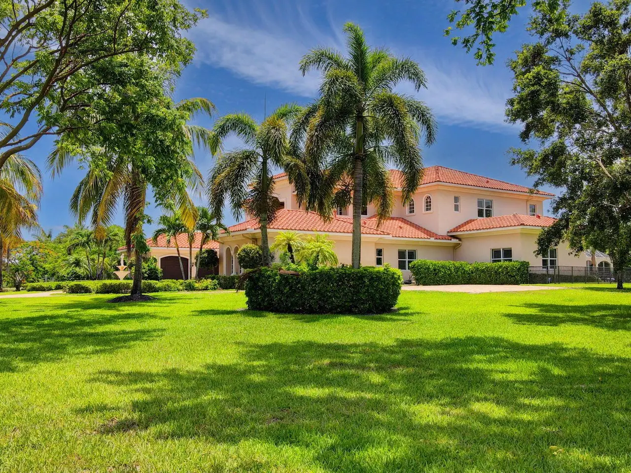Casual elegance & exquisite craftsmanship define this magnificent custom-built home featuring 6 bedrooms, 7.5 bathrooms & 4 car garage. Situated on over 2 acres, the estate welcomes you with a wide circular driveway & fountain centerpiece. In the grand foyer, gleaming marble floors, a dazzling crystal chandelier & soaring ceilings create an unforgettable first impression. A breathtaking winding staircase sets the tone for the sophisticated design found throughout. The chef's island kitchen is a culinary dream, with 2 wall ovens, a Sub-Zero refrigerator & gas stove- perfect for entertaining or everyday luxury. Nearly every main room showcases a unique ceiling design, adding character & charm at every turn! Outside is your resort-style oasis. The pool/spa area is framed by elegant walled arches, creating a serene Mediterranean retreat. Multiple balconies & patios offer the perfect setting for al fresco dining, relaxation or entertaining. Wander down to the peaceful lakeside patio and soak in the views. Equestrians, your horses are welcome! Despite the serene seclusion, this exceptional home is conveniently located near restaurants, shops, cultural venues, & the Palm Beach International Airport. This one-of-a-kind estate is where timeless design meets modern luxury. Come experience it for yourself!