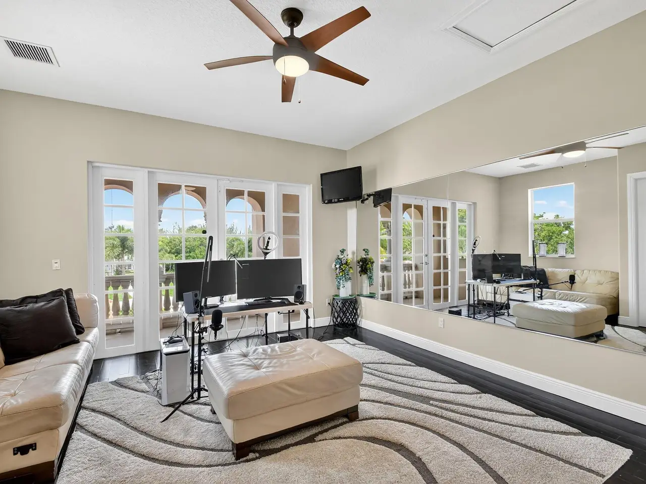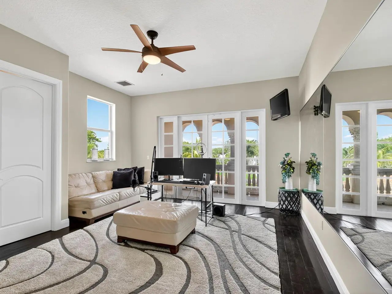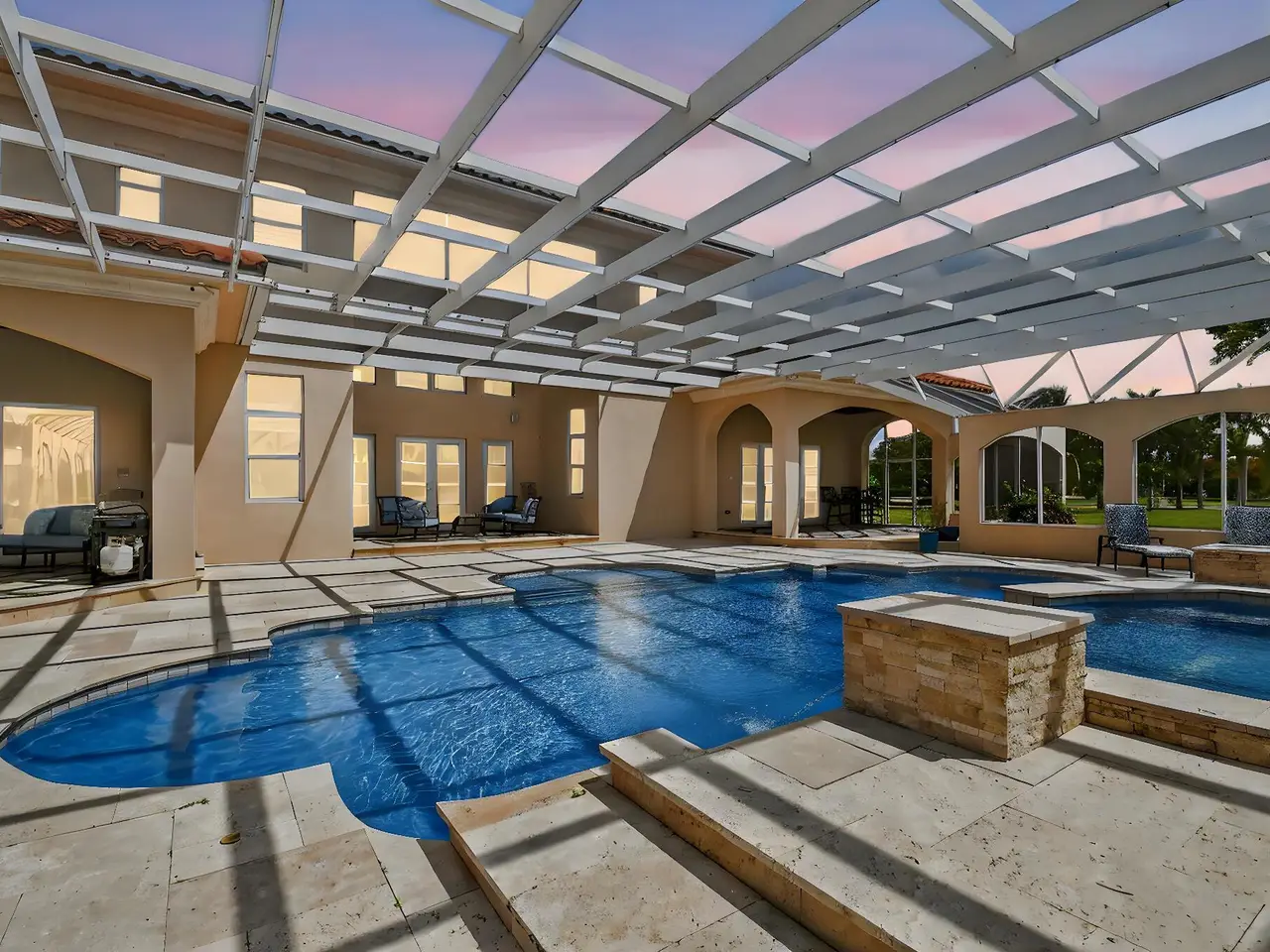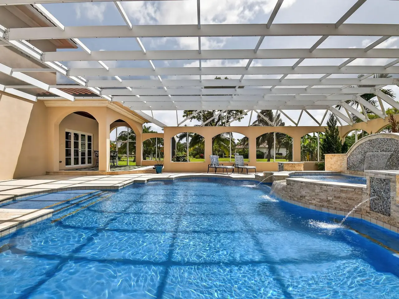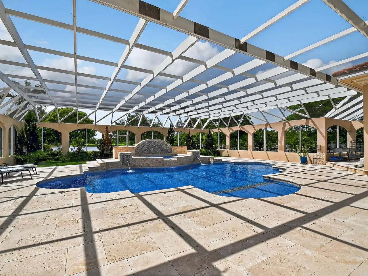 Casual elegance & exquisite craftsmanship define this magnificent custom-built home featuring 6 bedrooms, 7.5 bathrooms & 4 car garage. Situated on over 2 acres, the estate welcomes you with a wide circular driveway & fountain centerpiece. In the grand foyer, gleaming marble floors, a dazzling crystal chandelier & soaring ceilings create an unforgettable first impression. A breathtaking winding staircase sets the tone for the sophisticated design found throughout. The chef's island kitchen is a culinary dream, with 2 wall ovens, a Sub-Zero refrigerator & gas stove- perfect for entertaining or everyday luxury. Nearly every main room showcases a unique ceiling design, adding character & charm at every turn! Outside is your resort-style oasis. The pool/spa area is framed by elegant walled arches, creating a serene Mediterranean retreat. Multiple balconies & patios offer the perfect setting for al fresco dining, relaxation or entertaining. Wander down to the peaceful lakeside patio and soak in the views. Equestrians, your horses are welcome! Despite the serene seclusion, this exceptional home is conveniently located near restaurants, shops, cultural venues, & the Palm Beach International Airport. This one-of-a-kind estate is where timeless design meets modern luxury. Come experience it for yourself!