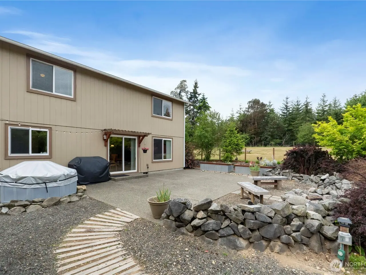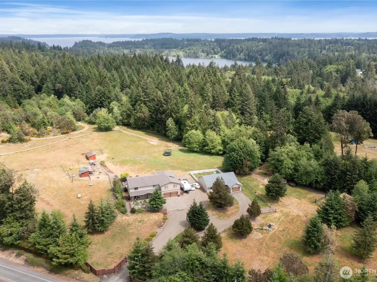 Turn-key 4BR/3BA custom home with a 3 bdrm ADU Rambler on a fully equipped hobby farm! Enjoy 3,000 sq ft of updated living space w/AC, jetted tub, office, digital climate controls & ceiling fans in all BRs. Outdoors: 7.35 Acres, 3 fenced pastures, horse round pen, ATV trails, chicken coop, duck enclosure w/plumbed pool, 200 sq ft shed, RV hookup, EV-ready garage & generator plug-in. Relax w/water feature, hot tub & fire pit. Gated entry w/remotes & package slide. ADT security, high-speed DSL. ADU w/ 1200 sq ft, 3BR/2BA, garage & fenced yard. Prime location--school bus stop at driveway, 2 min to Evergreen Elem, 11 min to Key Center, 29 min to Costco, near Joemma & Penrose Parks. A rare blend of comfort, space & rural charm!
