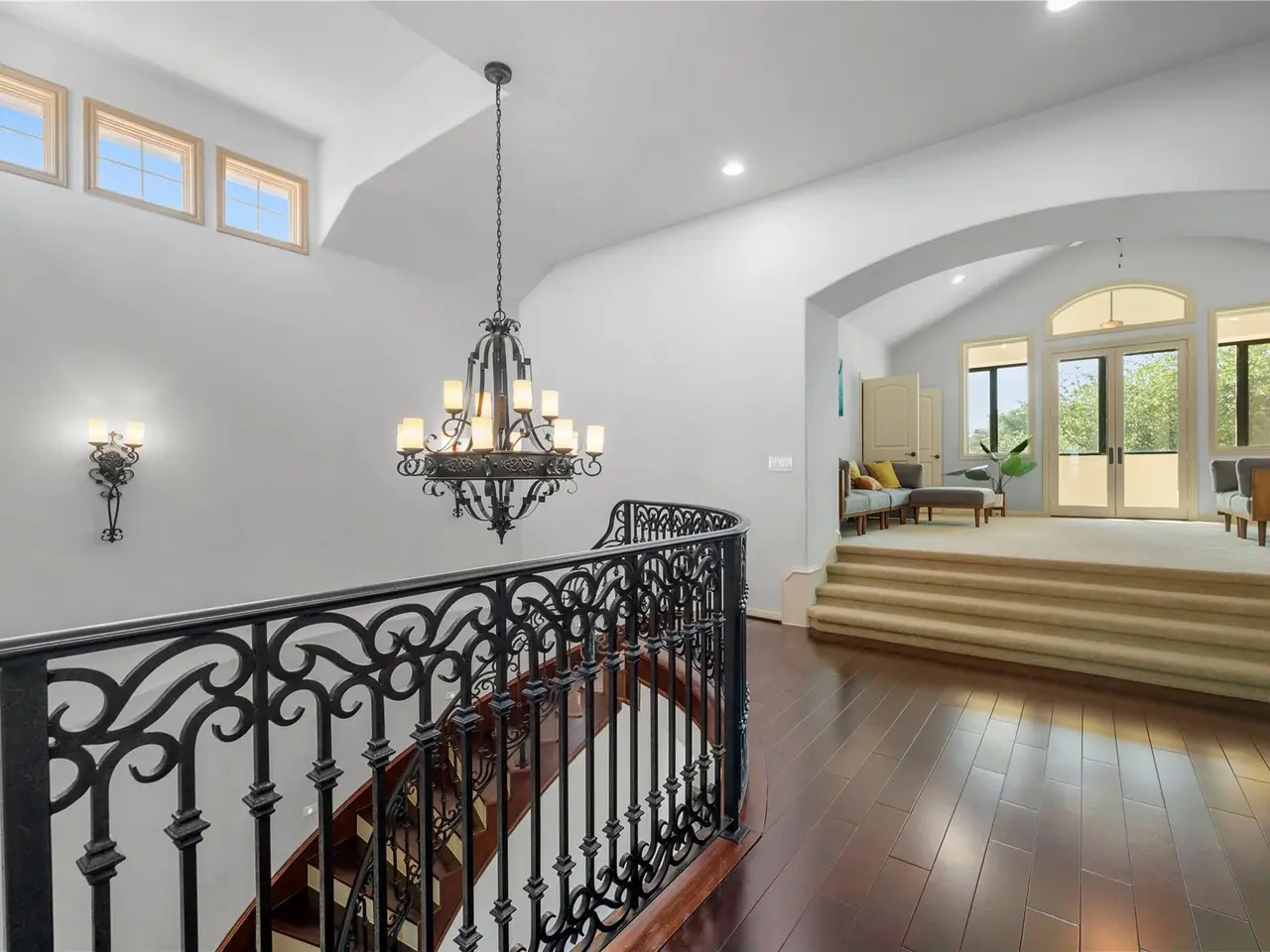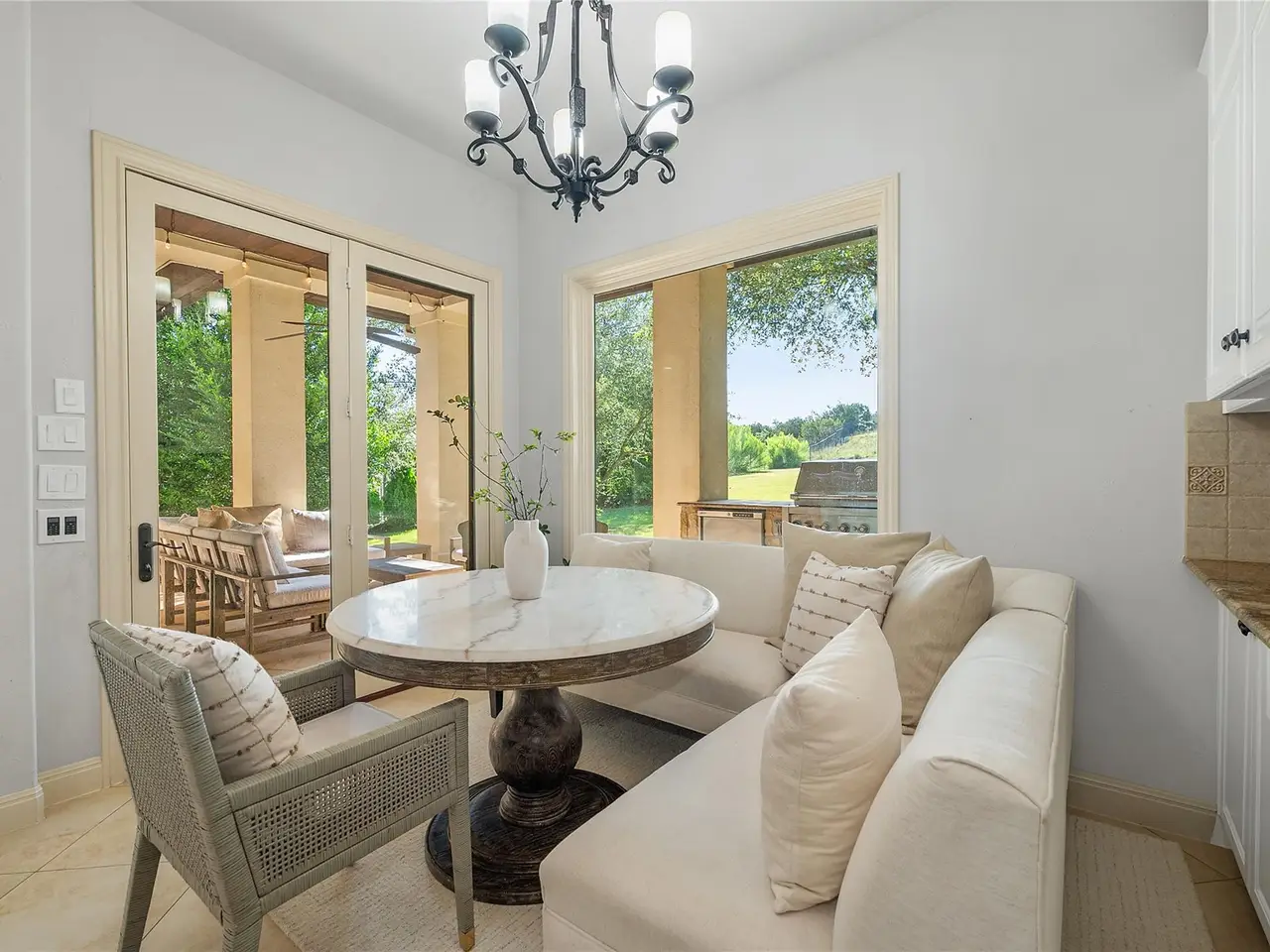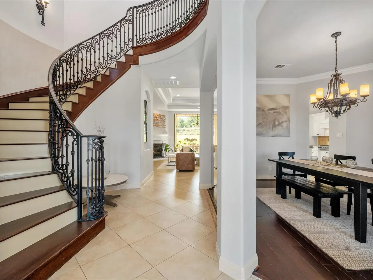 Tucked within a private gated enclave in Lakeway, 107 Bella Strada Cove offers a rare blend of lakeside luxury and Hill Country elegance. This grand, Tuscan-style estate sits on over 1 acre, beautifully framed by mature oaks and resort-style landscaping. With its stucco and stone facade, clay tile roof, and arched iron entry doors, the residence makes a striking first impression in a serene cul-de-sac setting. Inside, refined craftsmanship and natural materials echo the home's architectural roots. The open-concept layout features vaulted ceilings with hand-hewn beams, rich wood and stone finishes, and floor-to-ceiling windows that draw in natural light. The gourmet kitchen is a chef's dream, outfitted with top-tier appliances, custom cabinetry, and a large center island. Generously sized living areas, a formal dining space, and a stone-clad fireplace create an inviting environment for both grand entertaining and everyday comfort. The main-level primary suite is a true retreat, with a spa-like bathroom and spacious walk-in closet. The home also offers a main level dedicated office or study, while the upstairs media room provides the perfect space for movie nights, gaming, or a secondary living area. Residents enjoy the security of a boutique gated enclave, exemplary Lake Travis ISD schools, and quick access to golf courses, marinas, shopping, and Hill Country dining hotspots, making 107 Bella Strada Cove an exceptional blend of serenity and convenience. Tax and assessed values are estimates for illustration purposes only. All figures should be independently verified.