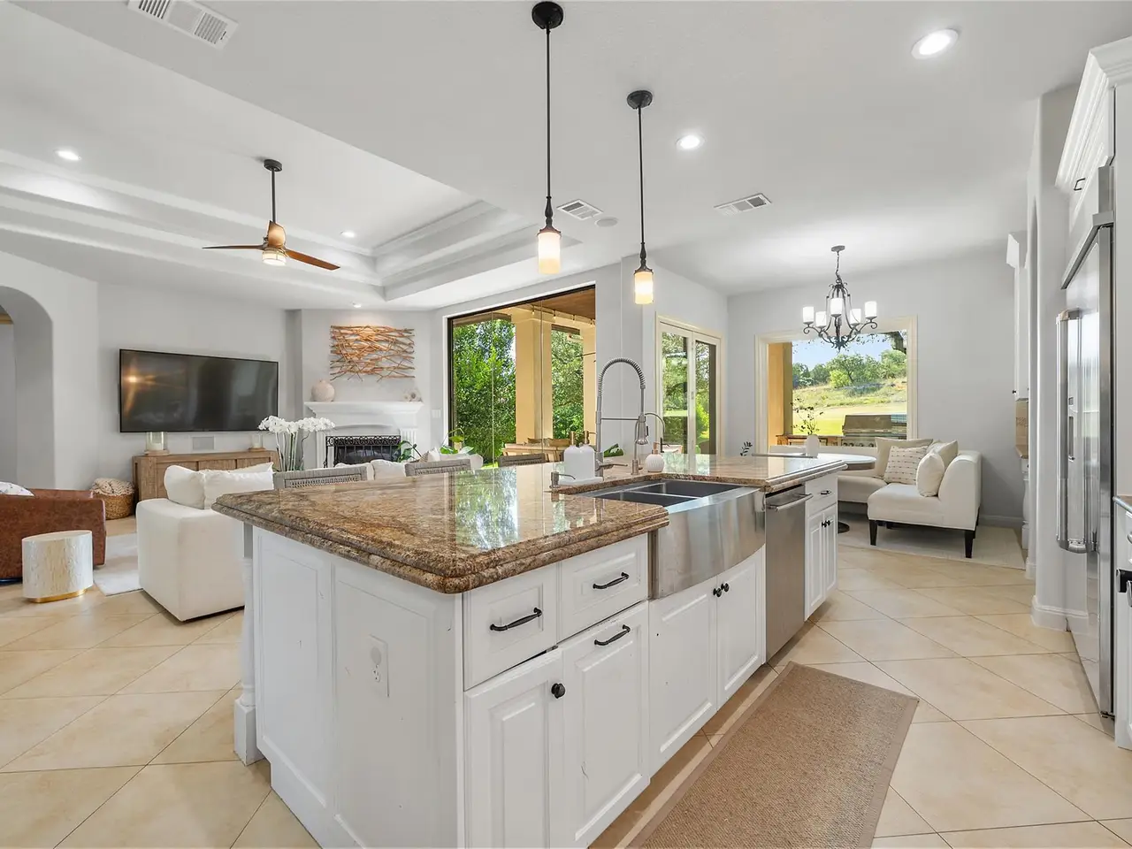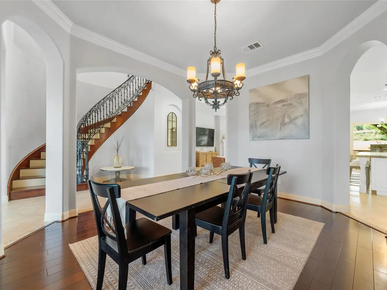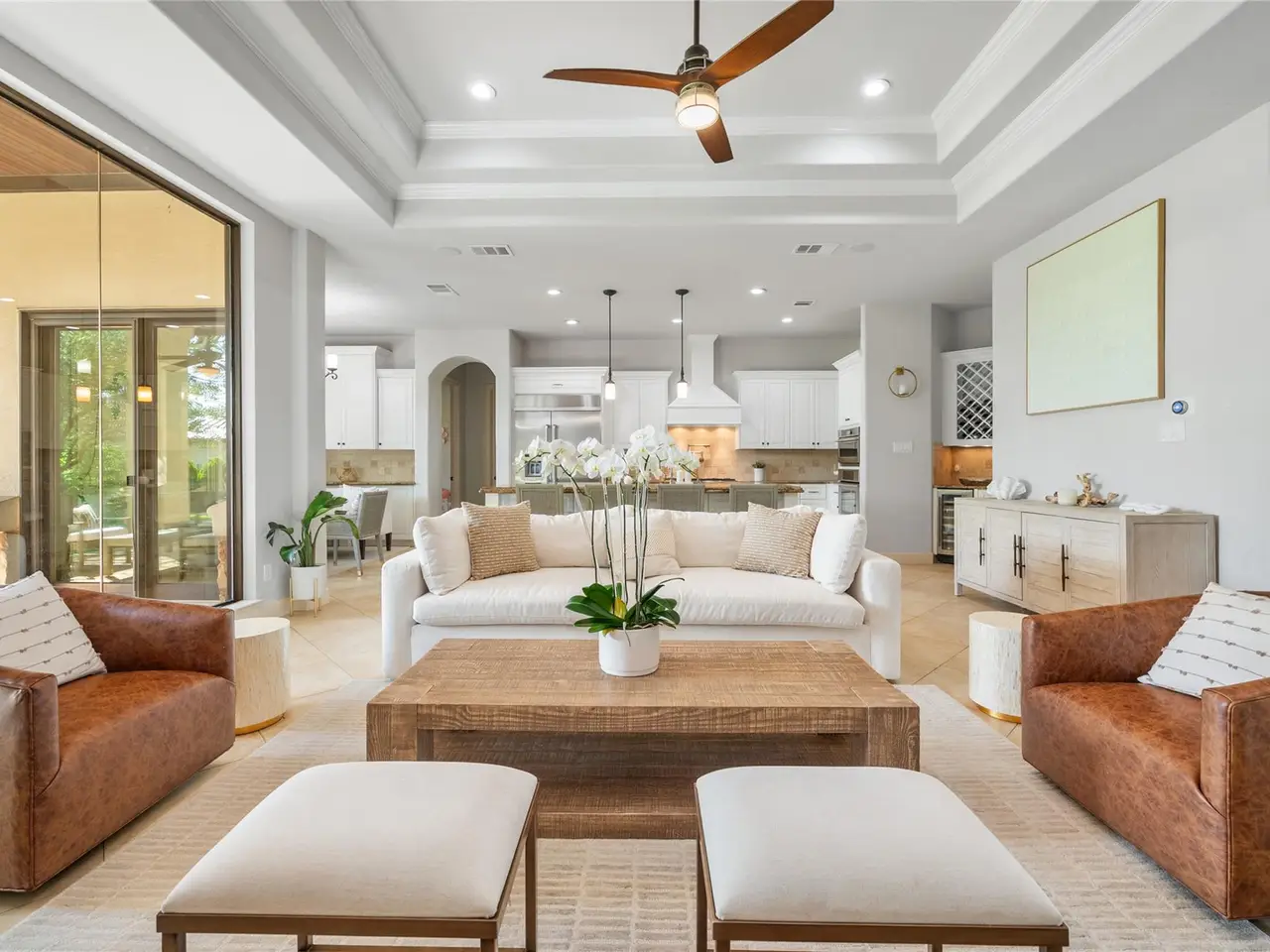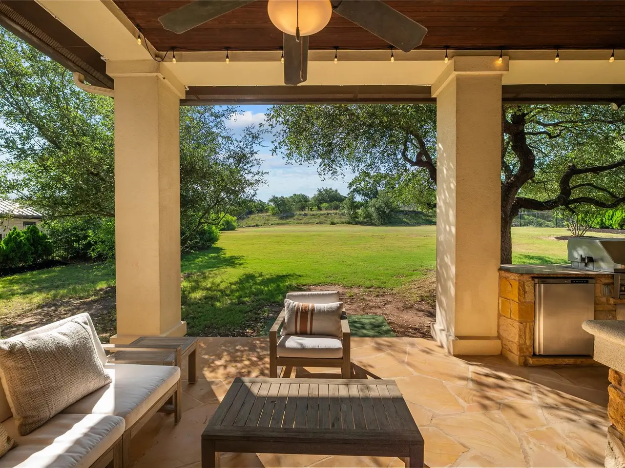 Tucked within a private gated enclave in Lakeway, 107 Bella Strada Cove offers a rare blend of lakeside luxury and Hill Country elegance. This grand, Tuscan-style estate sits on over 1 acre, beautifully framed by mature oaks and resort-style landscaping. With its stucco and stone facade, clay tile roof, and arched iron entry doors, the residence makes a striking first impression in a serene cul-de-sac setting. Inside, refined craftsmanship and natural materials echo the home's architectural roots. The open-concept layout features vaulted ceilings with hand-hewn beams, rich wood and stone finishes, and floor-to-ceiling windows that draw in natural light. The gourmet kitchen is a chef's dream, outfitted with top-tier appliances, custom cabinetry, and a large center island. Generously sized living areas, a formal dining space, and a stone-clad fireplace create an inviting environment for both grand entertaining and everyday comfort. The main-level primary suite is a true retreat, with a spa-like bathroom and spacious walk-in closet. The home also offers a main level dedicated office or study, while the upstairs media room provides the perfect space for movie nights, gaming, or a secondary living area. Residents enjoy the security of a boutique gated enclave, exemplary Lake Travis ISD schools, and quick access to golf courses, marinas, shopping, and Hill Country dining hotspots, making 107 Bella Strada Cove an exceptional blend of serenity and convenience. Tax and assessed values are estimates for illustration purposes only. All figures should be independently verified.