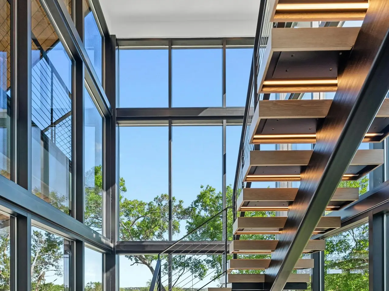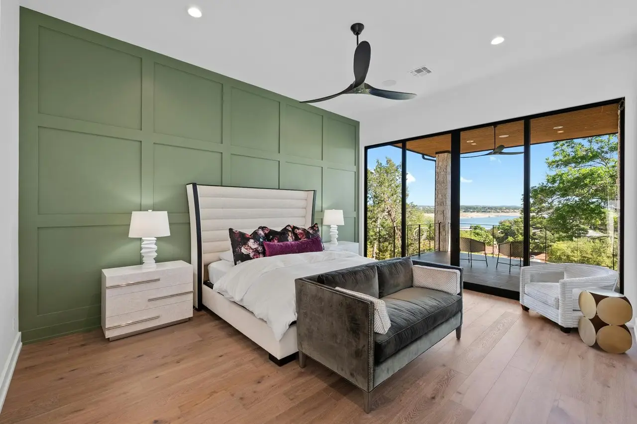 Expansive floor-to-ceiling windows with lake views