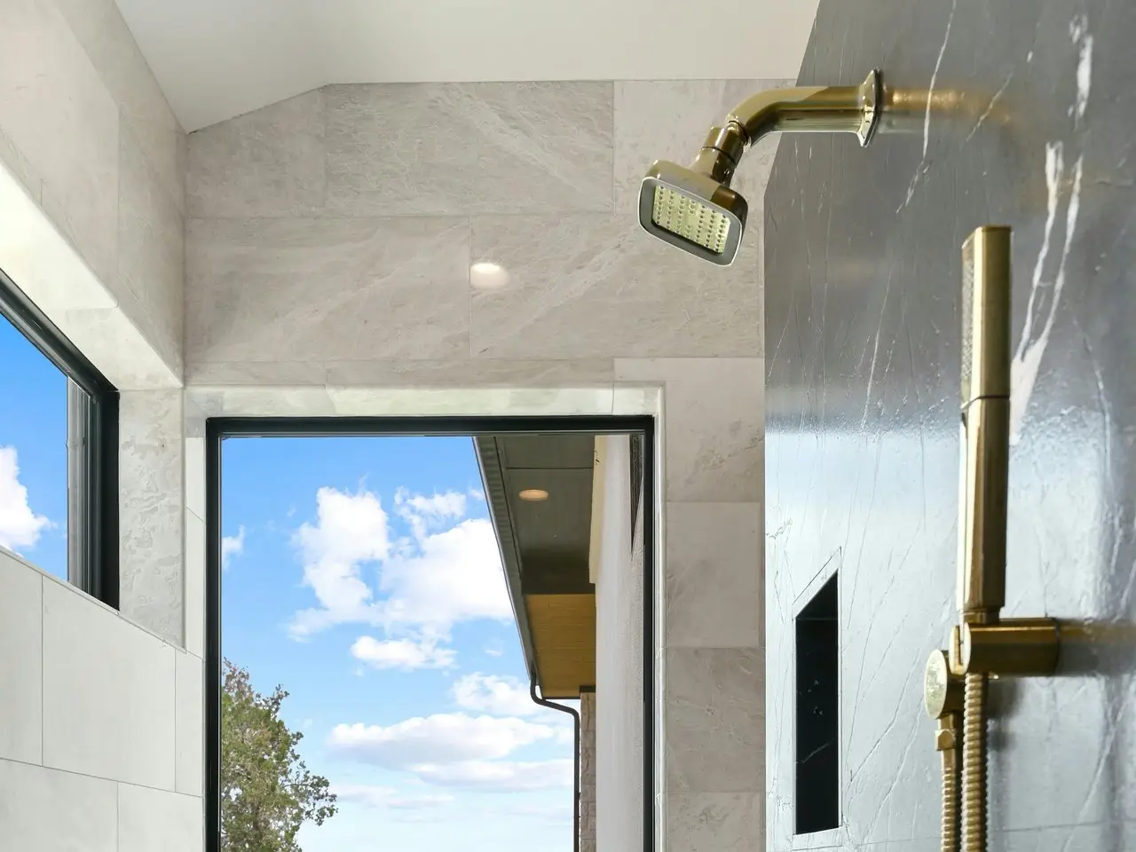 Stunning granite wall in primary bath
