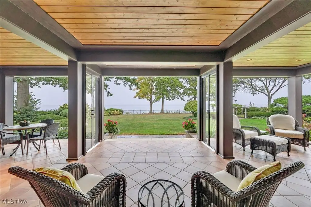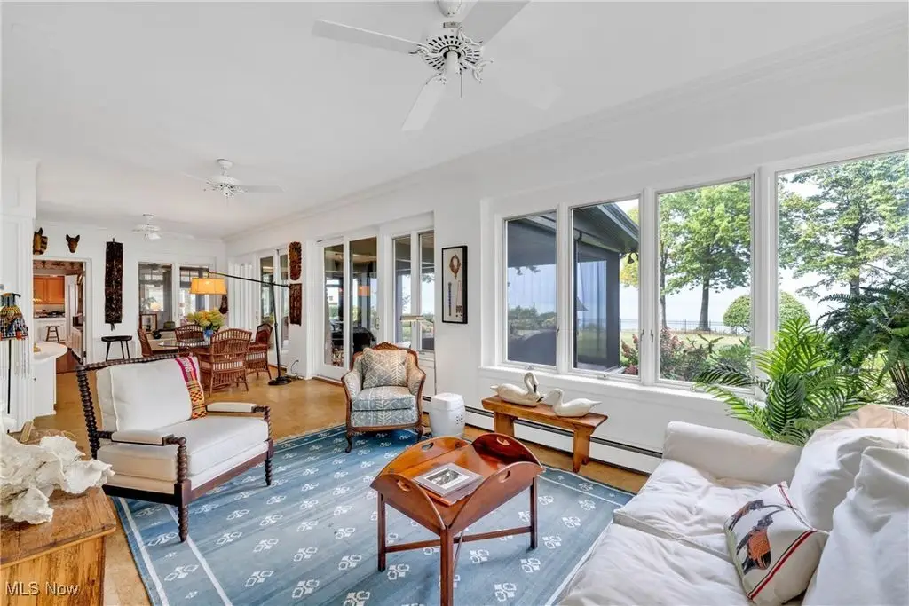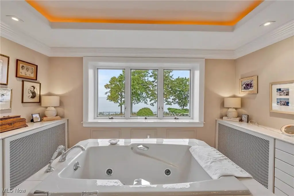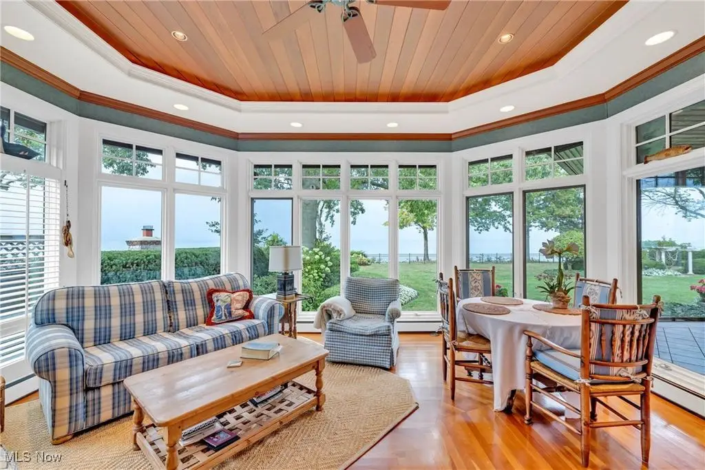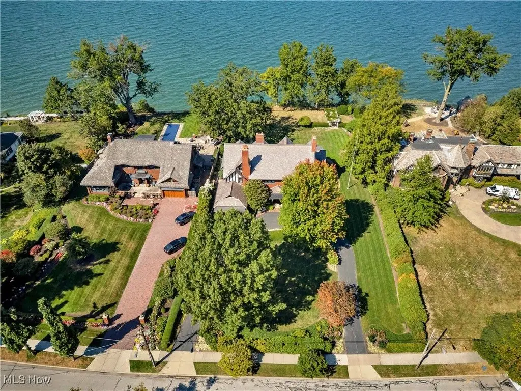 Welcome to this landmark lakefront residence in the heart of Lakewood's Clifton Park neighborhood. Situated on just under 1 acre and built in 1921, this timeless 6-bed, 4.5 bath, Colonial seamlessly blends historic charm with modern comfort. Classic architectural details throughout, hardwood floors, rich millwork, folding French doors, coved ceilings, and exceptional craftsmanship. The formal living room features a beautiful fireplace, while the elegant dining room also includes a fireplace. A den offers custom-built-ins, fireplace, and warm woodwork. The kitchen has a large center island, professional-grade appliances, double ovens, a warming drawer, 2 dishwashers, a bev. fridge, and ice maker. The breakfast nook offers panoramic views and and intricate ceiling detail. Designed for effortless indoor-outdoor living, the expansive screened and covered porch, complete with Phantom screens, provides breathtaking year-round views of Lake Erie and connects seamlessly to a sunroom. The layout creates a perfect flow for entertaining or relaxing. The yard is filled with whimsical plantings, a pergola, peaceful pathways, and space to enjoy the calming Lake Erie breezes and sunsets. Upstairs, the primary suite is a true retreat. It features a spa-like ensuite bath, a sitting room with a cozy fireplace, a walk-in closet, a private balcony, and stunning lake views. Bedroom two includes an updated ensuite bath with dual vanities, while 2 additional bedrooms are serviced by a hall bath. A convenient 2nd floor laundry room adds to everyday ease. The 3rd floor provides flexible living space with a large rec. room, plus 2 more bedrooms and a full bath. Additional highlights include two staircases and an attached garage that opens into a versatile mudroom/office space, which serves as the hub of household organization. This is a rare opportunity to own a truly iconic home in one of Lakewood's most special lakefront communities, complete with a private beach and community amenities.