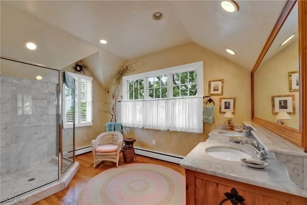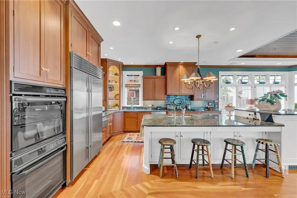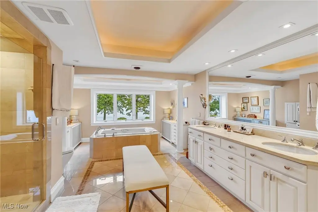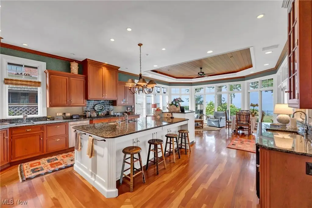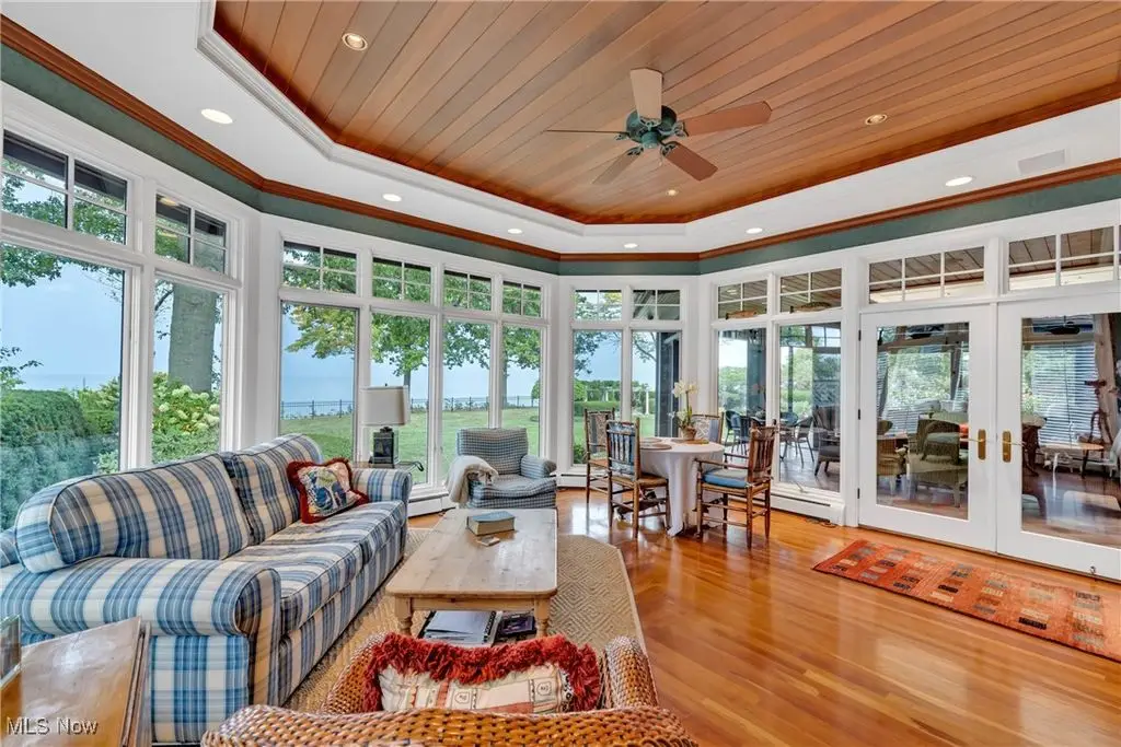 Welcome to this landmark lakefront residence in the heart of Lakewood's Clifton Park neighborhood. Situated on just under 1 acre and built in 1921, this timeless 6-bed, 4.5 bath, Colonial seamlessly blends historic charm with modern comfort. Classic architectural details throughout, hardwood floors, rich millwork, folding French doors, coved ceilings, and exceptional craftsmanship. The formal living room features a beautiful fireplace, while the elegant dining room also includes a fireplace. A den offers custom-built-ins, fireplace, and warm woodwork. The kitchen has a large center island, professional-grade appliances, double ovens, a warming drawer, 2 dishwashers, a bev. fridge, and ice maker. The breakfast nook offers panoramic views and and intricate ceiling detail. Designed for effortless indoor-outdoor living, the expansive screened and covered porch, complete with Phantom screens, provides breathtaking year-round views of Lake Erie and connects seamlessly to a sunroom. The layout creates a perfect flow for entertaining or relaxing. The yard is filled with whimsical plantings, a pergola, peaceful pathways, and space to enjoy the calming Lake Erie breezes and sunsets. Upstairs, the primary suite is a true retreat. It features a spa-like ensuite bath, a sitting room with a cozy fireplace, a walk-in closet, a private balcony, and stunning lake views. Bedroom two includes an updated ensuite bath with dual vanities, while 2 additional bedrooms are serviced by a hall bath. A convenient 2nd floor laundry room adds to everyday ease. The 3rd floor provides flexible living space with a large rec. room, plus 2 more bedrooms and a full bath. Additional highlights include two staircases and an attached garage that opens into a versatile mudroom/office space, which serves as the hub of household organization. This is a rare opportunity to own a truly iconic home in one of Lakewood's most special lakefront communities, complete with a private beach and community amenities.