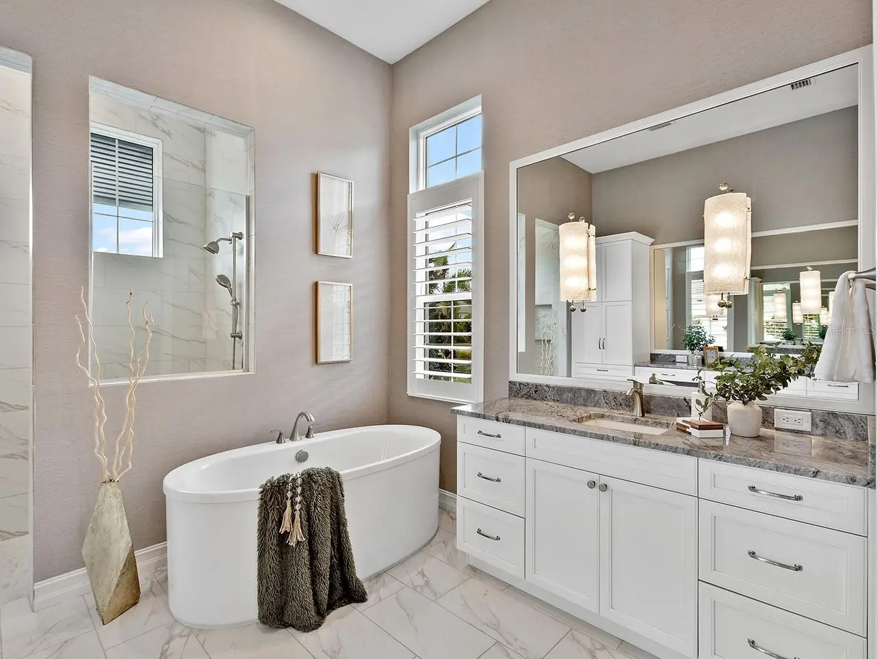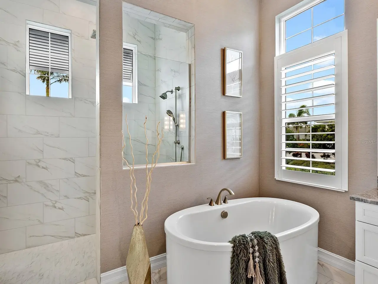 Spa-like bathroom with freestanding tub