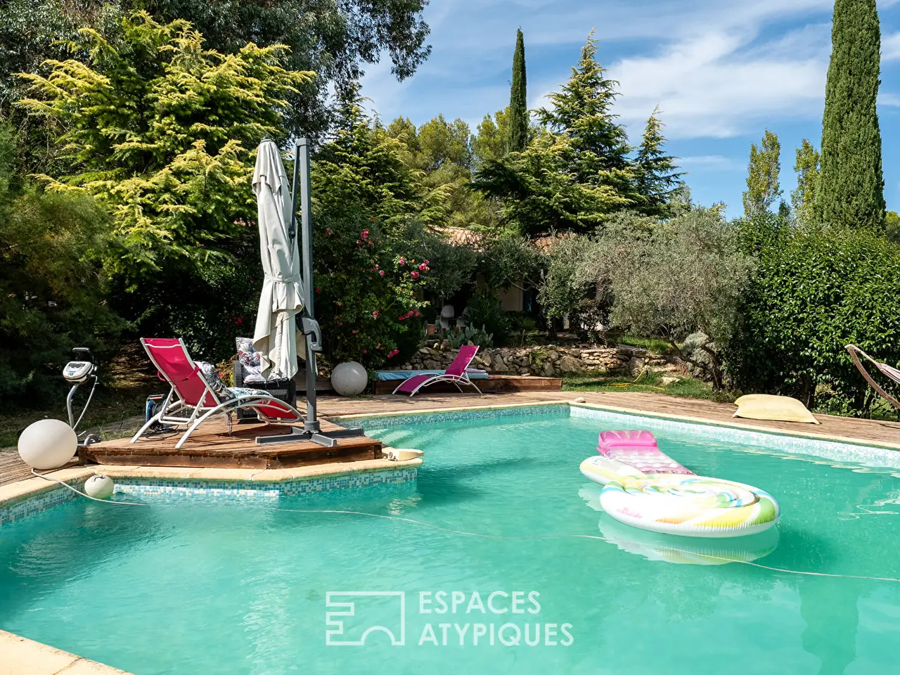 Character villa with swimming pool and landscaped garden in LambescIn Lambesc, this contemporary single-story house spans approximately 250 sqm in a peaceful, green setting, set on a 6,000 sqm wooded plot.The interior space is centered around a large living room bathed in natural light. The opening onto the wooden terrace creates a seamless flow between indoors and outdoors, while a fireplace area provides warmth and conviviality on cooler evenings. The kitchen, integrated into the main room, encourages shared moments and fits perfectly with the functional and welcoming spirit of the place. The sleeping area consists of five bedrooms, including one converted into a separate studio, a master suite opening onto the terrace with an adjoining dressing room, and an additional bedroom with direct access to the outdoors. Two other bedrooms share a bathroom, providing an ideal layout for family living.Outside, the south-facing terrace overlooks a carefully maintained garden. The local species, the dense vegetation and the swimming pool below create an intimate setting, not overlooked, which invites relaxation. On clear days, the view extends as far as the Sainte-Victoire, offering a unique backdrop. The various outdoor spaces allow you to fully enjoy the Provencal climate, whether for meals in the shade of the pergola or relaxing moments by the water.This property stands out for its atypical character and its successful balance between modernity and a gentle way of life. Combining brightness, generous volumes and a preserved natural environment, it represents a rare opportunity on the Lambesc real estate market.ENERGY CLASS: C / CLIMATE CLASS: A. Estimated annual energy costs for standard use, established using 2021 energy prices: between EUR2,170 and EUR2,990 per year.REF. 12377Additional information* 7 rooms* 5 bedrooms* Outdoor space : 6000 SQM* Property tax : 3 287 €Energy Performance CertificatePrimary energy consumptionc : 115 kWh/m2.yearHigh performance housing*A*B*115kWh/m2.year3*kg CO2/m2.yearC*D*E*F*GExtremely poor housing performance* Of which greenhouse gas emissionsa : 3 kg CO2/m2.yearLow CO2 emissions*3kg CO2/m2.yearA*B*C*D*E*F*GVery high CO2 emissionsEstimated average annual energy costs for standard use, indexed to specific years 2021, 2022, 2023 : between 2170 € and 2990 € Subscription IncludedAgency feesThe fees include VAT and are payable by the vendorMediatorMediation Franchise-Consommateurswww.mediation-franchise.com29 Boulevard de Courcelles 75008 ParisInformation on the risks to which this property is exposed is available on the Geohazards website : www.georisques.gouv.fr