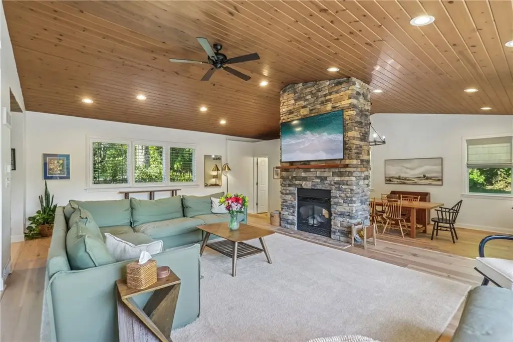 Welcome to 111 Southview Drive, a private retreat on 11.40 acres across three parcels. This updated 5-bed, 4-bath home features a 2-car garage, new well and filtration system, engineered hardwood floors, California shutters, updated baths, lighting, electrical panels, and newer HVAC. The sunlit great room boasts vaulted wood ceilings, a stone fireplace, and a wall of windows. Enjoy the gourmet kitchen with stainless steel appliances and pantry, plus a spacious dining room with deck access and swim spa. The primary suite offers a fireplace, private deck, and en suite bath. Upstairs includes 3 additional bedrooms, a renovated hall bath, and loft. The walk-out lower level has a game room, wet bar, 5th bedroom/study, powder room, and laundry. Additional unfinished space offers expansion potential. The outside additionally offers a tennis court, a barn with electric, and stunning views. A rare opportunity to own a serene estate where luxury meets nature - your dream lifestyle begins here.