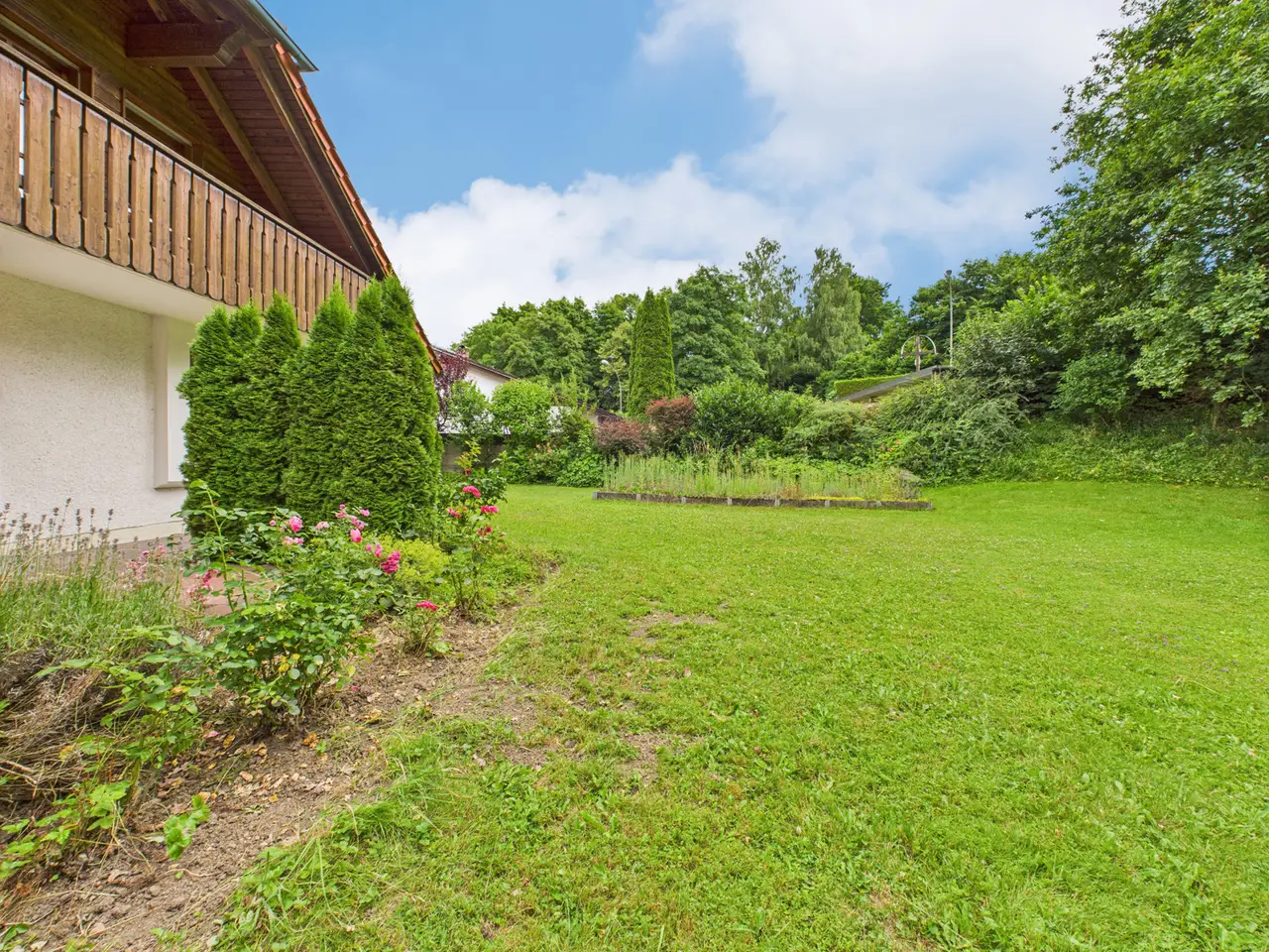 This spacious detached house on the popular Birkenberg in Landshut offers you and your family a living environment that combines freedom, security and many perspectives. On a park-like, beautifully ingrown plot of over 1,160 m², you can enjoy plenty of privacy, sunny retreats and space for your individual ideas. The house impresses as soon as you enter with its alpine character and the striking crippled hipped roof, which stylishly underlines the rural charm. On three floors and around 250 m² of living space, there are eight rooms that can be used flexibly - as a spacious family area, space for guests or your personal home office. Thanks to the separate granny apartment, multi-generational living, a care home or the combination of living and working under one roof can also be easily implemented. A special highlight is the cozy living/dining area with tiled stove, which provides warmth on cold days. The property features a fitted kitchen, several bathrooms, a guest WC, two terraces and a balcony - so everyone can find their favorite spot. The partial basement offers additional storage and usable space. The house is in a well-kept condition, but also offers potential that you can develop according to your own ideas. With a manageable amount of modernization work, you can create a contemporary home that combines tradition and comfort in a unique way. The solid construction, a mixture of stove, electric and underfloor heating, high-quality parquet and tiled floors and the large garden area create the best conditions for a cozy lifestyle. Two garages and two further parking spaces round off the offer. The location speaks for itself: close to the city center yet quiet, you can reach shopping facilities, sports centers, schools and local recreation areas in just a few minutes. Thanks to good connections, the A92 freeway, the airport and Munich city center are also within easy reach. This house is a real collector's item - spacious, versatile and full of possibilities for families looking for a special home. Be inspired by its charm during a viewing.