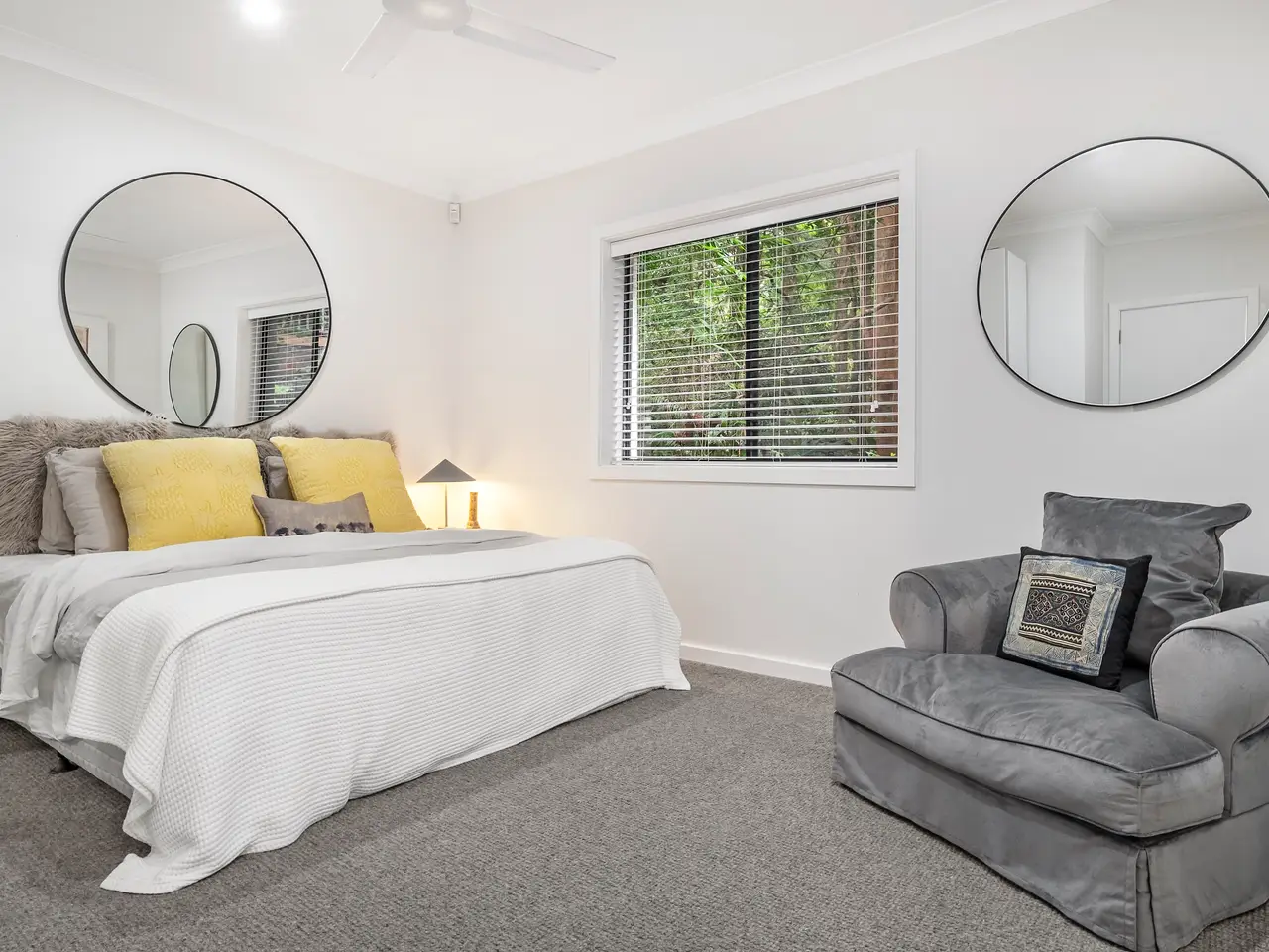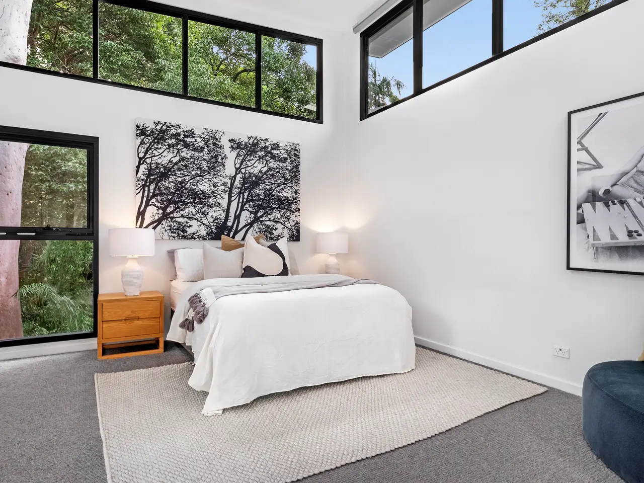 Ideally set at the end of a quiet cul-de-sac, this architecturally designed residence presents spacious family living ideal for multigenerational families and entertainers. With two floors of living spaces and dual home entry, this large home boasts generous entertaining balconies, terraces, and lounges, all surrounded by nature with enviable privacy. The interiors with soaring vaulted ceilings and glass feature windows allow a continuous flow of natural light and air, all in an enviable position only metres to the Lane Cove Golf Course and a short stroll to village shops and aquatic centre. - Expansive living and dining floor with soaring vaulted ceilings, gas fire - Gourmet gas kitchen with stone island, Vintec fridge, walk-in pantry - Main floor with optional guest bedroom/home office, master with luxury ensuite and windowfront tub - Four bedrooms on lower floor with second master ensuite, casual lounge - Multiple lounge and entertaining spaces, private putting green, firepit - Timber floors, air conditioning, guest powder room, double carport - External laundry with powder room, main bathroom with spa bath