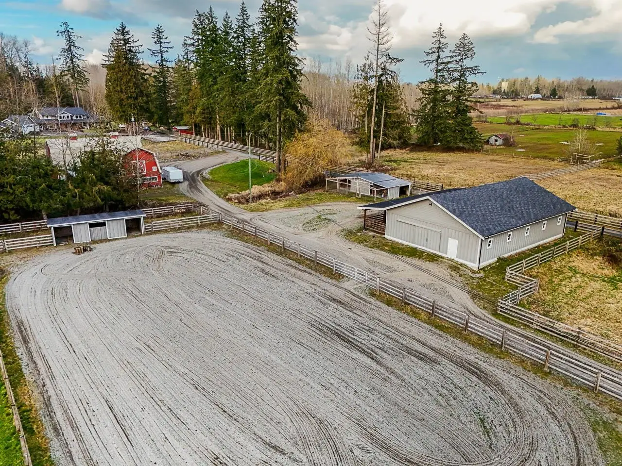 This breathtaking 8.39-acre country estate is the complete package. Perfectly blending rural charm with modern convenience, this extraordinary property offers two residences,a 7-stall barn with a tack room,a classic red barn with a loft, a workshop,and pastoral beauty in every direction. The principal residence was completely remodeled and renovated in 2015, featuring top-tier craftsmanship and high-end finishes. Designed for comfortable living, the primary bedroom is conveniently located on the main floor, while four additional bedrooms and a spacious games room are upstairs.A long, scenic driveway welcomes you home, leading past rolling fields, peaceful ponds, and stunning landscapes.