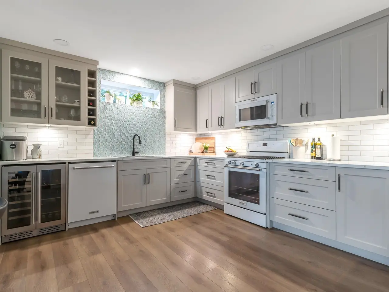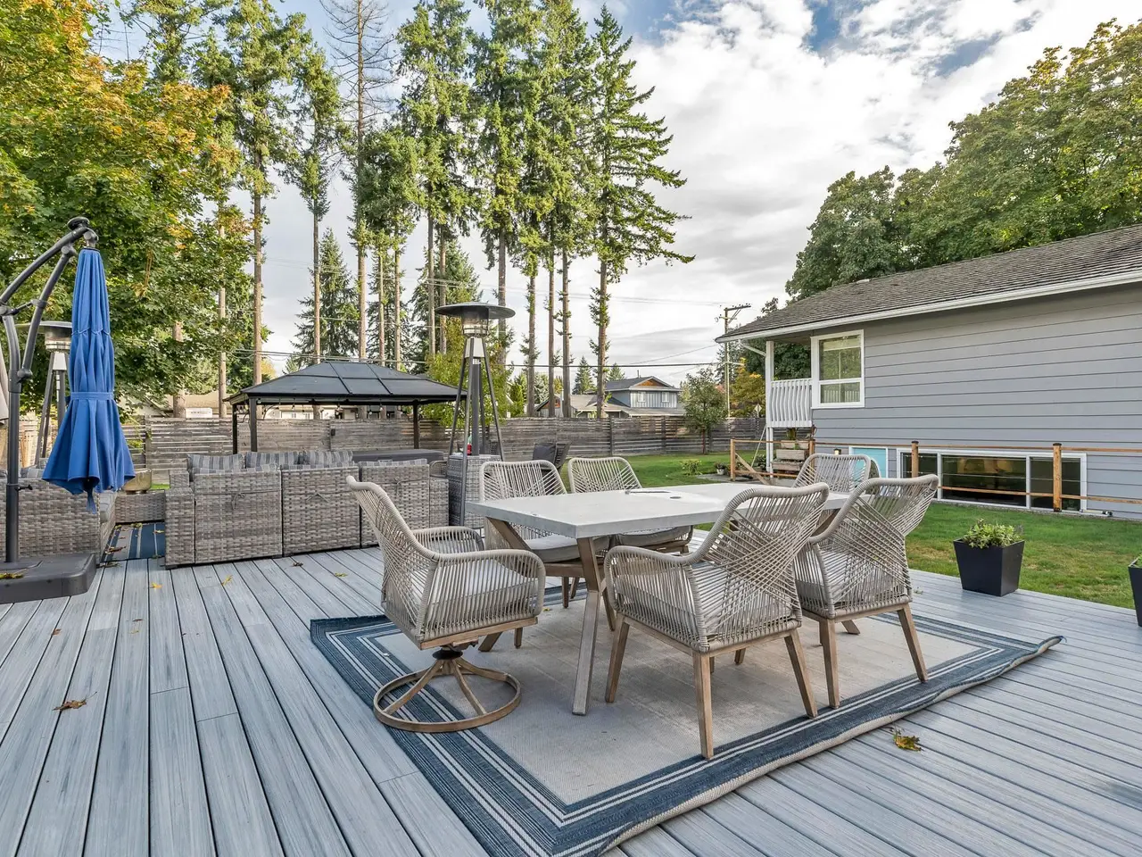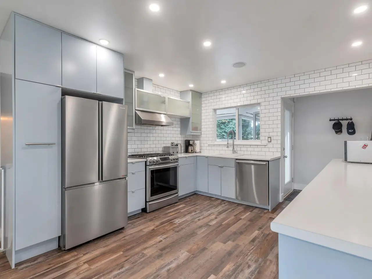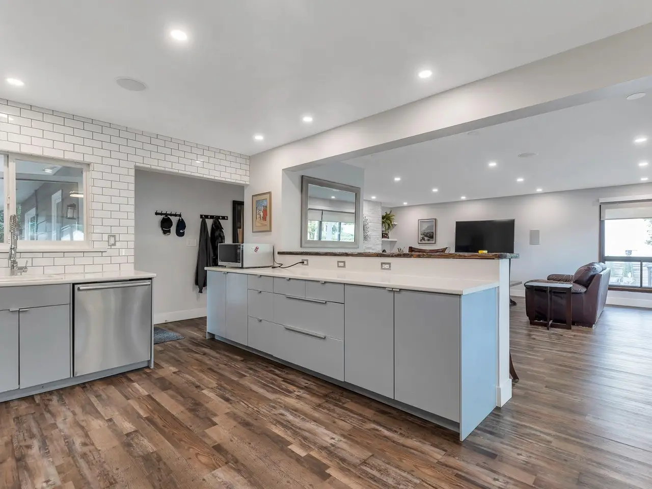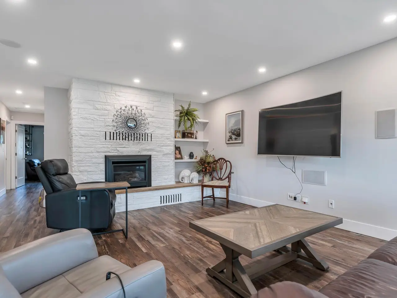 Beautiful fully renovated Rancher with a bright open finished basement on just over a half acre. Total of 7 bedrooms, 2 fireplaces, 4 bathrooms with 2 fully updated. Lots of windows, open concept, 2 Gorgeous kitchens, stainless steel appliances & 2 laundry rooms. New plumbing & Electrical, pot lights and light fixtures. Ideal set up for extended family. Fully fenced yard, Garden, lots of parking. Large Workshop & various storage sheds. Larger workshop 28 x23. Private yard to enjoy social gatherings, Outdoor Bar room, New large Sundeck & covered area for a Hot tub. Lots of parking, including an RV space, plus additional street parking.