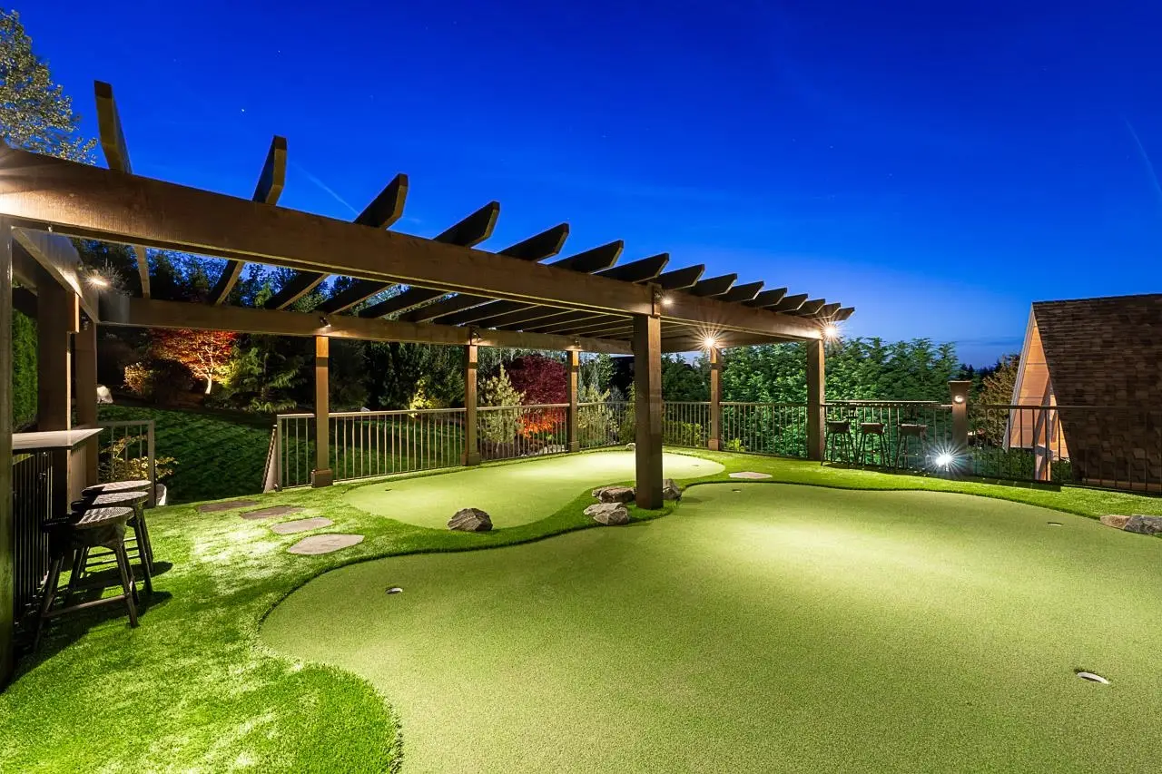Magnificent custom-built 8,000 sqft High Point Estates residence with panoramic Mountain Views. Custom designed gates and a resort-style entrance welcome the most discerning buyer to this 6-bedroom residence, including 2 opulent primary suites. Featuring a dream kitchen with spice/prep areas, walk-in pantry, glowing wine wall, and a dramatic great room with double-stacked fireplaces opening to a private backyard oasis with rooftop putting green. Upstairs offers 4-ensuited bedrooms including a luxurious primary suite and sunset balcony. Impressive lower level with theatre, gym, recreation and game rooms, sports bar, sauna, and bedroom with suite potential. Control4, A/C, dual radiant/forced air heat, generator plus double+triple garages complete this exceptional home.