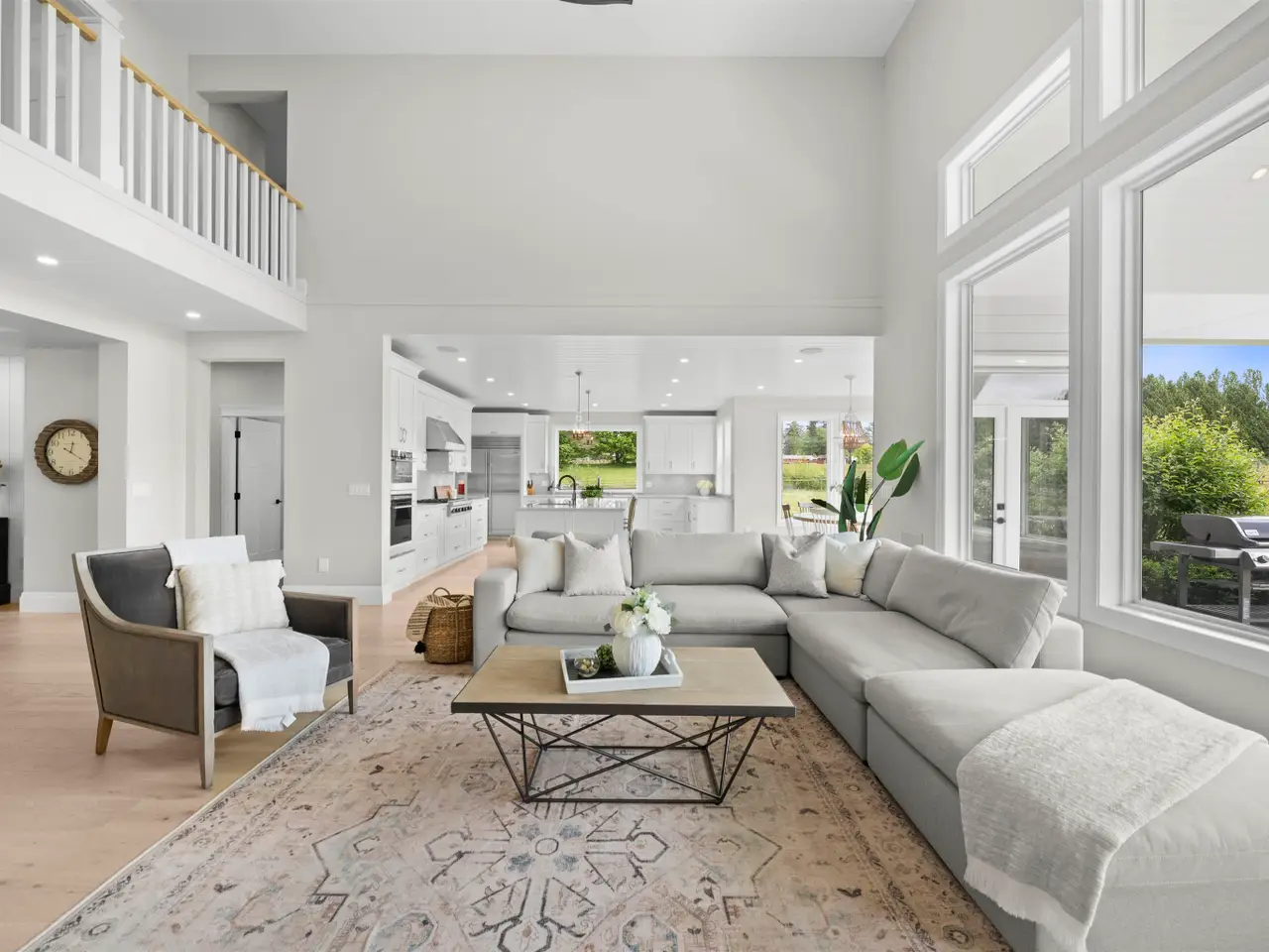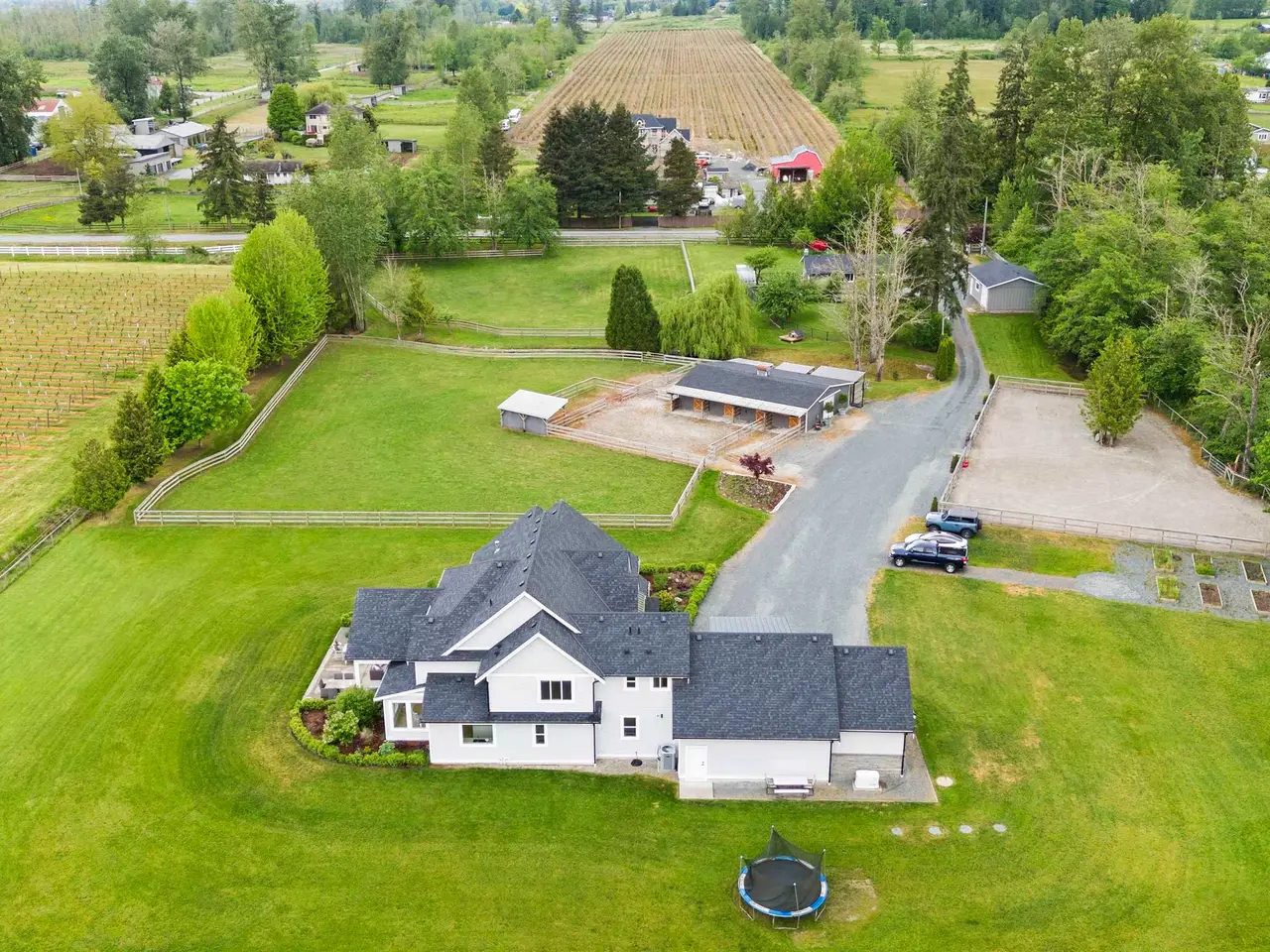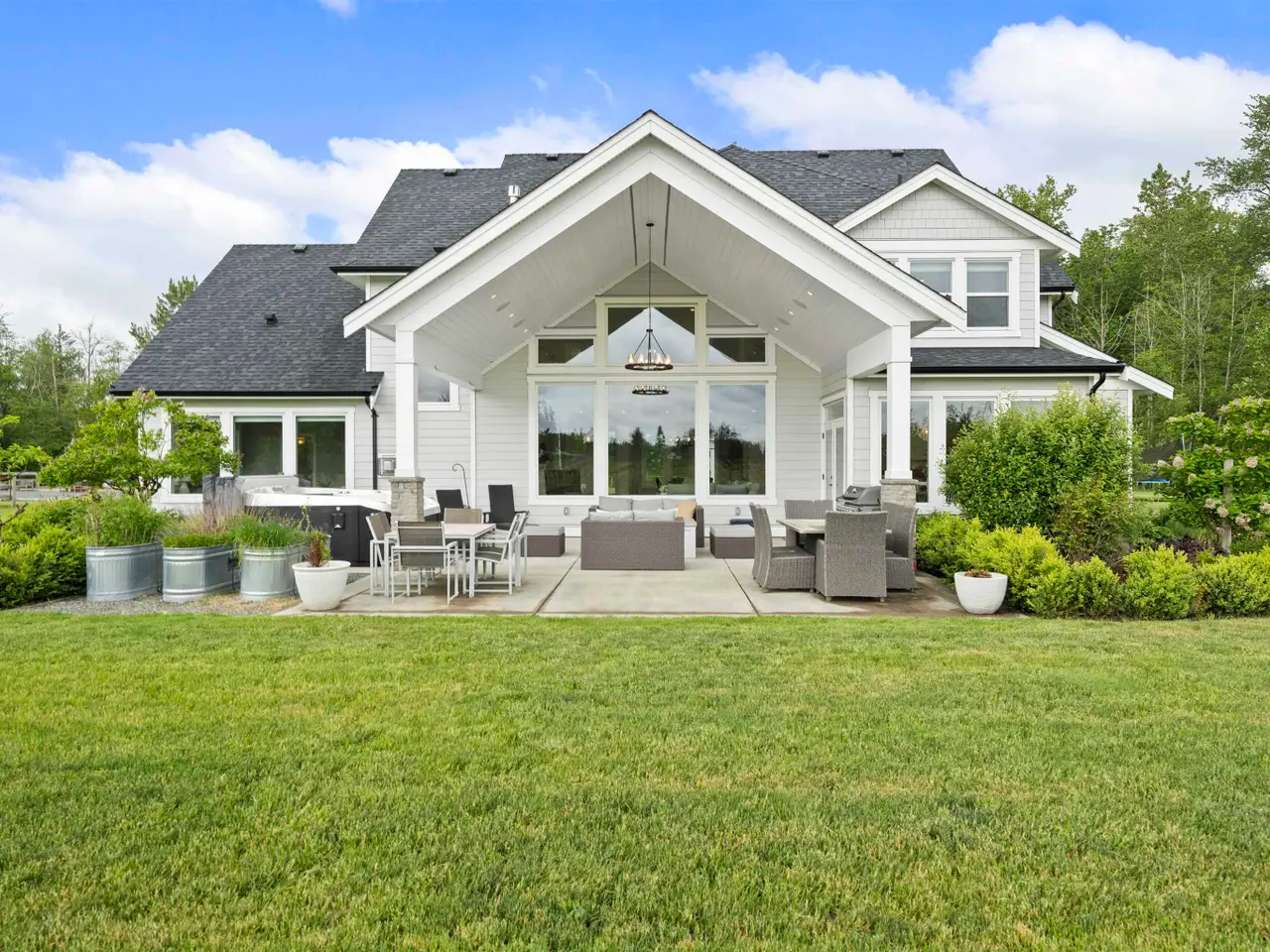 Discover the perfect blend of luxury and natural beauty in this stunning 2 storey estate, offering panoramic views of a vineyard and rolling pastures. Designed with timeless transitional style and open-concept living, this home delivers comfort, elegance, and functionality throughout. It begins with a bright living room featuring a double-height ceiling that flows seamlessly into the dining area and a chef’s kitchen, fully equipped with Wolf and Sub-Zero appliances. The main floor also features a primary suite that provides a peaceful and private retreat. Enjoy the comfort of AC indoors, relax under the spacious covered patio, or unwind in the hot tub. For the hobbyist, there’s a triple garage, a 6-stall barn, and a 22' x 44' detached shop. Truly one of a kind, come see for yourself!