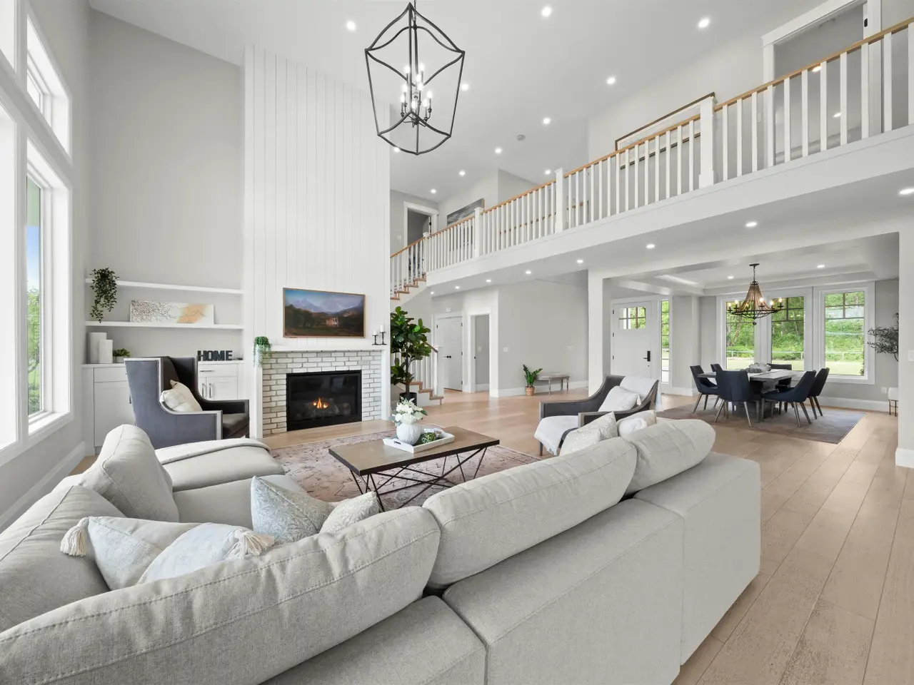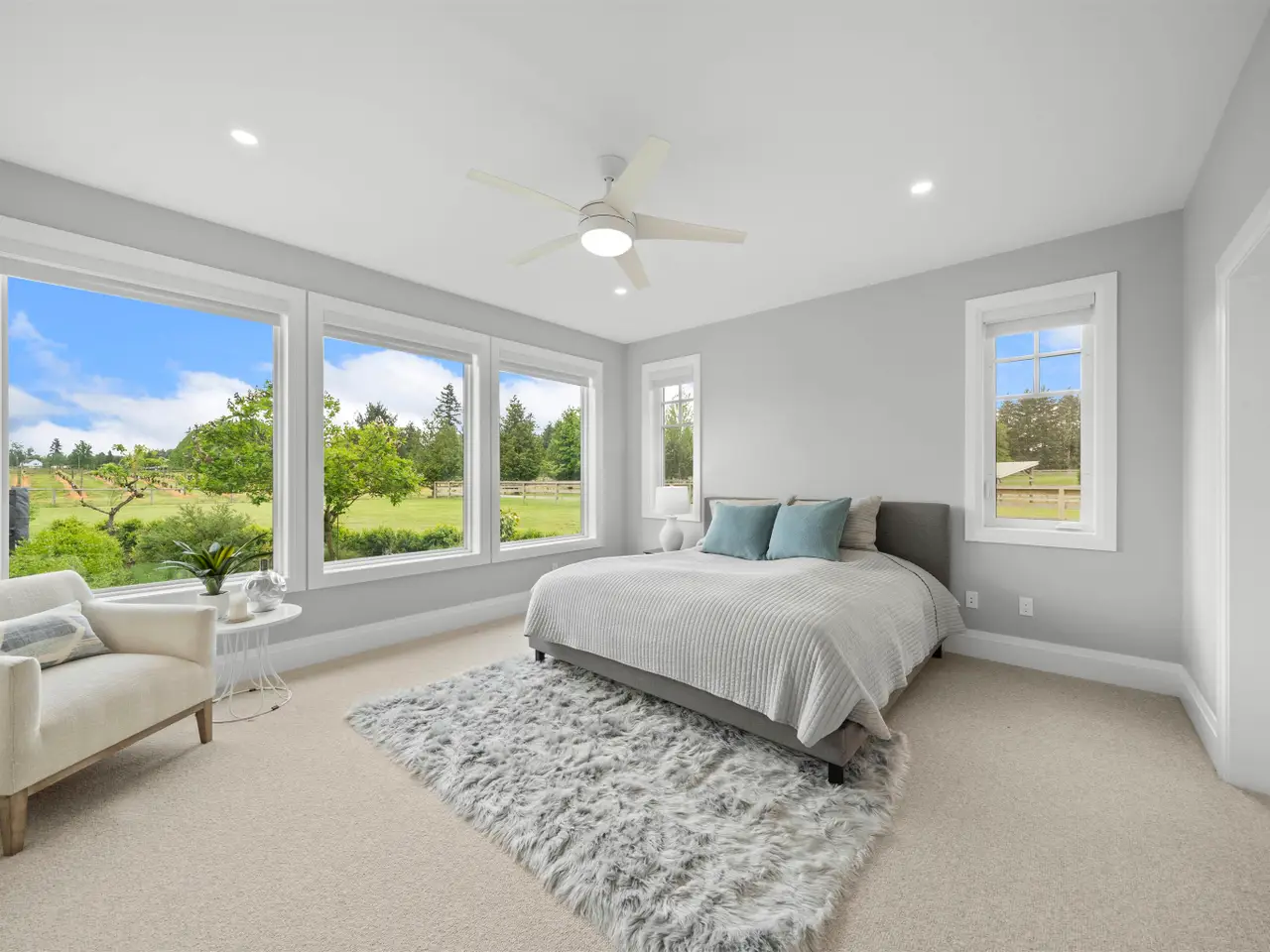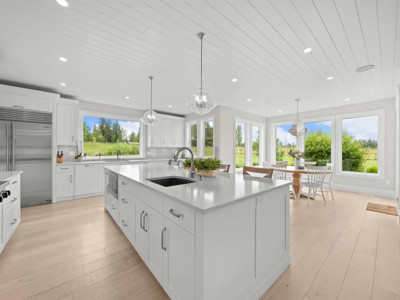 Discover the perfect blend of luxury and natural beauty in this stunning 2 storey estate, offering panoramic views of a vineyard and rolling pastures. Designed with timeless transitional style and open-concept living, this home delivers comfort, elegance, and functionality throughout. It begins with a bright living room featuring a double-height ceiling that flows seamlessly into the dining area and a chef’s kitchen, fully equipped with Wolf and Sub-Zero appliances. The main floor also features a primary suite that provides a peaceful and private retreat. Enjoy the comfort of AC indoors, relax under the spacious covered patio, or unwind in the hot tub. For the hobbyist, there’s a triple garage, a 6-stall barn, and a 22' x 44' detached shop. Truly one of a kind, come see for yourself!