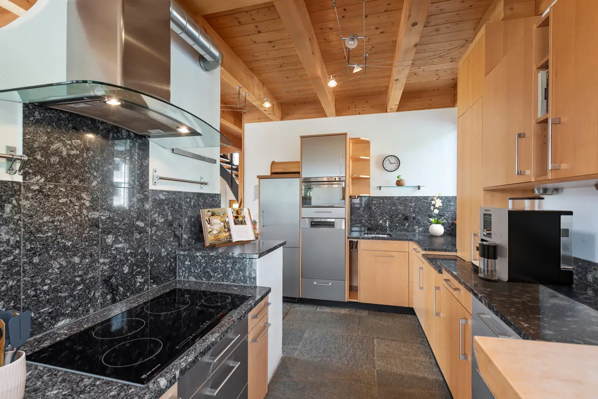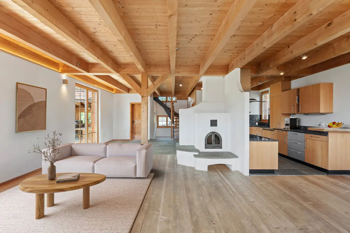 This charming, detached home at the edge of Lantsch/Lenz offers unobstructable views of the Grisons mountains along with sun throughout the day and borders directly onto agricultural and nature conservation zones – perfect for those who value peace, unspoiled countryside, and privacy. The property blends traditional chalet character with contemporary home comforts. The 5.5-room main house spans two levels and features open, light-filled galleries. The separate 3.5-room flat with its own entrance is ideal for guests or for short- or long-term rental. The carefully tended garden with multiple seating areas, the covered terrace, and extensive amount of exterior space provide plenty of opportunity for relaxation, play and social gatherings. Whether as a holiday home, main residence or multigenerational living solution – this prospect is suited to a number of different lifestyles. The house is in excellent condition and ready to move into. Shopping amenities, school and public transport connections to Lenzerheide, Chur and Davos are all within easy reach on foot. Two garage spaces and four outdoor parking spots round off the offer. The property - Approx. 177m² 5.5-room detached house - Self-contained flat extending to approx. 91m² with separate entrance - Large garden with terrace and covered seating area - Directly adjacent to protected agricultural and designated green zones - Two garage spaces and four outdoor parking spots - Long-established secondary residence permit