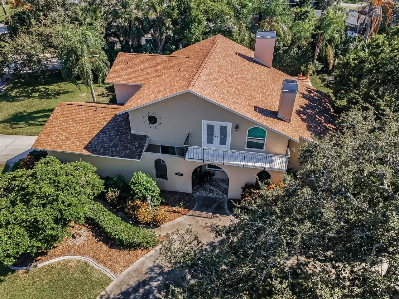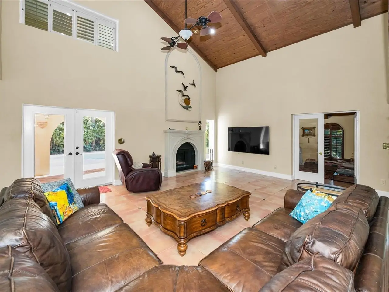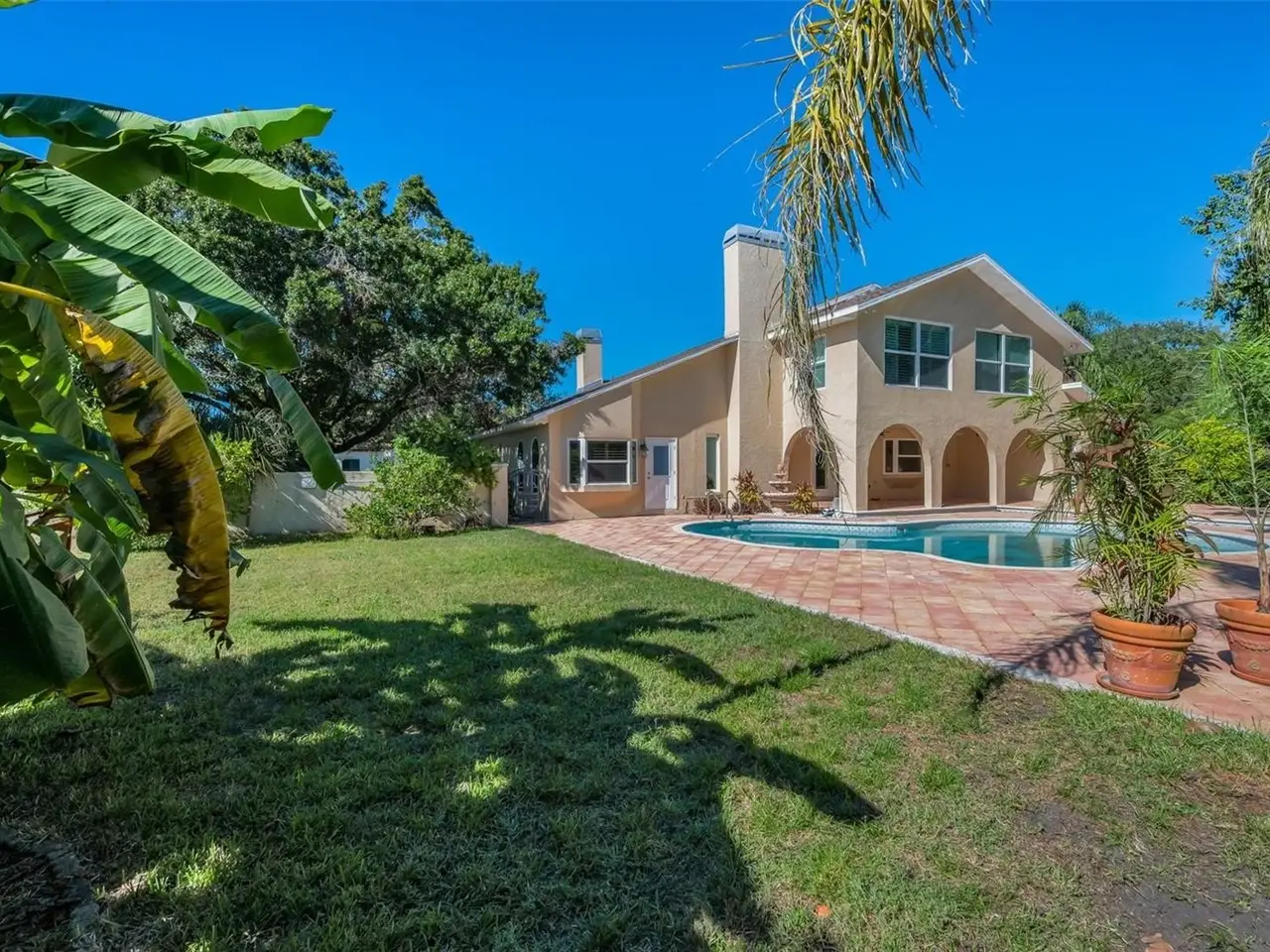 Timeless Mediterranean Revival Estate with Resort-Style Pool Oasis on Over Half an Acre in Prestigious Carlton Estates. Step into a world of enduring elegance with this captivating two-story Mediterranean style pool home, where architectural splendor meets elevated leisure and family-friendly luxury. Nestled on more than half an acre in one of Pinellas County’s most sought-after enclaves, this exceptional residence offers over 3,800 square feet of exquisitely designed living space. Inside, authentic character abounds, from rich Saltillo tile floors and arched doorways to bay windows, wrought iron railings, and soaring beamed ceilings that crown the interiors with timeless charm. A brand-new roof and updated windows and doors throughout ensure peace of mind and modern comfort. From the moment you enter, bold Tuscan-style tile flooring sets a tone of European permanence. The main level unfolds with expansive, interconnected living spaces, including a formal living and dining room that exudes warmth and sophistication—perfect for elegant entertaining or intimate evenings. At the heart of the home lies a grand, light-filled family room, where two-story vaulted ceilings and exposed wood beams evoke the rustic romance of a Spanish mission. Anchoring the space is a striking wood-burning fireplace, casting a cozy glow across gatherings large or small. The adjacent chef’s kitchen is a seamless extension of the living space, featuring a central island and open sightlines that keep the cook connected to the conversation. A sunlit breakfast nook with a bay window offers the ideal setting for casual meals and morning coffee with a view. Thoughtfully designed for flexibility, the main floor also includes a secluded office retreat with a beamed ceiling and a generously sized bedroom with an adjacent full bath—perfect for guests, multigenerational living, or a private sanctuary. A sweeping staircase of wood and wrought iron leads to the upper level, where three generously sized bedrooms and a sunlit, multi-purpose bonus room span the second floor. The expansive primary suite is a true retreat, complete with a dramatic stone fireplace and a private veranda for quiet moments under the stars. Outdoors, the Mediterranean lifestyle comes to life. A sprawling covered lanai with paver flooring and elegant arched breezeways opens to a park-like backyard, where mature landscaping surrounds a large, sparkling inground pool. Whether hosting alfresco soirées or enjoying tranquil afternoons in the sun, this outdoor oasis is designed for seamless indoor-outdoor living. This is more than a home, it’s a statement of style, serenity, and sophistication. With four bedrooms, 4 baths, a resort-style backyard & pool, and over half an acre in one of Pinellas County’s finest neighborhoods, this home checks every box. Don’t miss your chance to experience the elegance and ease of Carlton Estates living! Experience the European charm and refined design for yourself.
