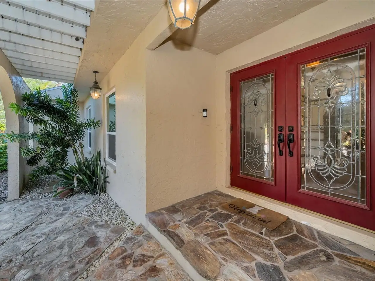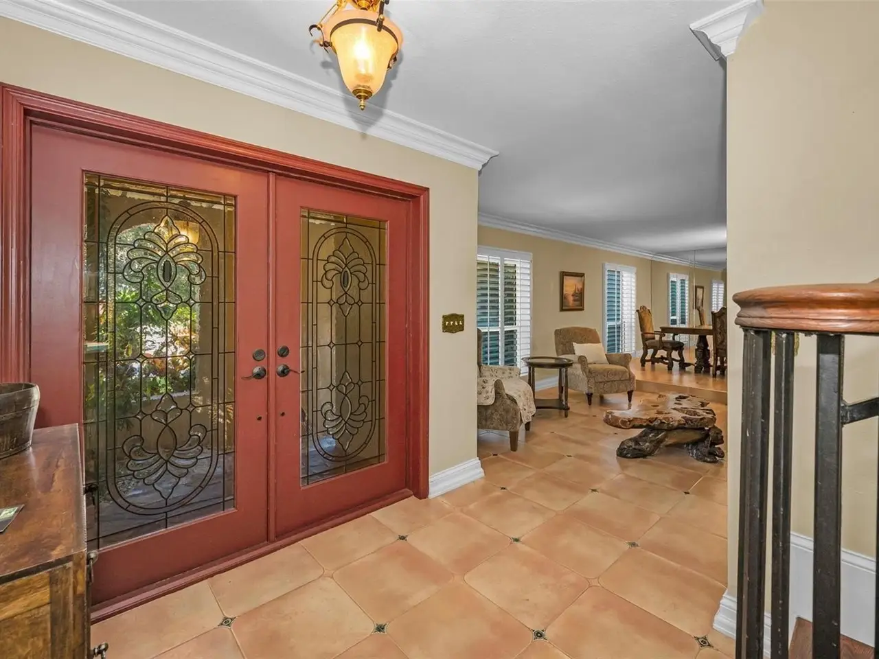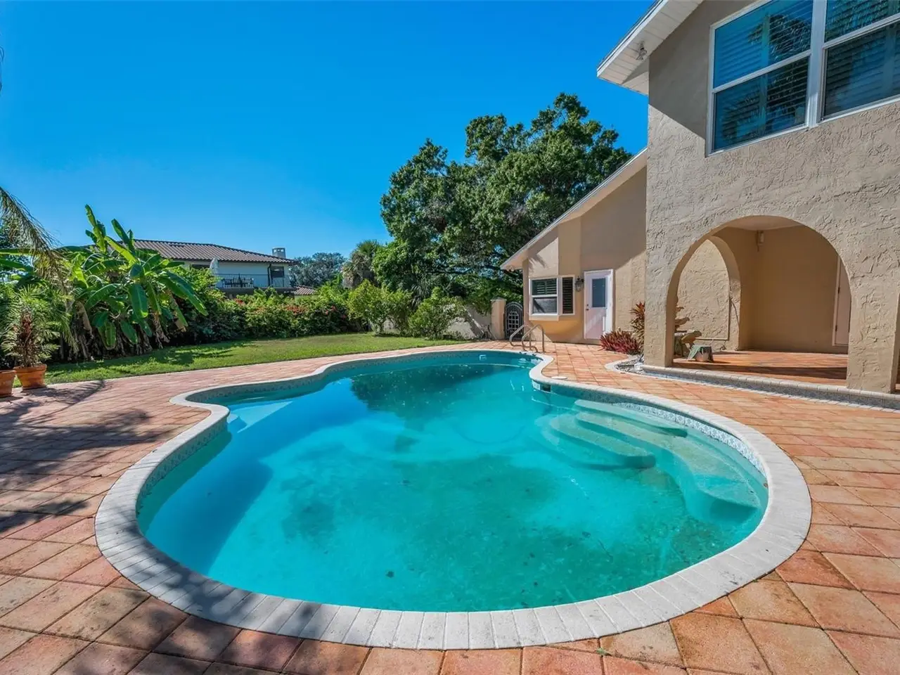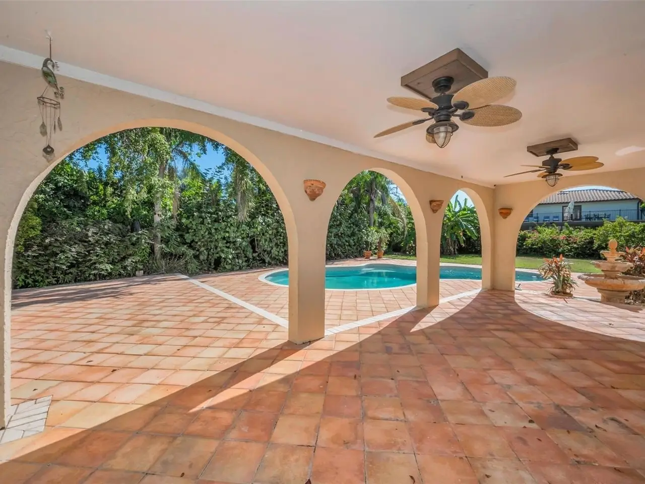 Timeless Mediterranean Revival Estate with Resort-Style Pool Oasis on Over Half an Acre in Prestigious Carlton Estates. Step into a world of enduring elegance with this captivating two-story Mediterranean style pool home, where architectural splendor meets elevated leisure and family-friendly luxury. Nestled on more than half an acre in one of Pinellas County’s most sought-after enclaves, this exceptional residence offers over 3,800 square feet of exquisitely designed living space. Inside, authentic character abounds, from rich Saltillo tile floors and arched doorways to bay windows, wrought iron railings, and soaring beamed ceilings that crown the interiors with timeless charm. A brand-new roof and updated windows and doors throughout ensure peace of mind and modern comfort. From the moment you enter, bold Tuscan-style tile flooring sets a tone of European permanence. The main level unfolds with expansive, interconnected living spaces, including a formal living and dining room that exudes warmth and sophistication—perfect for elegant entertaining or intimate evenings. At the heart of the home lies a grand, light-filled family room, where two-story vaulted ceilings and exposed wood beams evoke the rustic romance of a Spanish mission. Anchoring the space is a striking wood-burning fireplace, casting a cozy glow across gatherings large or small. The adjacent chef’s kitchen is a seamless extension of the living space, featuring a central island and open sightlines that keep the cook connected to the conversation. A sunlit breakfast nook with a bay window offers the ideal setting for casual meals and morning coffee with a view. Thoughtfully designed for flexibility, the main floor also includes a secluded office retreat with a beamed ceiling and a generously sized bedroom with an adjacent full bath—perfect for guests, multigenerational living, or a private sanctuary. A sweeping staircase of wood and wrought iron leads to the upper level, where three generously sized bedrooms and a sunlit, multi-purpose bonus room span the second floor. The expansive primary suite is a true retreat, complete with a dramatic stone fireplace and a private veranda for quiet moments under the stars. Outdoors, the Mediterranean lifestyle comes to life. A sprawling covered lanai with paver flooring and elegant arched breezeways opens to a park-like backyard, where mature landscaping surrounds a large, sparkling inground pool. Whether hosting alfresco soirées or enjoying tranquil afternoons in the sun, this outdoor oasis is designed for seamless indoor-outdoor living. This is more than a home, it’s a statement of style, serenity, and sophistication. With four bedrooms, 4 baths, a resort-style backyard & pool, and over half an acre in one of Pinellas County’s finest neighborhoods, this home checks every box. Don’t miss your chance to experience the elegance and ease of Carlton Estates living! Experience the European charm and refined design for yourself.