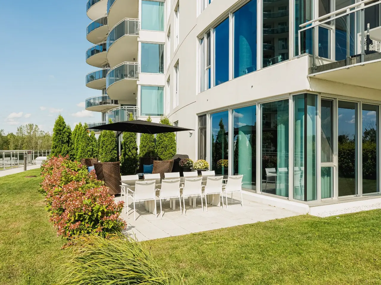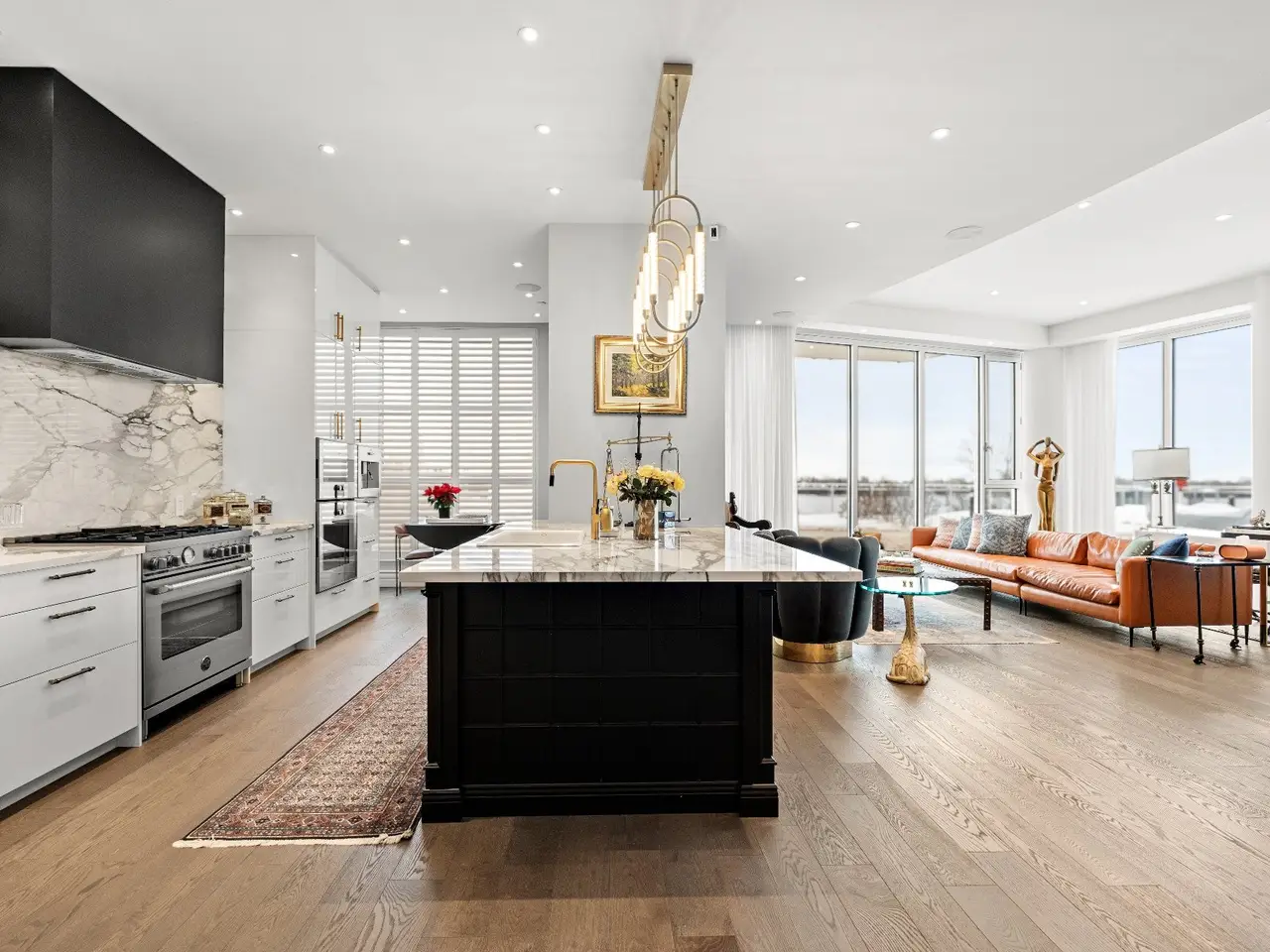 Experience unparalleled luxury at AquaBlu in Ste-Dorothee! This exquisite two bedroom, two bathroom condo is not the building standard, and has been upgraded with high end finishings and custom kitchen, bathrooms, and layout. This unit offers a grand kitchen with spacious island and floor-to-ceiling cabinetry. The living and dining areas have expansive wall-to-wall windows with water views. Off of the living area are the second bedroom, full bathroom, and laundry room. The primary bedroom has a walk-in closet and ensuite bathroom with tub and shower. Included are two indoor parking spaces and an exclusive private storage locker measuring 7.5 x 17.5 feet!