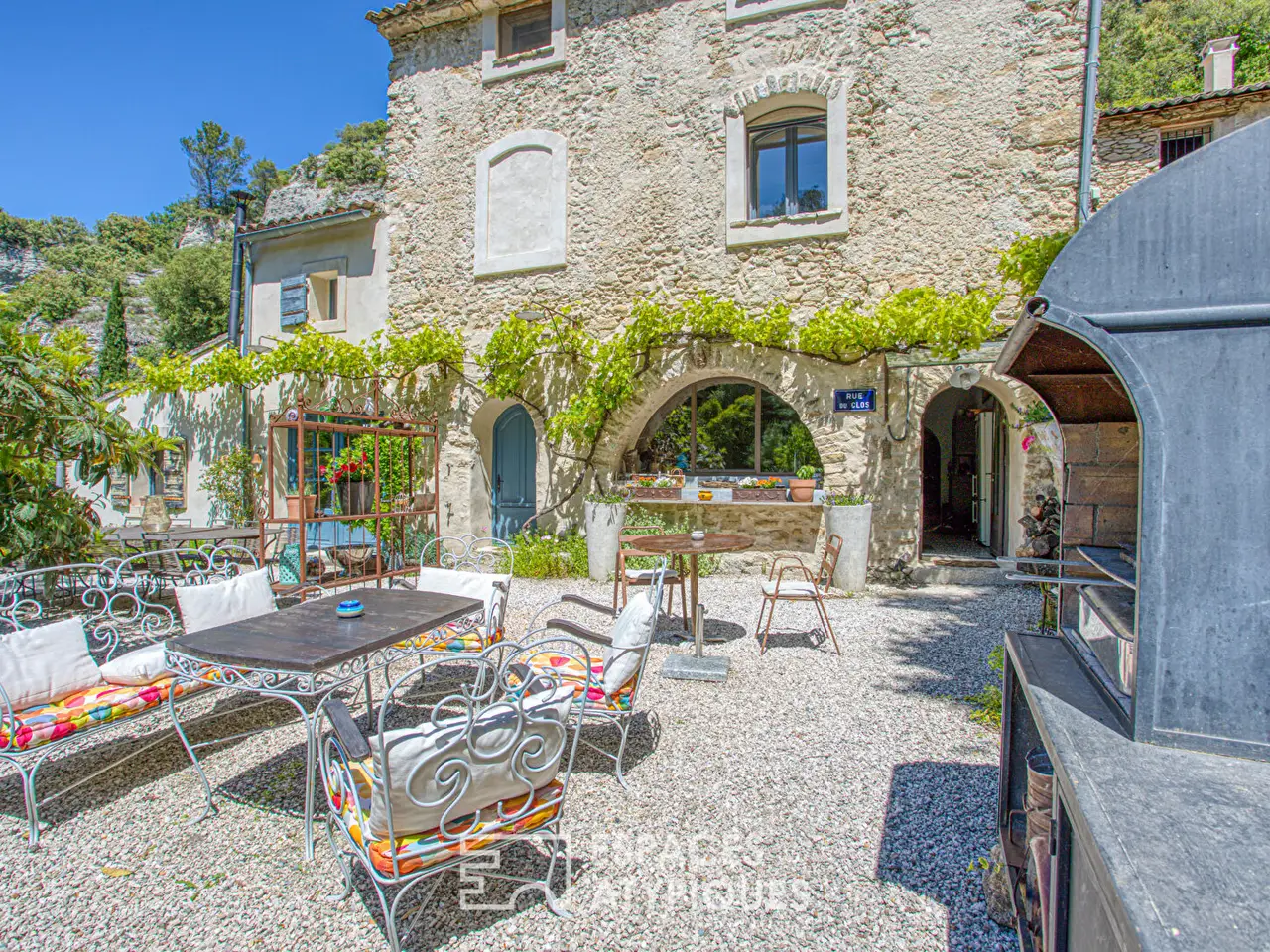 Nestled on a rocky slope in the magnificent hilltop village of Le Beaucet, this unique property tells a story of stone, light, and a gentle way of life. Just 20 minutes from L'Isle-sur-la-Sorgue, it offers a haven of peace in the heart of a preserved environment. The main house blends authenticity and character with a vast, light-filled living room enhanced by exposed stone walls, an open-plan kitchen, and a welcoming dining room. The private sleeping area houses a large bedroom with a dressing room and shower room. Two independent gites complete this unique setting. One sleeps 8 with 4 bedrooms and 4 shower rooms, the other sleeps 6 with 3 bedrooms, 2 shower rooms, and a terrace with breathtaking views. Each bedroom is air-conditioned, ensuring comfort and privacy. Outside, the show continues with a chlorine-treated concrete swimming pool (4x7m), a large 30 sqm veranda, a pool with a wooden terrace, a petanque court, a cellar, a storage room and a caravan: all in a green setting and absolute calm. A confidential address for lovers of unusual places, between life project and reception activity. ENERGY CLASS: D / CLIMATE CLASS: B Estimated average amount of annual energy expenditure for standard use, established from the energy prices of the year 2021, 2022, and 2023: between 5,810 and 7,950 euros. Additional information * 12 rooms * 8 bedrooms * 7 shower rooms * 2 floors in the building * Outdoor space : 9255 SQM * Property tax : 2 859 € Energy Performance Certificate Primary energy consumption d : 236 kWh/m2.year High performance housing