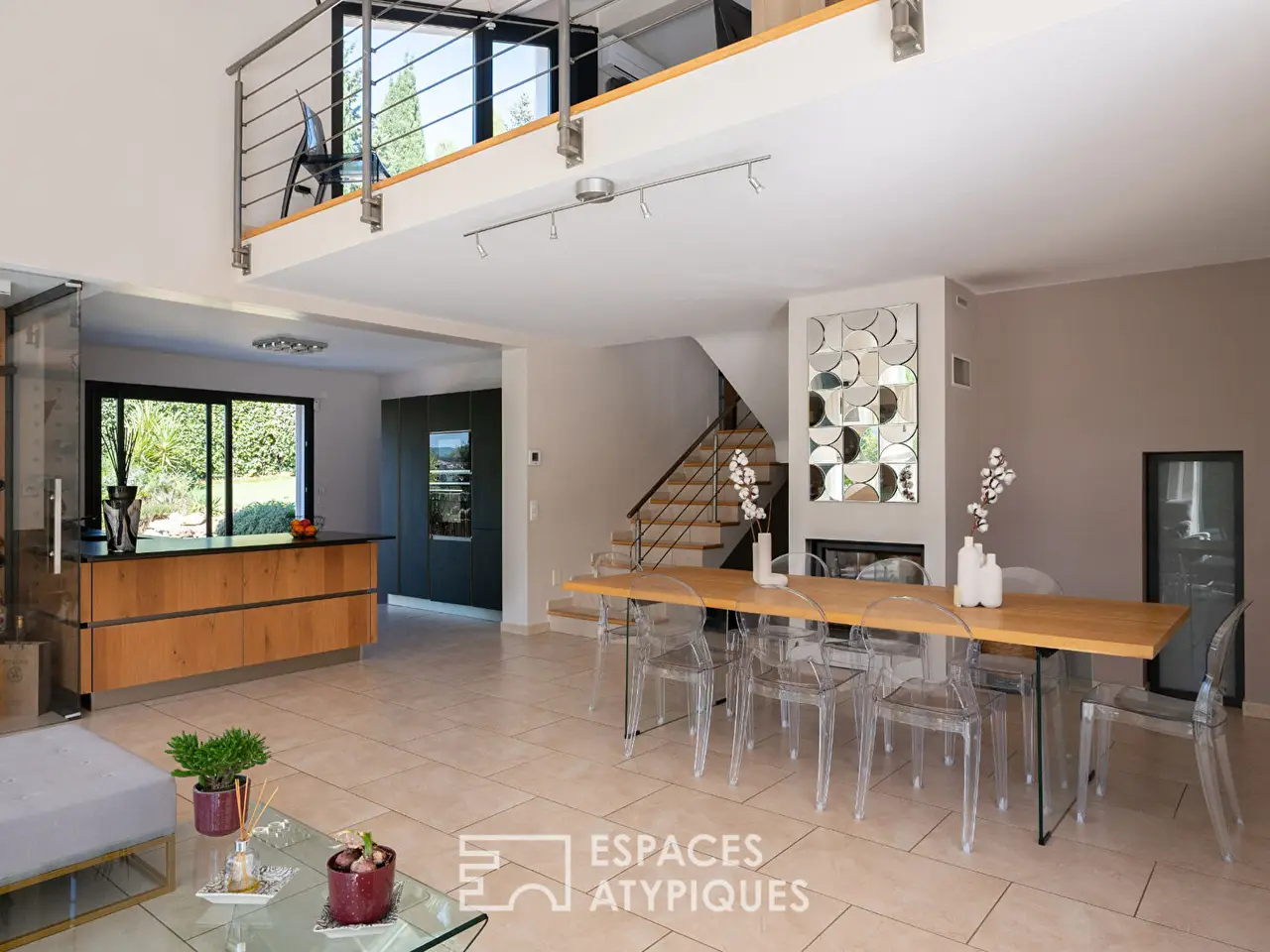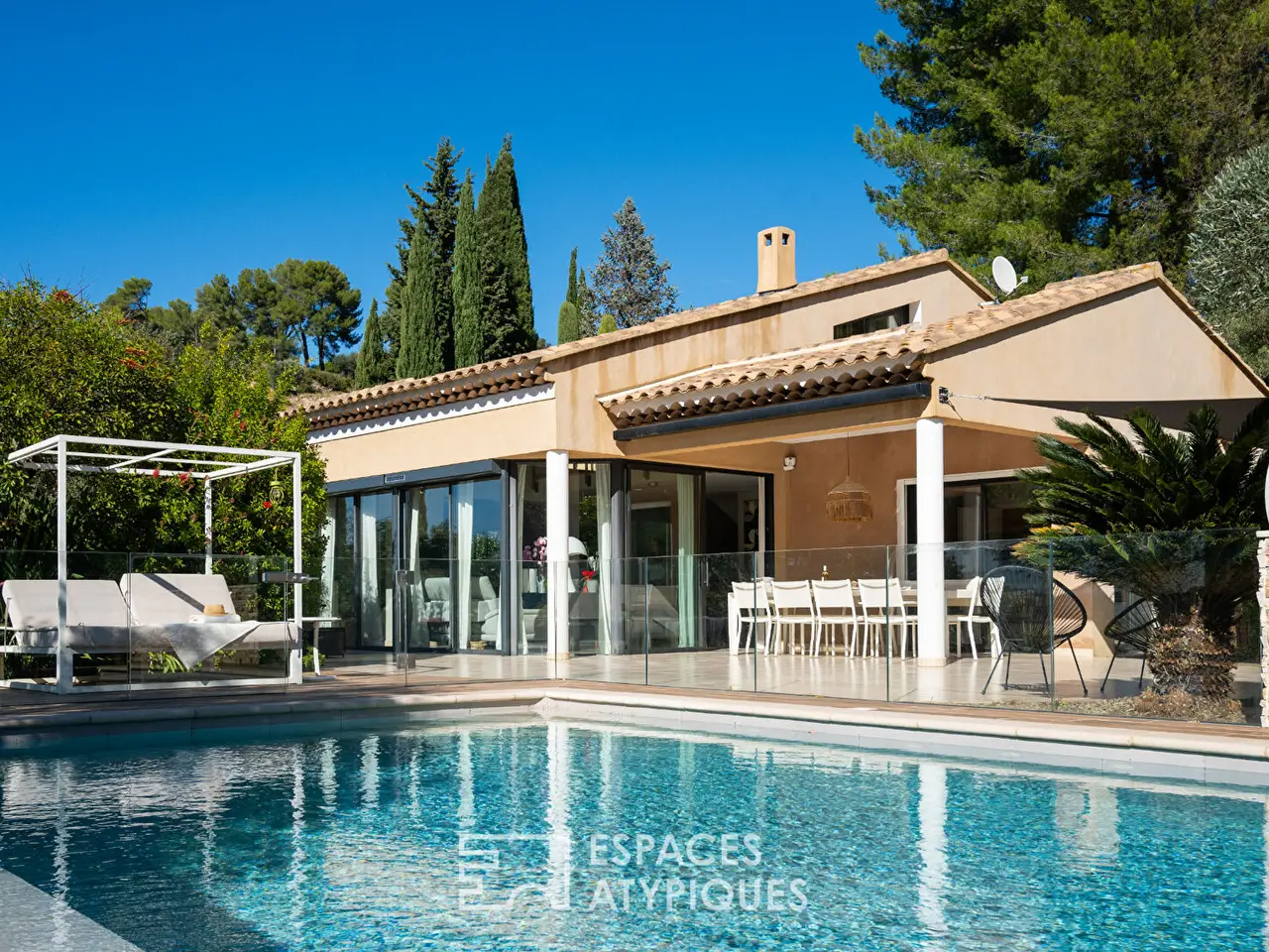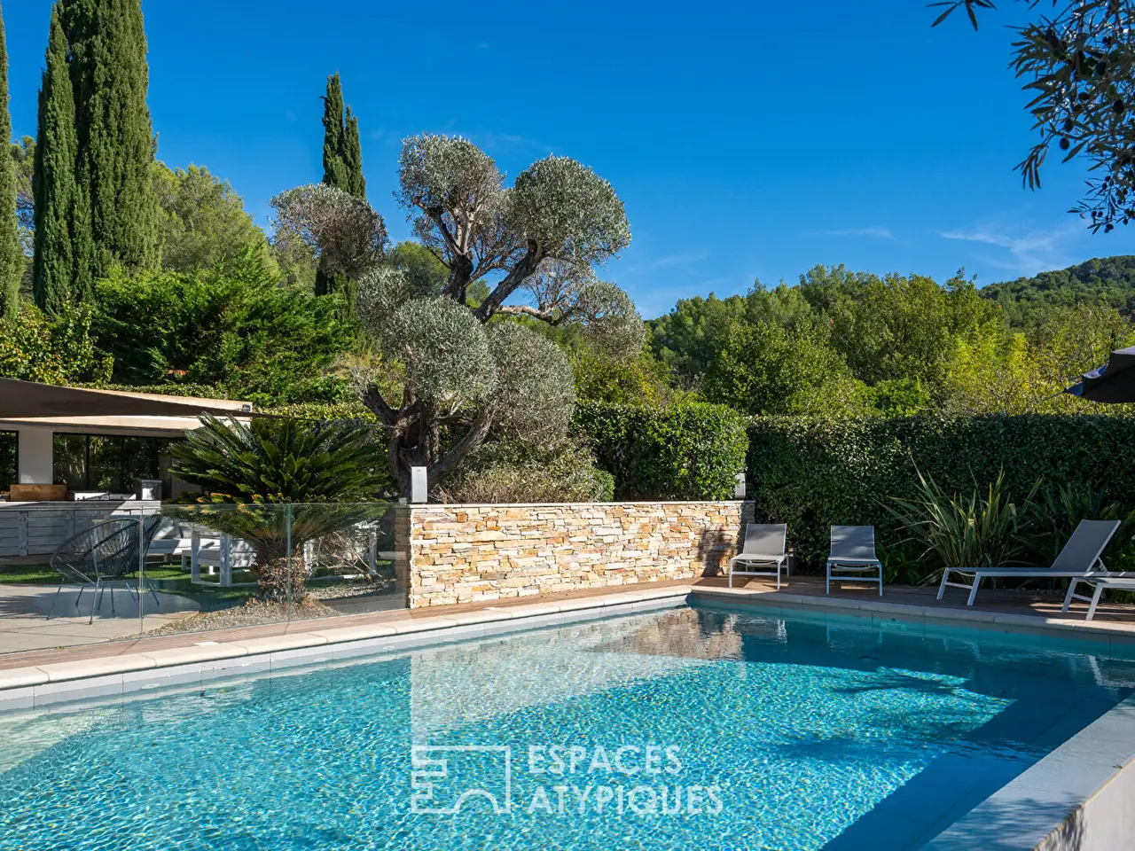 Decouvrez cette villa surprenante, idealement situee au Castellet dans le Var, avec une vue degagee sur les vignobles.De construction recente, elle allie lignes contemporaines, confort moderne et qualite de construction.L'environnement est calme, sans vis-a-vis, et la propriete beneficie d'une proximite immediate avec Bandol, Sanary-sur-Mer et les acces autoroutiers.Prevue pour un confort optimal, cette residence offre un acces direct a un garage double spacieux avant de devoiler une entree accueillante, une cuisine entierement equipee ouverte sur un vaste salon-sejour baigne de lumiere grace a ses larges baies vitrees, et agremente d'une cheminee a double acces.Le rez-de-chaussee est complete par une buanderie ainsi qu'un espace television, pense comme un cocon, et une suite parentale avec salle de bains privative et dressing, la chambre ouvrant sur la terrasse et la piscine.Deux chambres a l'etage disposent chacune de leur propre salle d'eau. Une mezzanine accedant a deux terrasses solariums complete cet espace de vie raffine.Les exterieurs ont ete concus pour varier les espaces : une terrasse couverte avec cuisine d'ete equipee (plancha, point d'eau, refrigerateur, lave-vaisselle), une piscine a debordement au sel (8×5 m) chauffee par pompe a chaleur recente, avec nage a contre-courant. Un terrain de boules vient agrementer le jardin intimiste et ses quelques arbres fruitiers.Pour vous garantir une qualite de vie inegalee, on y trouve toutes les installations modernes telles qu'un portail coulissant electrique, une alarme par video-surveillance, une aspiration centralisee, un arrosage automatique, un plancher chauffant ou rafraichissant par pompe a chaleur dans toutes les pieces, une climatisation reversible dans les chambres a l'etage ainsi que dans la mezzanine, un acces au canal de Provence:Un veritable refuge, sublime par ses prestations elegantes et son environnement paisible, a deux pas de la mer et des grands axes.CLASSE ENERGIE: C 123/ CLASSE CLIMAT: A 3Estimation du coût annuel des energies pour un usage standard (DPE realise apres le 1er janvier 2024): entre 1380 et 1940 euros.Les informations reglementaires sur les risques auxquels ce bien est expose sont disponibles sur le site Georisques : www.georisques.gouv.frSabine CoulinRÉF. 13007Informations complementaires* 4 pieces* 3 chambres* 1 salle de bain* 2 salles d'eau* Étage : 2* 2 etages dans l'immeuble* Surface du terrain : 1066 m2* Taxe fonciere : 2 753 €Diagnostics de performance energetiqueConsommation energie primairec : 123 kWh/m2.anLogement extremement performant*A*B*123kWh/m2.an3*kg CO2/m2.anC*D*E*F*GLogement extremement peu performant* Dont emissions gaz a effet de serrea : 3 kg CO2/m2.anPeu d'emissions de CO2*3kg CO2/m2.anA*B*C*D*E*F*GEmissions de CO2 tres importantesMontant moyen estime des depenses annuelles d'energie pour un usage standard, indexees aux annees 2021, 2022, 2023 : entre 1380 € et 1940 € (abonnement compris)Honoraires de l'agenceLes honoraires sont TTC a la charge du vendeurMediateurMediation Franchise-Consommateurswww.mediation-franchise.com29 Boulevard de Courcelles 75008 ParisLes informations sur les risques auxquels ce bien est expose sont disponibles sur le site Georisques : www.georisques.gouv.fr