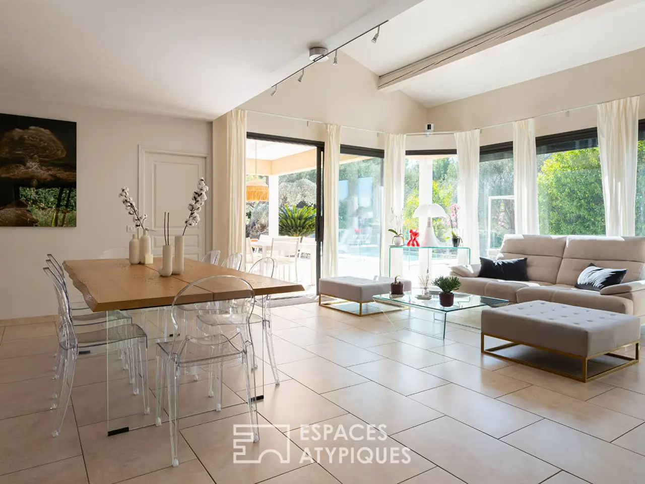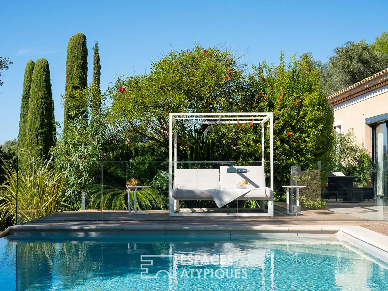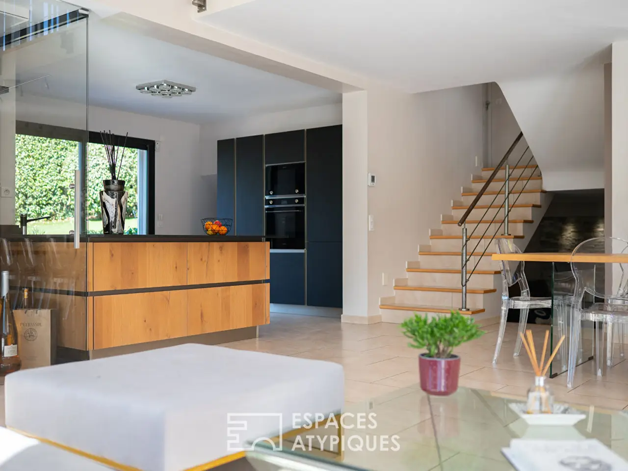 Decouvrez cette villa surprenante, idealement situee au Castellet dans le Var, avec une vue degagee sur les vignobles.De construction recente, elle allie lignes contemporaines, confort moderne et qualite de construction.L'environnement est calme, sans vis-a-vis, et la propriete beneficie d'une proximite immediate avec Bandol, Sanary-sur-Mer et les acces autoroutiers.Prevue pour un confort optimal, cette residence offre un acces direct a un garage double spacieux avant de devoiler une entree accueillante, une cuisine entierement equipee ouverte sur un vaste salon-sejour baigne de lumiere grace a ses larges baies vitrees, et agremente d'une cheminee a double acces.Le rez-de-chaussee est complete par une buanderie ainsi qu'un espace television, pense comme un cocon, et une suite parentale avec salle de bains privative et dressing, la chambre ouvrant sur la terrasse et la piscine.Deux chambres a l'etage disposent chacune de leur propre salle d'eau. Une mezzanine accedant a deux terrasses solariums complete cet espace de vie raffine.Les exterieurs ont ete concus pour varier les espaces : une terrasse couverte avec cuisine d'ete equipee (plancha, point d'eau, refrigerateur, lave-vaisselle), une piscine a debordement au sel (8×5 m) chauffee par pompe a chaleur recente, avec nage a contre-courant. Un terrain de boules vient agrementer le jardin intimiste et ses quelques arbres fruitiers.Pour vous garantir une qualite de vie inegalee, on y trouve toutes les installations modernes telles qu'un portail coulissant electrique, une alarme par video-surveillance, une aspiration centralisee, un arrosage automatique, un plancher chauffant ou rafraichissant par pompe a chaleur dans toutes les pieces, une climatisation reversible dans les chambres a l'etage ainsi que dans la mezzanine, un acces au canal de Provence:Un veritable refuge, sublime par ses prestations elegantes et son environnement paisible, a deux pas de la mer et des grands axes.CLASSE ENERGIE: C 123/ CLASSE CLIMAT: A 3Estimation du coût annuel des energies pour un usage standard (DPE realise apres le 1er janvier 2024): entre 1380 et 1940 euros.Les informations reglementaires sur les risques auxquels ce bien est expose sont disponibles sur le site Georisques : www.georisques.gouv.frSabine CoulinRÉF. 13007Informations complementaires* 4 pieces* 3 chambres* 1 salle de bain* 2 salles d'eau* Étage : 2* 2 etages dans l'immeuble* Surface du terrain : 1066 m2* Taxe fonciere : 2 753 €Diagnostics de performance energetiqueConsommation energie primairec : 123 kWh/m2.anLogement extremement performant*A*B*123kWh/m2.an3*kg CO2/m2.anC*D*E*F*GLogement extremement peu performant* Dont emissions gaz a effet de serrea : 3 kg CO2/m2.anPeu d'emissions de CO2*3kg CO2/m2.anA*B*C*D*E*F*GEmissions de CO2 tres importantesMontant moyen estime des depenses annuelles d'energie pour un usage standard, indexees aux annees 2021, 2022, 2023 : entre 1380 € et 1940 € (abonnement compris)Honoraires de l'agenceLes honoraires sont TTC a la charge du vendeurMediateurMediation Franchise-Consommateurswww.mediation-franchise.com29 Boulevard de Courcelles 75008 ParisLes informations sur les risques auxquels ce bien est expose sont disponibles sur le site Georisques : www.georisques.gouv.fr