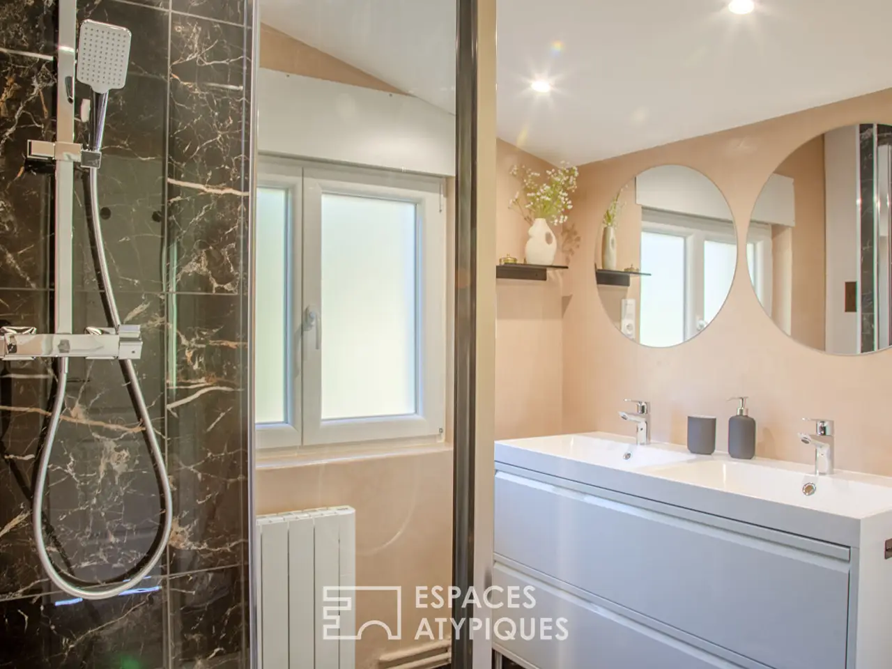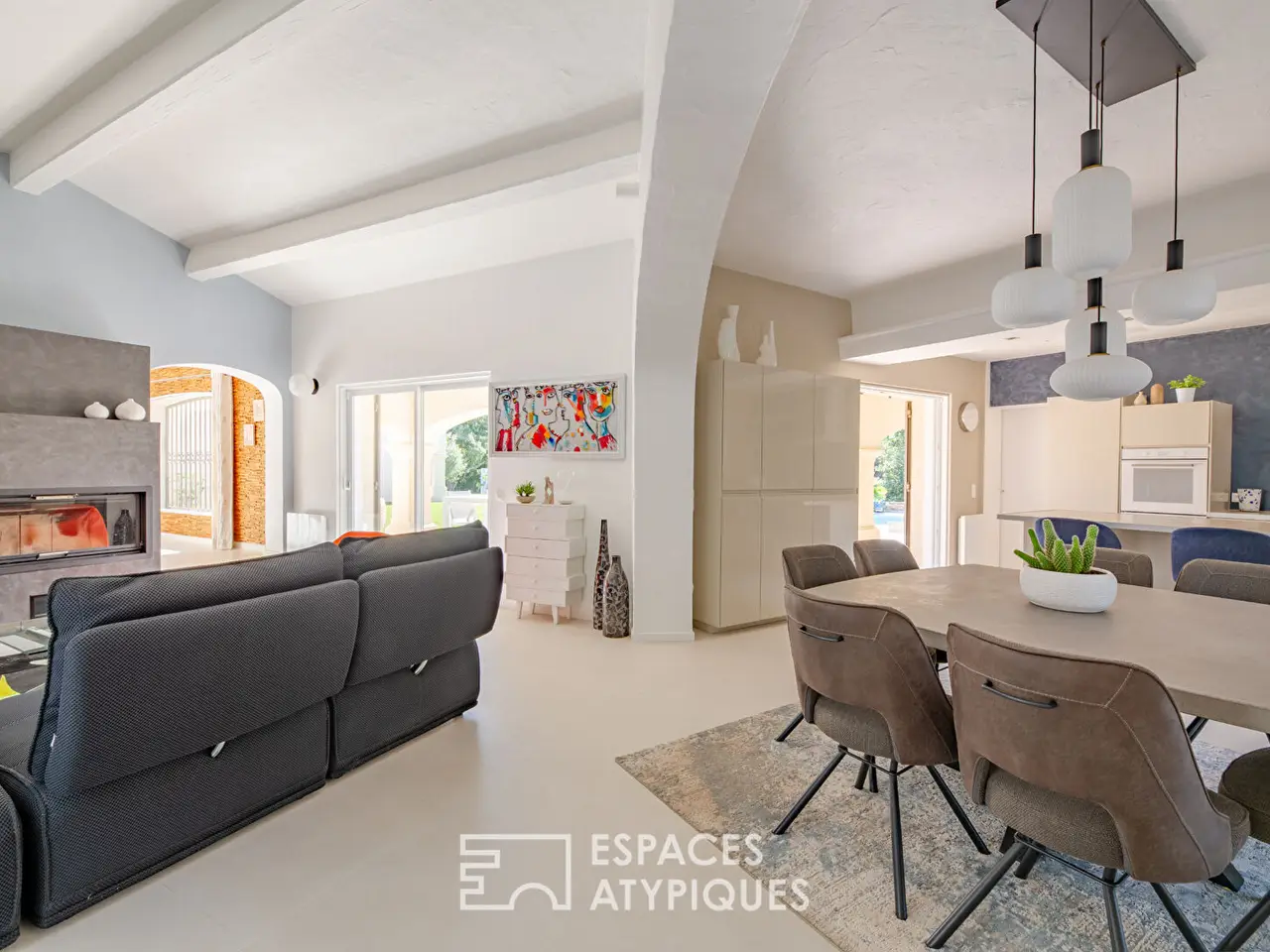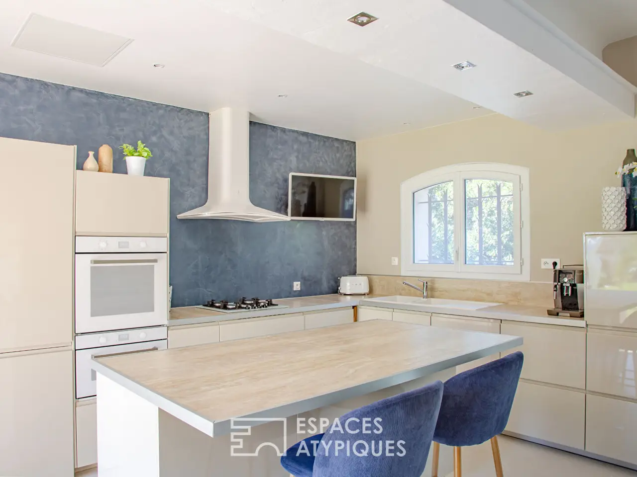 Luxuriously furnished pool house with bioclimatic pergola and summer kitchen