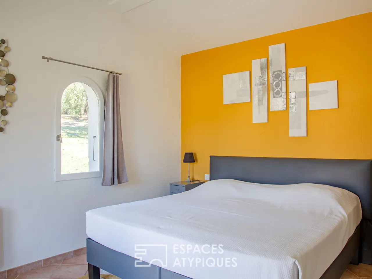 Villa in its green setting and its xxl swimming pool Located in a prestigious and secure estate in the commune of Le Muy, this exceptional property, completely renovated, extends over 11,540 m2 of fenced land in a natural area. Nestled in a green setting, it benefits from a peaceful and authentic environment, enhanced by Mediterranean species such as oaks, palm trees, fig trees, pines, olive trees, rosemary and mimosas. This idyllic setting, where an atmosphere of serenity reigns, makes this property a true haven of peace, in perfect harmony with the surrounding nature. The main house, with a surface area of approximately 120 m2, is spread over two levels, benefiting from a South/South-West exposure that floods the spaces with natural light. The entrance, on the garden level, leads to a spacious cathedral living room with insert fireplace which extends into a dining room and a modern open kitchen fully equipped with central island. A practical laundry room adjoining the kitchen is also accessible from the large composite wood terrace and completes this space. The ground floor also houses a large bedroom on one level, a dressing room (which can be converted into a second bedroom), as well as a shower room and guest toilet. Upstairs, an additional bedroom has its own bathroom with toilet, offering comfort and privacy. Adjoining the main house, an independent studio of approximately 20 m2 is perfectly designed to accommodate guests or serve as a work space, equipped with air conditioning and an elegant shower room with toilet. For guests or family, an independent air-conditioned apartment of 46m2 offers two bedrooms, a fitted and equipped kitchen, a shower room and separate toilet, ensuring everyone a private and comfortable space. The exterior is the real asset of this property with a luxuriously furnished pool house, equipped with a bioclimatic pergola, a complete summer kitchen and a concrete bar, all with a travertine floor for an extra touch of elegance. The 15 x 6 m swimming pool invites you to relax under the Cote d'Azur sun. A closed garage, accompanied by a storage space and an additional laundry room, as well as numerous parking spaces, complete the high-end services of this property. Security is ensured by a high-performance alarm system. Two boreholes supply the automatic watering, guaranteeing easy maintenance of the green spaces throughout the year, adding a touch of comfort and practicality to this exceptional property. This rare property is ideal for entertaining discreetly or considering a prestigious seasonal rental. Between tranquility, comfort and authenticity, it offers an exceptional opportunity for lovers of nature and tranquility, just a few minutes from all amenities. 10 min from essential shops 5 min from the motorway 13 min from the Arcs-Draguignan TGV station 20 min from Sainte-Maxime and its beaches ENERGY CLASS: C (163 kWh/m2/year) / CLIMATE CLASS: A (5 kg CO2/m2/year). Estimated average amount of annual energy expenditure for standard use, based on 2021 energy prices: between 1160 euros and 1630 euros. REF. 12416 Additional information * 6 rooms * 5 bedrooms * 1 bathroom * 3 shower rooms * 1 floor in the building * Outdoor space : 11540 SQM * Parking : 5 parking spaces * Property tax : 4 474 € Energy Performance Certificate Primary energy consumption c : 163 kWh/m2.year High performance housing