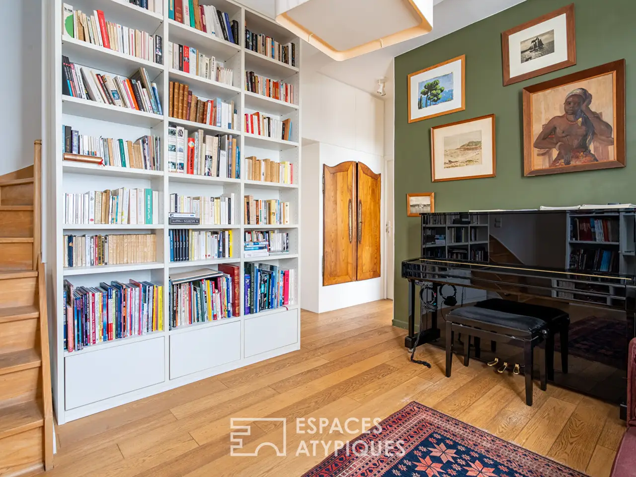 Music room/library with staircase