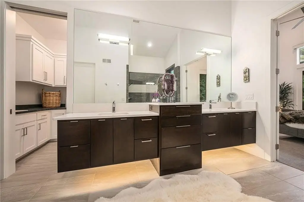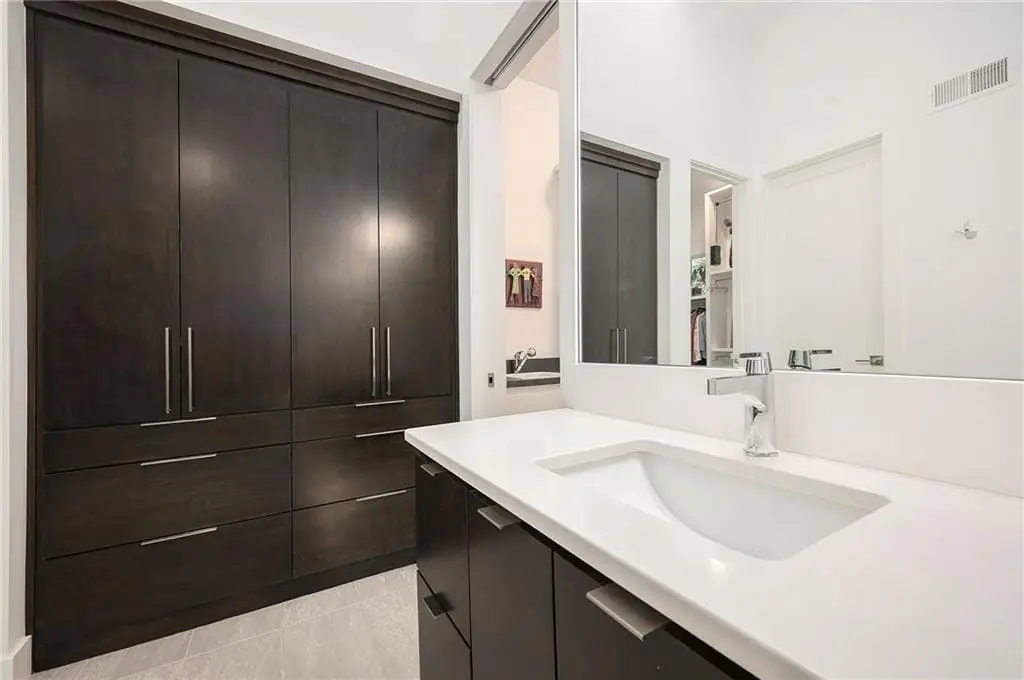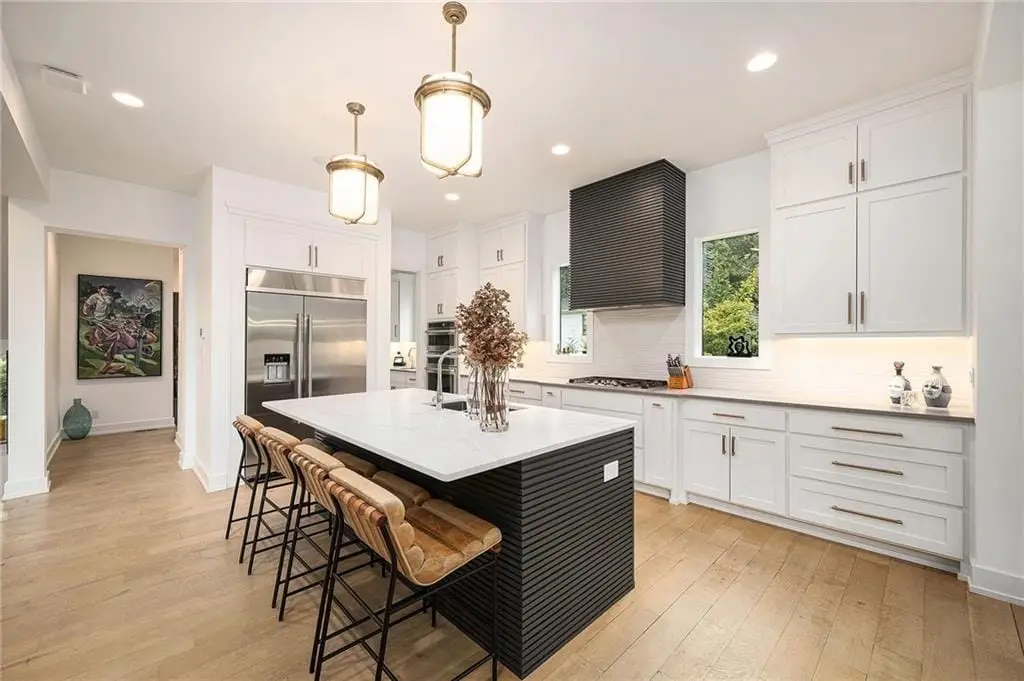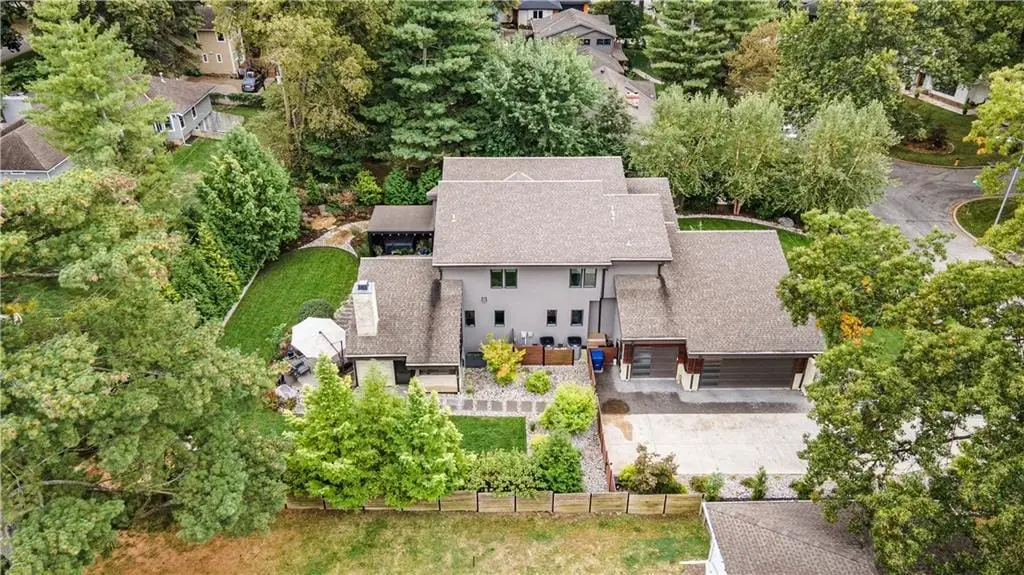 Experience the epitome of luxury living in this must-see, award-winning contemporary masterpiece meticulously crafted by Starr Builders. This extraordinary residence captivates with its striking architectural design, featuring rich IPE wood accents and elegant natural stacked stone that elevate its sophisticated curb appeal. Artfully landscaped front and back gardens create private, serene retreat environments, perfectly complementing the home's opulent exterior. Step into a breathtaking two-story entryway that welcomes you into an expansive great room flooded with natural light through soaring floor-to-ceiling windows, offering panoramic views of the meticulously designed surroundings. The great room is a true highlight, with a dramatic two-story modern gas fireplace adorned with exquisite white stacked stone, custom built-in shelving, and remote control shades. The gourmet kitchen is a culinary sanctuary, boasting top-of-the-line appliances, a state-of-the-art built-in refrigerator, and an expansive butler’s pantry complete with a wine chiller and ice machine. Double sliding doors lead to a screened porch, designed for seamless outdoor living, featuring a built-in gas grill, mini fridge, and a warming wood-burning fireplace. Primary suite is located on the main level featuring spa like bath and large custom closet. Step outside primary to a pergola that offers privacy for hot tub. Spacious dedicated office on main level, two ensuite bedrooms upstairs with generous walk-in closets, and a fully finished lower level with a media room, stylish bar with ice maker, mini fridge, dishwasher, and 4th bed and bath complete this masterpiece. Heated three-car garage with expansive windows. Located in the heart of Old Leawood, this residence is within walking distance of premier shops, grocery stores, upscale dining, and renowned schools - presenting an unrivaled opportunity to enjoy luxurious, effortless living in a highly coveted neighborhood. Endless upgrades!