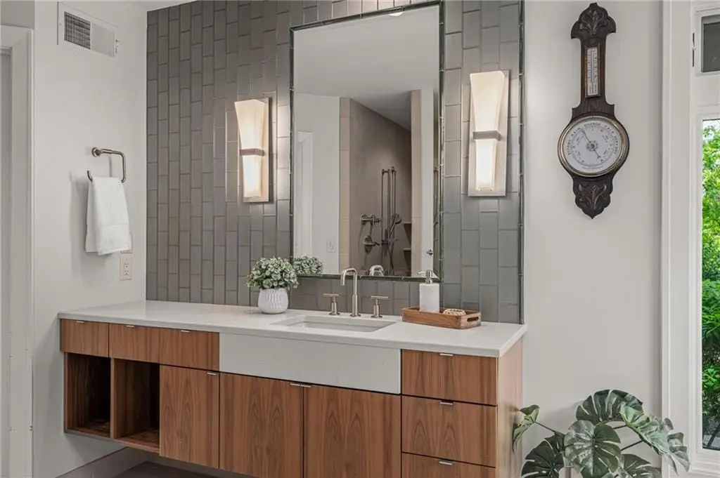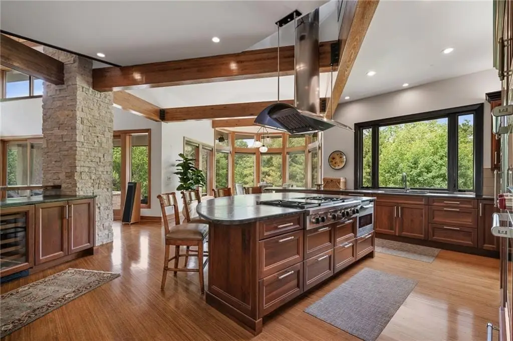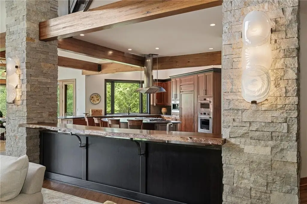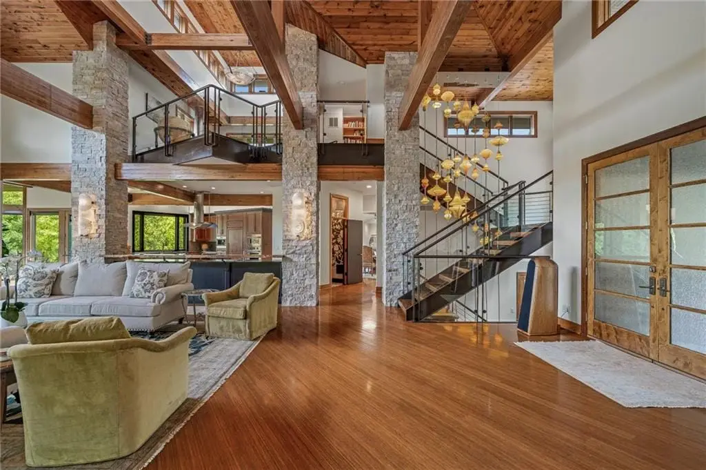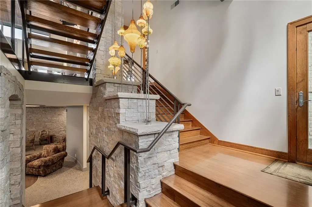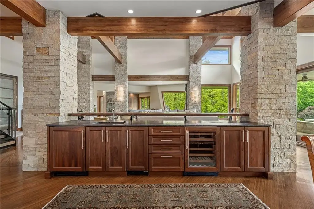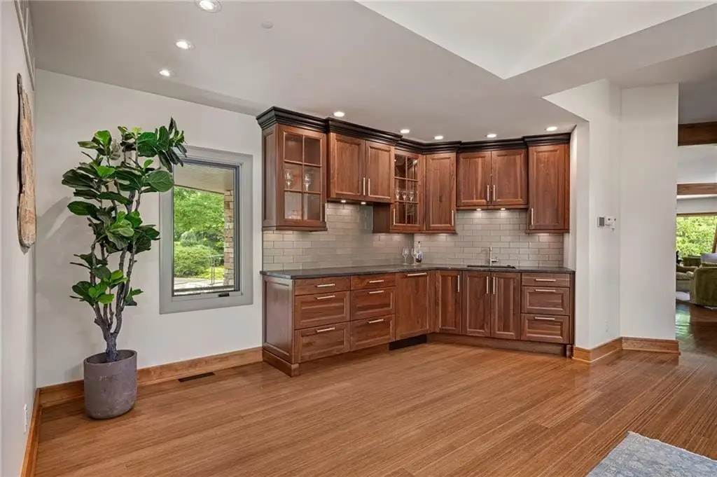 $200,000 PRICE REDUCTION on gorgeous LUXURY ESTATE in OLD LEAWOOD on Iconic Lee Blvd! Completely remodeled and transformed with over $2 million in renovation! Prepare to be swept off your feet by this jaw-dropping, one-of-a-kind estate on 1.7 acresnestled along a peaceful creek and backing to a picturesque park. This reimagined contemporary masterpiece blends high-end design with exceptional craftsmanship in one of the most sought-after neighborhoods in the metro. Step inside to an open-concept showpiece anchored by a chefs dream kitchen featuring Wolf appliances, gas cooktop, custom wet bar with live edge slab, beverage fridge, and a breakfast room framed by windows overlooking lush, manicured landscaping. Natural light pours into the main level, highlighting soaring ceilings in the great room and offering a true sense of serenity and space. The show-stopping primary suite offers a spa-worthy bath, private patio, and peaceful views. Two additional guest suites on the main floor provide comfort and privacy. A dramatic formal dining roomcomplete with a second wet bar, dishwasher, and custom cabinetrysets the stage for unforgettable entertaining. Throughout the home, hand-blown glass light fixtures add artistry and elegance to every room. Upstairs, a cozy library loft with built-ins and a private balcony overlooks the great roomperfect for reading or quiet reflection. The walk-out lower level is an entertainers dream, boasting a second kitchen with exotic granite, Wolf appliances, expansive rec room with surround sound, fourth bedroom with private bath, half bath, wine cellar, and a display room ideal for art or special collections. Stone accent walls add warmth and lodge-like charm. Step outside to the private lower-level patio and enjoy your very own botanical paradise. The seller has planted dozens of mature trees, flowering shrubs, and vibrant bloomscreating a landscape that evolves beautifully with the seasons. A true legacy property in Old Leawood.