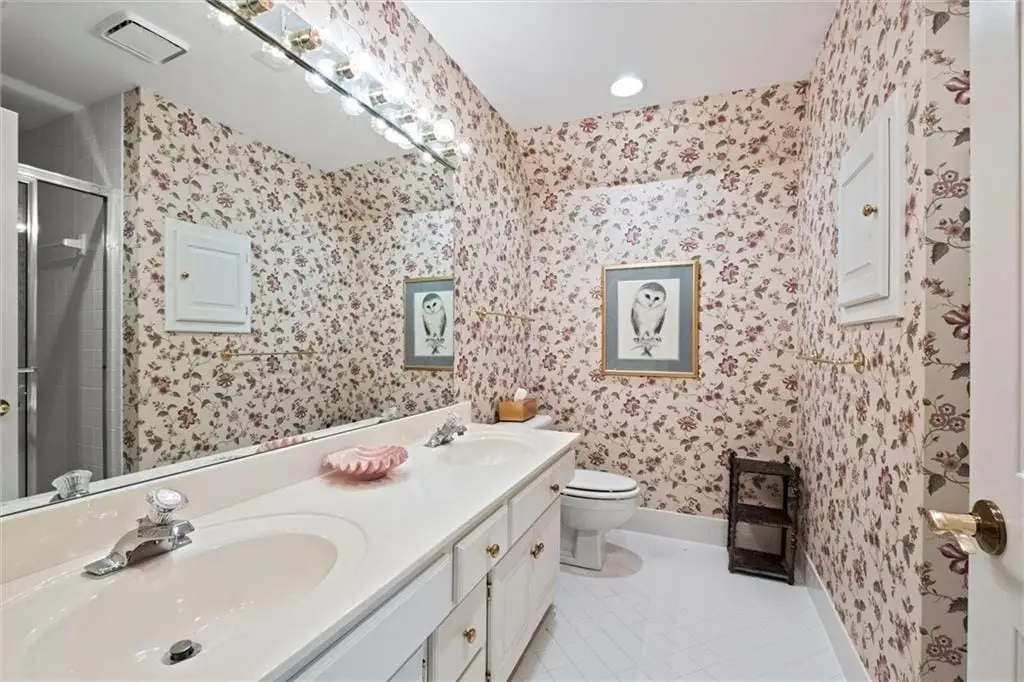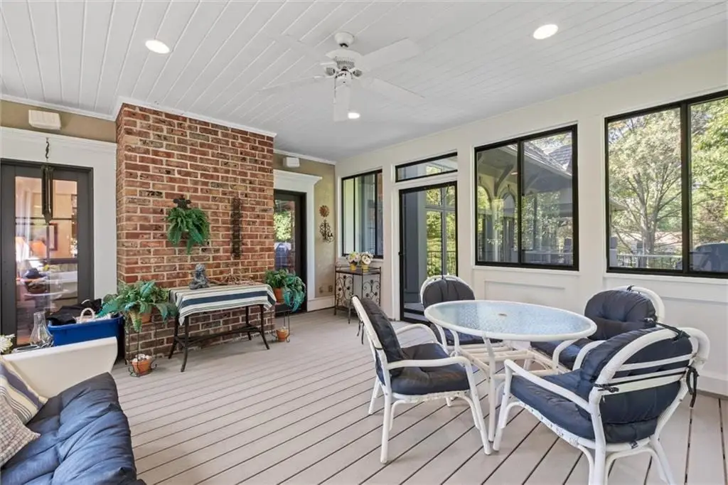 Exclusive Gated Retreat! Tucked away at the end of a quiet cul-de-sac in a private gated community consisting of just eight homes, this residence combines elegance, functionality and serenity. A dramatic two-story entry with sweeping staircase sets the stage, while tall ceilings with coffered detail and crown molding and beautiful hardwood floors throughout the main level create timeless sophistication. Designed for entertaining, this home offers a large formal dining room with bar sink and wine fridge, a spacious hearth room, and an inviting eat-in kitchen featuring double ovens, two new stainless steel dishwashers, granite counters, large island and generous prep space. Don't miss the large composite all season screened-in porch, which makes a perfect sleeping porch and is great for hosting guests or simply relaxing as it overlooks the treed surroundings. The porch wraps around the entire back of home and leads to a second covered area with access from the primary bedroom creating the perfect retreat. The main floor features a luxurious primary suite with spa-like bath, plus a versatile office with custom built-ins. Upstairs features three large bedrooms, each with their own en-suite bath plus a magical playroom that transports you to your favorite childhood storybook. The walkout lower level expands the living space with a full second kitchen, fireplace, bedroom with its own private sitting area and a large exercise room with steam shower. The home is wired with Bose speakers and sits on a beautifully treed, private lot. Don't miss your opportunity to see this estate sized home in the highly desirable location of Chartwell West.
