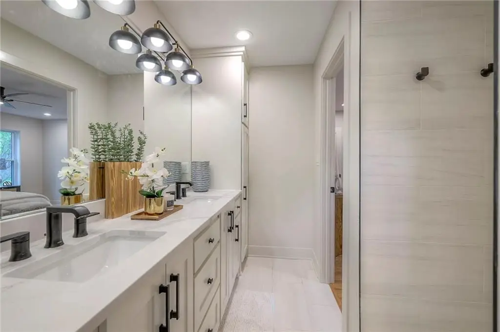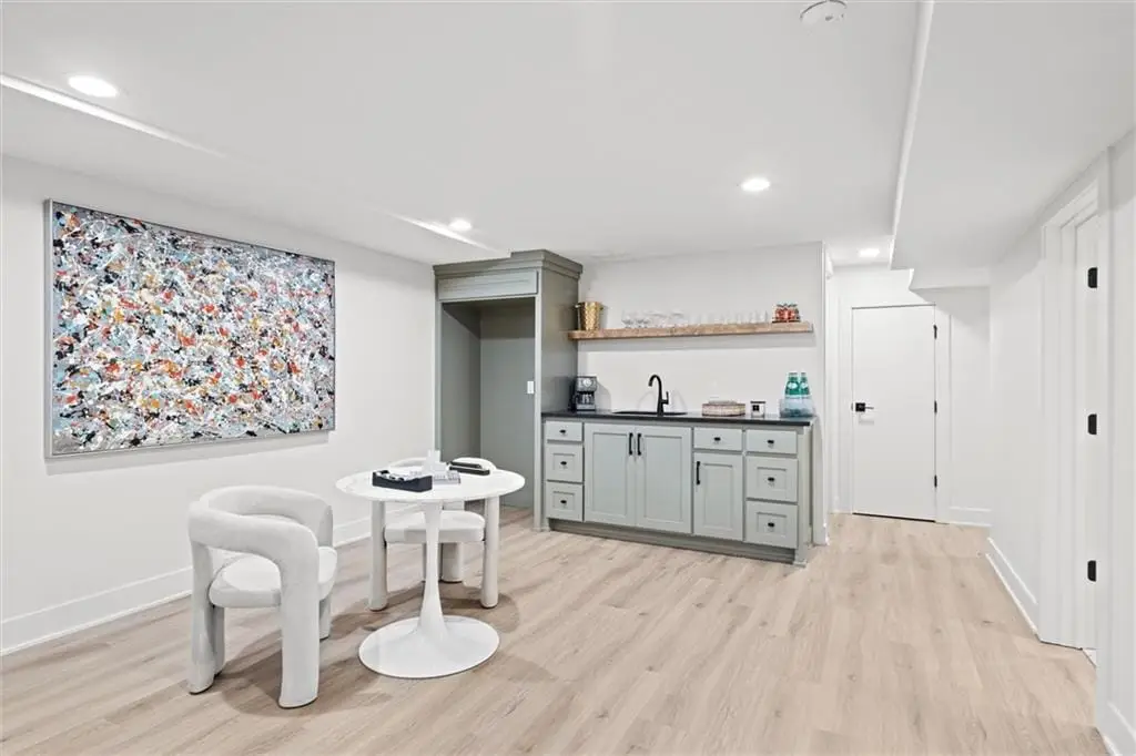Welcome to this quintessential Old Leawood sprawling ranch nestled on a beautiful lot in Leawood Estates. This 1.5-story brick and stucco home has been completely remodeled to perfection by combining modern luxury with timeless elegance. New concrete work, new sprinkler system, new garage doors, and new sod welcome you. As you enter the new front door, details abound. The expansive floor plan seamlessly connects the kitchen, dining and living areas. The stunning kitchen is loaded with high end appliances, under mount lighting, quartz, an island, accent lighting and the fridge stays. The home is outfitted with all new windows, doors and a slider. There is even the most beautiful butler’s pantry tucked away, but sure to delight. The family room is grounded by shelving and cabinets flanking the shiplap and brick fireplace wall. The large formal living room/dining room is complete with an accent wall. There is an office/ bedroom on the main level along with the deluxe primary suite retreat. A huge walk-in closet, sitting area and beautifully appointed bathroom with a walk-in spa-like shower await. Ambient lighting and accent stair carpeting invite you upstairs to two adorable and huge secondary bedrooms and an oversized bathroom that is fun and fresh. The basement is a dream. There is plenty of room to watch TV, play games and entertain with multiple living spaces, closet storage space and a wet bar! There are two additional bedrooms with new egress windows and big closets, plus a full bathroom to finish off this floor plan. The backyard has a concrete slab and is treed, with new grass and a full sprinkler system.