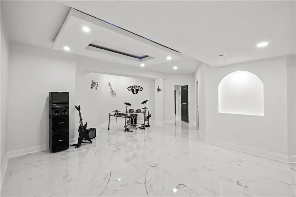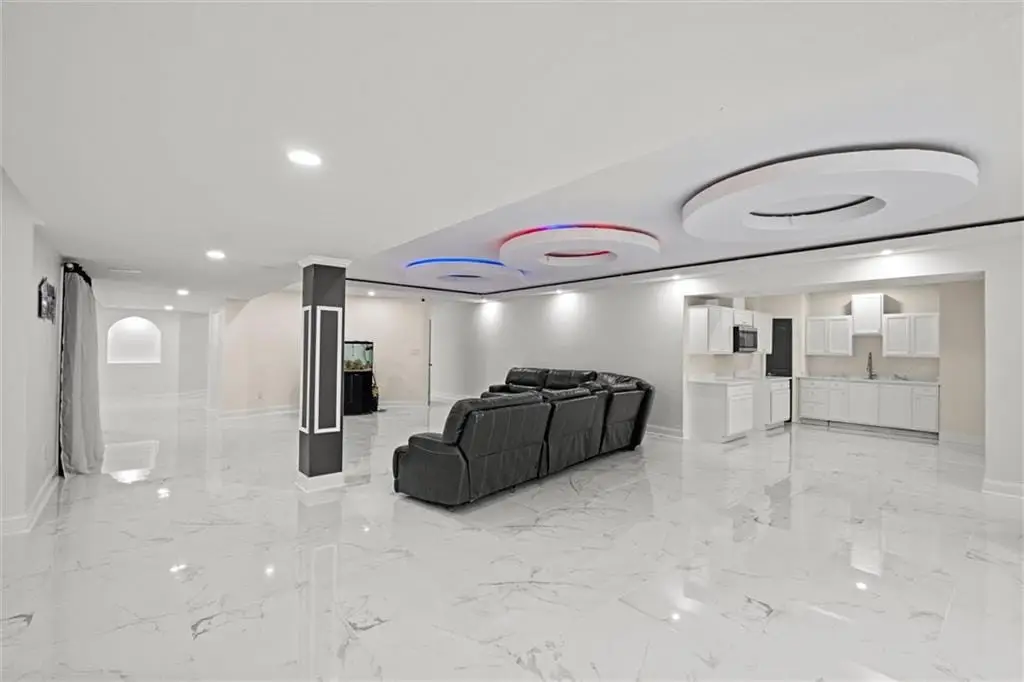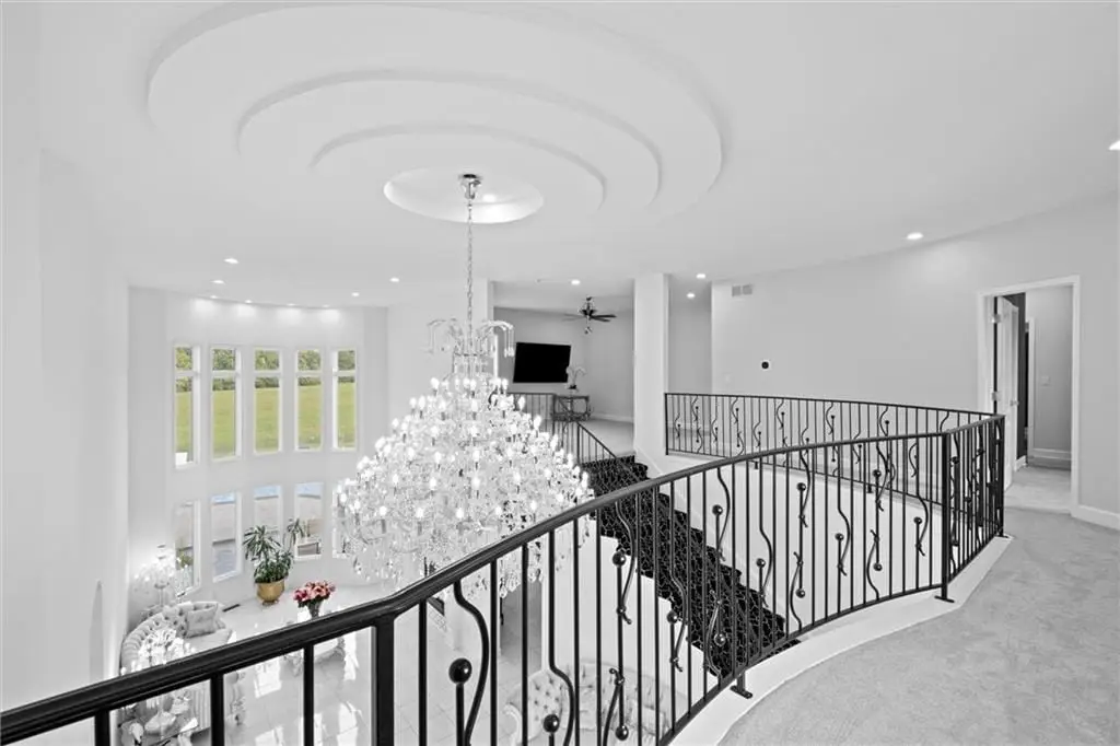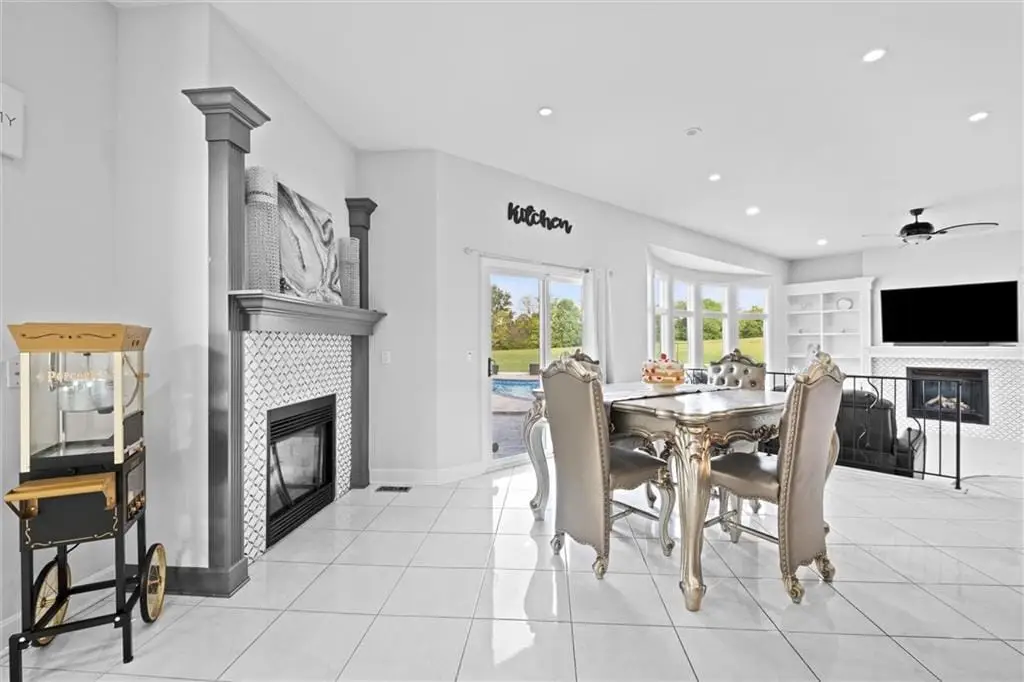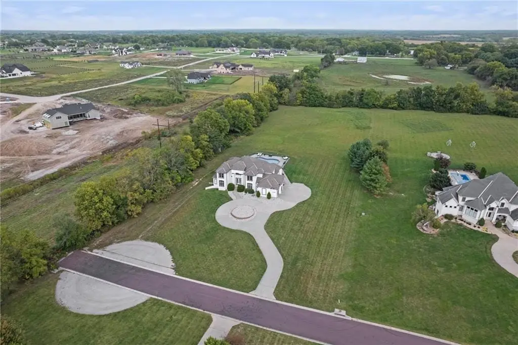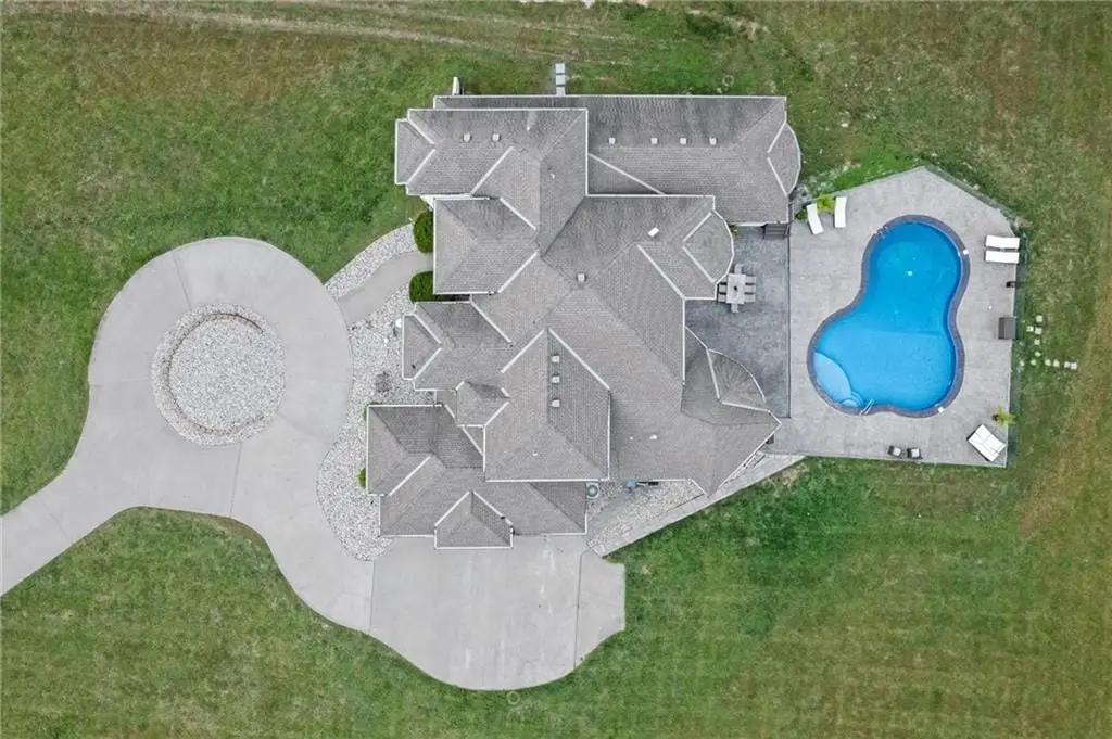Stunning luxury estate on four acres in the coveted Wildflower Subdivision! Centrally located in highly desired Lee's Summit, featuring top-rated schools, and bordering the communities Legacy Park Complex where you will find 692-acres with softball, baseball, football and soccer complexes. The park also includes 3 shelters, Lovell Community Center, a 22-acre lake with fishing dock, disc golf course, amphitheater, playground, and a 4.7-mile trail. This home offers 5 bedrooms plus a 6th & 7th nonconforming in basement, a dedicated office on main level, 4 full and 3 half baths, and oversized 4-car garages. Soaring 20' entry ceiling & 22' formal living ceilings with floor-to-ceiling windows and a see-through fireplace into the chef's kitchen, which features a top-of-the-line Viking Refrigerator, 6-burner gas stove, Dual Islands with Prep Sink, 2 dishwashers, Pot Filler, Granite Counters, and a large walk-in pantry with built-in counter space. The oversized primary suite includes direct access to the pool, a see-through fireplace into the spa-like bath with whirlpool tub, dual vanities, dual-head shower, and a huge 3-tier walk-in closet with private laundry. Upstairs features a large loft, walk-in closets in every room, and a second laundry. The newly finished walkout basement was just finished in 2025 w/ upgraded tile throughout and offers true multigenerational living potential with its own 4th car garage, full kitchen with New SS appliances and walk-in pantry, 3rd laundry area, 3 living room/recreational areas, theatre room, 3 bedrooms (2 non-confirming), 3 bathrooms, and a walkout to the side yard. The backyard is an entertainer's dream w/ a nearly new heated vinyl pool, new stamped concrete patio, & glass fencing, plus tons of open backyard space for recreational sports. Additional features include a Reolink hardwired security system w/ 16 cameras, oversized deep garage bays, a beautiful circle driveway, & abundant storage. Upgraded lighting and plumbing throughout.