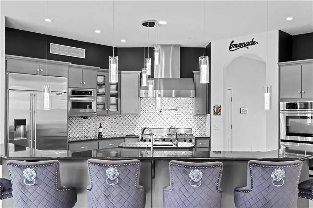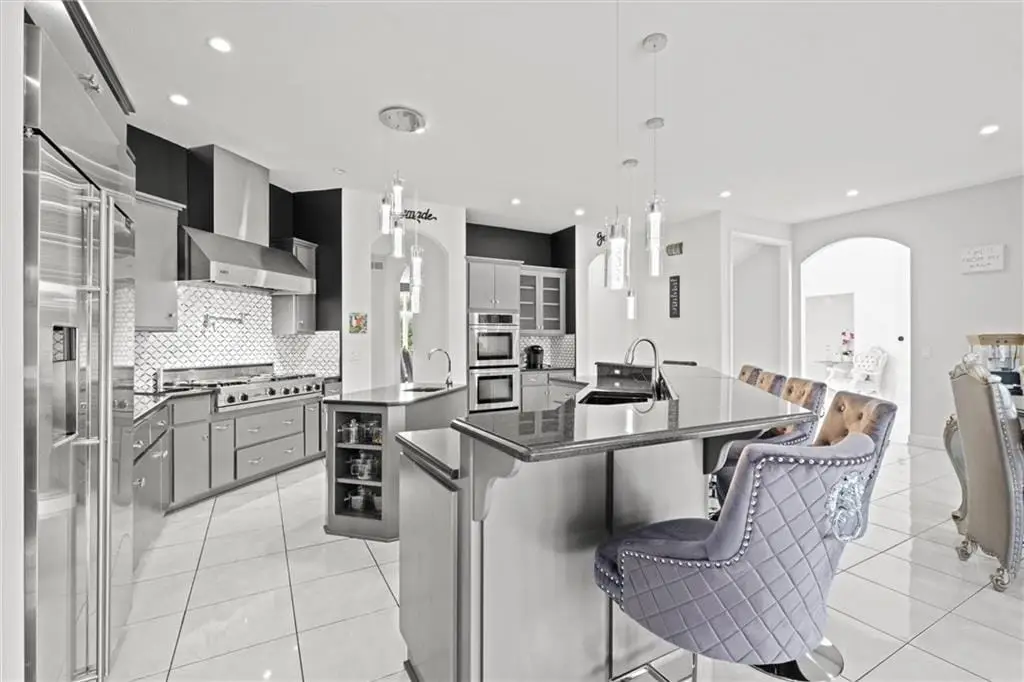 Chef's kitchen with Viking Refrigerator and Dual Islands