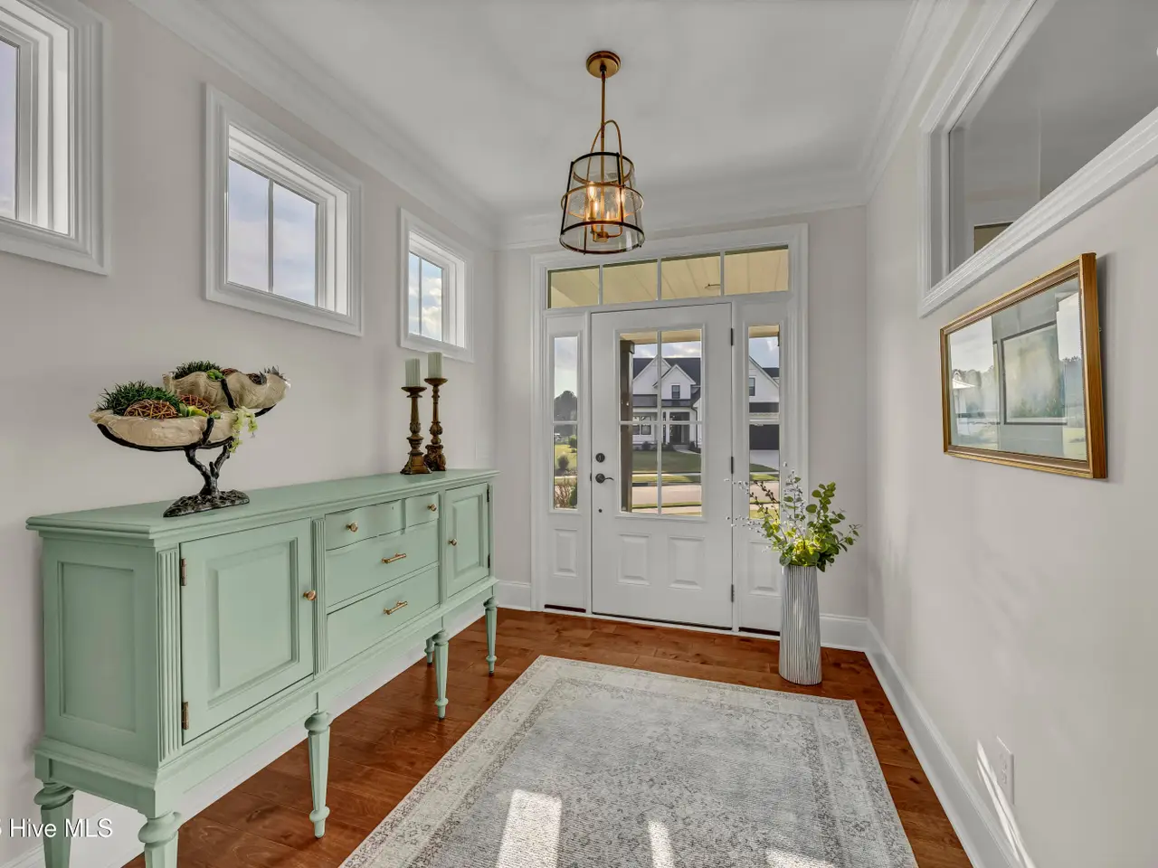 Magnificent Custom Home in Brunswick Forest's distinguished Peninsula at Cape Fear National. This one-of-a-kind masterpiece, built by award-winning Liberty Homes, is a rare gem, blending timeless architecture, superior craftsmanship, and thoughtful upgrades that make it truly better than new. Perfectly positioned on a premier homesite with only one neighboring property, it offers tranquil water views, sweeping golf course vistas, and natural areas enhanced by lush privacy landscaping. Enjoy serene sunrises from the rear lanai or upstairs balcony and sunsets from the front porch or exercise room's bar-top window.Step inside and instantly feel the wow factor. Soaring ceilings, fine millwork, and abundant natural light create elegance and openness. The reimagined chef's kitchen features KitchenAid appliances, a peninsula, high-velocity exterior vented exhaust fan, under-cabinet lighting, custom windows, and an oversized slider for seamless indoor-outdoor living. The luxurious owner's suite is a private retreat with spa-inspired bath, soaking tub, exquisite tilework, and heated ceiling fan. The guest bath impresses with a full-height tile surround framing an oversized soaking tub. Hot water recirc ensures instant hot water at every faucet.Every detail has been elevatedcustom lighting, window treatments, hardwood floors, extended patio, insulated porch ceiling, built-in garage cabinetry, and abundant storage including a walk-in attic. Built to exceed NC wind code standards and verified through independent inspections, this home provides lasting peace of mind.HOA services include full lawn care, trimming, fertilization, and pine straw replacement. Residents also enjoy Brunswick Forest's resort-style amenitiesthree outdoor pools, an indoor pool, fitness centers, tennis, pickleball, classes, clubs, and endless activities.
