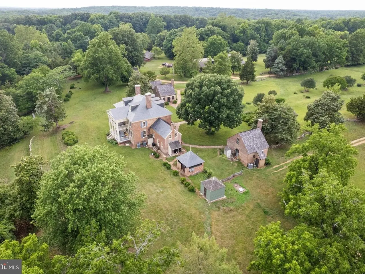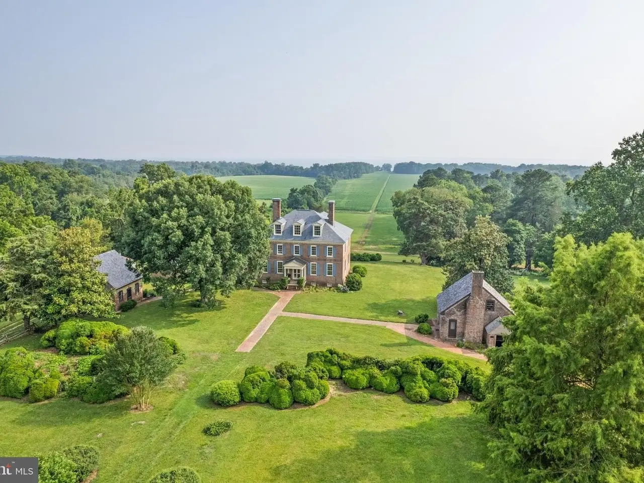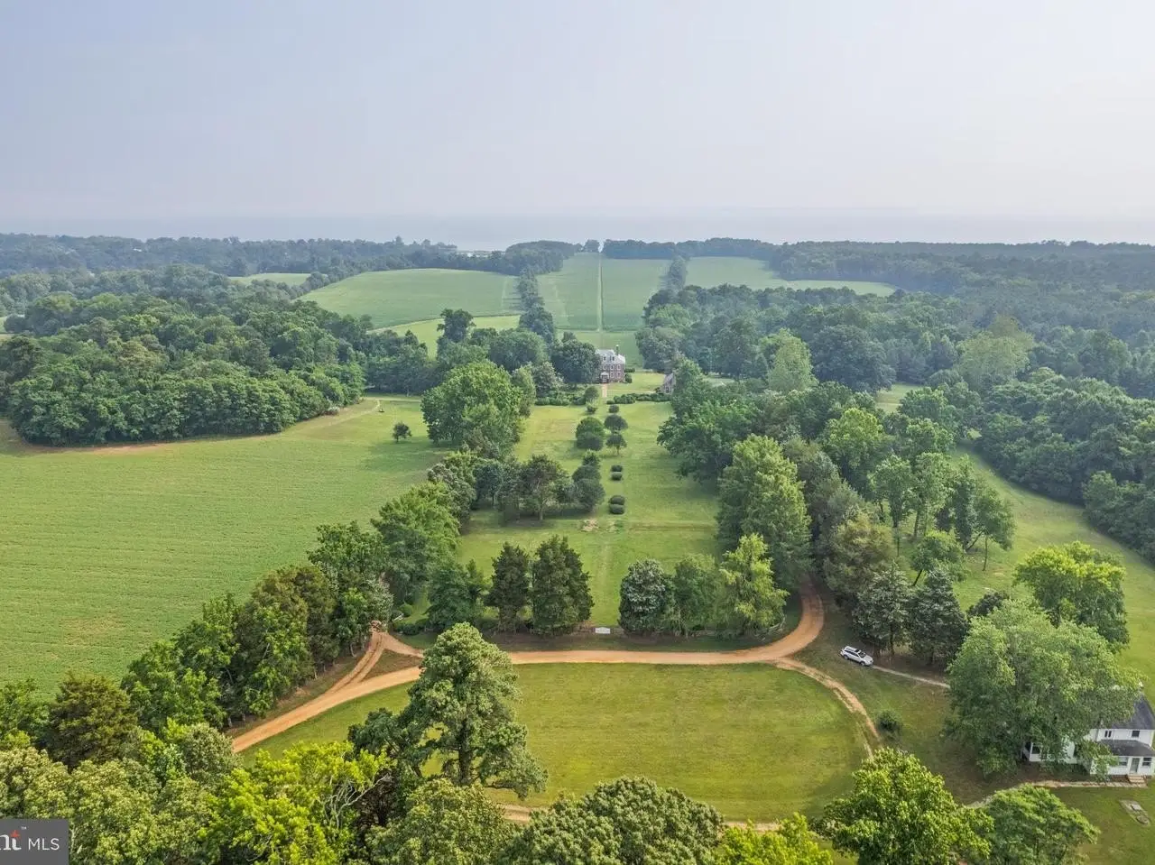 Welcome to Historic Mulberry Fields, situated on just under 500 acres of fertile land with a mile-long view of the Potomac River's white sand shoreline, is truly one of a kind. As you drive along the cedar-lined driveway, you are transported back in time as the magnificent manor house appears in front of you. It is the only remaining Georgian manor house in St. Mary's County today. From the south facade, the magnificent mile-long "Avenue Field," lined with trees stretching to the Potomac River provides a breathtaking panoramic view downhill to the white sandy riverbank. The interior of the manor house is of simple and educated taste. The grand center hall and the 2 front (south) rooms (the great room and dining room) have walls of rectangular raised panels to the ceiling, making it one of the most completely paneled 18th-century houses in Maryland. Throughout the house, many original moldings, doors, and mantels are intact. Air conditioning and heating were added to all rooms. The owners retained an architectural firm and have plans - approved by the Historic Trust - for a renovation that would enlarge the kitchen, the bathrooms and adding another wing to the house on the west side. Flanking each side of the north entrance are 2 historic dependencies, both similar in design. Each is of brick, 2-story in height. They were placed symmetrically north of the mansion, forming a rectangular court with the Kitchen Garden, Bowling Green and Orchard separated by a row of large boxwoods. These buildings were used as service buildings with the East dependency as "The Kitchen"and the West dependency as the "The Weaving House." These structures were used to house slaves, such as cooks, stable hands, waiters, and housekeepers who were tasked with running the household and gave the mansion and outbuildings the appearance of a busy village. "The Kitchen" has been remodeled and now serves as a guest cottage, while the "Weaving House" retains its original historic riven clapboard partition walls, floors, doors, and hardware. Next to the 2 dependencies flanking the Manor House are numerous other historic buildings, such as the "Dairy" and the "Meat/Smoke House" (both east of the Manor House). Other historic buildings include a Carriage House, a Garage/Tool Shed, an Art Studio, a Pole Barn, a Horse and Cattle Barn, a Tobacco Barn, a remodeled Sheep Barn, 2 Equipment Barns, a Farmhouse, and an old dwelling that could be remodeled and turned into a rental unit. Several buildings were added in the 1930s. These include 6 occupied rental units, incl. 3 units in what was previously the Sheep Barn, a 4-BR Farmhouse, a 1-BR Cottage in the renovated "Kitchen" and a 1-BR Trailer. Taken together, these currently produce an income of $70,000. Add'l income is provided by leasing the fields for farming and from the U.S. Navy that keeps a navigation signal on the Potomac River. More income can be obtained by renovating some of the existing buildings. With that Mulberry Fields could have a total of twelve rental units. Mulberry Fields was added to the National Registry of Historic Places in 1973. The Maryland Historical Trust Deed of Easement ALLOWS LIMITED INDUSTRIAL OR COMMERCIAL activities to be conducted at Mulberry Fields if the external appearances of its buildings are not altered (please ask for more info). Owners of Mulberry Fields must abide by a Conservation Easement, a Historical Preservation Easement, and three Rd Easements. Appr. 100 acres of land is leased out for farming and 300 acres is forest. This unique historic property is close to Leonardtown, Lexington Park and Solomon's Island with numerous historic sites, wineries, antique shops, art galleries and restaurants, Deerfield Airport (private jet) as well as St. Mary's County Regional Airport. 1h15 min drive to Washington DC and its major airports - Dulles Int'l Airport, and Reagan Nat'l Airport. MORE IN-DEPTH HISTORY AVAILABLE UPON REQUEST.