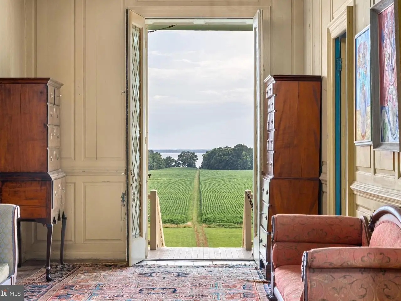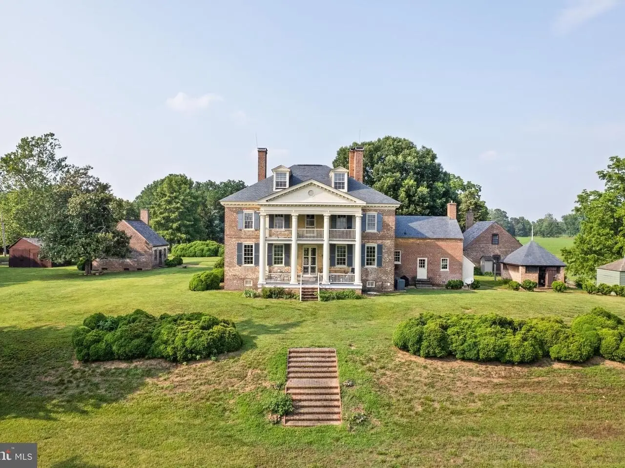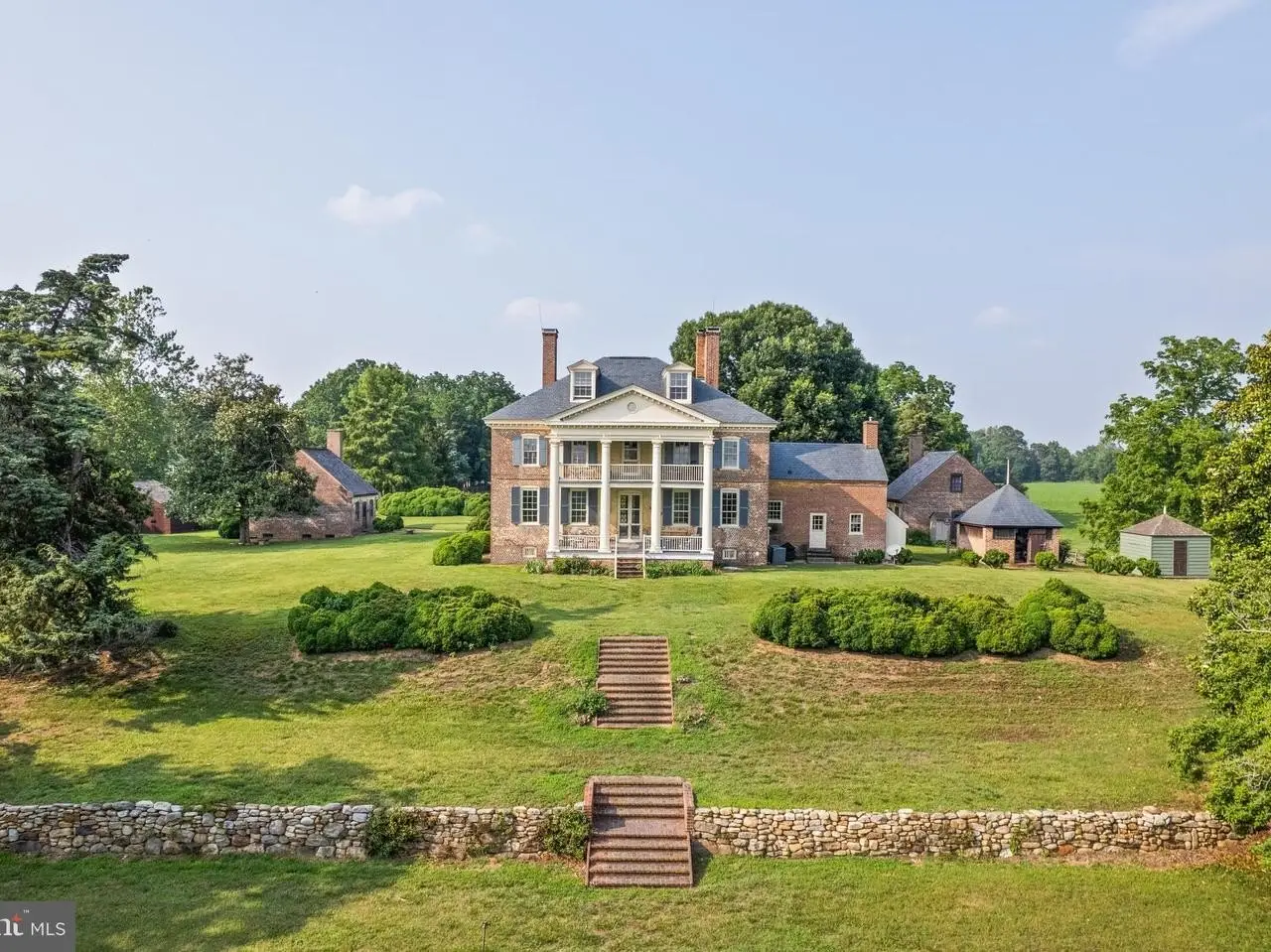 Welcome to Historic Mulberry Fields, situated on just under 500 acres of fertile land with a mile-long view of the Potomac River's white sand shoreline, is truly one of a kind. As you drive along the cedar-lined driveway, you are transported back in time as the magnificent manor house appears in front of you. It is the only remaining Georgian manor house in St. Mary's County today. From the south facade, the magnificent mile-long "Avenue Field," lined with trees stretching to the Potomac River provides a breathtaking panoramic view downhill to the white sandy riverbank. The interior of the manor house is of simple and educated taste. The grand center hall and the 2 front (south) rooms (the great room and dining room) have walls of rectangular raised panels to the ceiling, making it one of the most completely paneled 18th-century houses in Maryland. Throughout the house, many original moldings, doors, and mantels are intact. Air conditioning and heating were added to all rooms. The owners retained an architectural firm and have plans - approved by the Historic Trust - for a renovation that would enlarge the kitchen, the bathrooms and adding another wing to the house on the west side. Flanking each side of the north entrance are 2 historic dependencies, both similar in design. Each is of brick, 2-story in height. They were placed symmetrically north of the mansion, forming a rectangular court with the Kitchen Garden, Bowling Green and Orchard separated by a row of large boxwoods. These buildings were used as service buildings with the East dependency as "The Kitchen"and the West dependency as the "The Weaving House." These structures were used to house slaves, such as cooks, stable hands, waiters, and housekeepers who were tasked with running the household and gave the mansion and outbuildings the appearance of a busy village. "The Kitchen" has been remodeled and now serves as a guest cottage, while the "Weaving House" retains its original historic riven clapboard partition walls, floors, doors, and hardware. Next to the 2 dependencies flanking the Manor House are numerous other historic buildings, such as the "Dairy" and the "Meat/Smoke House" (both east of the Manor House). Other historic buildings include a Carriage House, a Garage/Tool Shed, an Art Studio, a Pole Barn, a Horse and Cattle Barn, a Tobacco Barn, a remodeled Sheep Barn, 2 Equipment Barns, a Farmhouse, and an old dwelling that could be remodeled and turned into a rental unit. Several buildings were added in the 1930s. These include 6 occupied rental units, incl. 3 units in what was previously the Sheep Barn, a 4-BR Farmhouse, a 1-BR Cottage in the renovated "Kitchen" and a 1-BR Trailer. Taken together, these currently produce an income of $70,000. Add'l income is provided by leasing the fields for farming and from the U.S. Navy that keeps a navigation signal on the Potomac River. More income can be obtained by renovating some of the existing buildings. With that Mulberry Fields could have a total of twelve rental units. Mulberry Fields was added to the National Registry of Historic Places in 1973. The Maryland Historical Trust Deed of Easement ALLOWS LIMITED INDUSTRIAL OR COMMERCIAL activities to be conducted at Mulberry Fields if the external appearances of its buildings are not altered (please ask for more info). Owners of Mulberry Fields must abide by a Conservation Easement, a Historical Preservation Easement, and three Rd Easements. Appr. 100 acres of land is leased out for farming and 300 acres is forest. This unique historic property is close to Leonardtown, Lexington Park and Solomon's Island with numerous historic sites, wineries, antique shops, art galleries and restaurants, Deerfield Airport (private jet) as well as St. Mary's County Regional Airport. 1h15 min drive to Washington DC and its major airports - Dulles Int'l Airport, and Reagan Nat'l Airport. MORE IN-DEPTH HISTORY AVAILABLE UPON REQUEST.