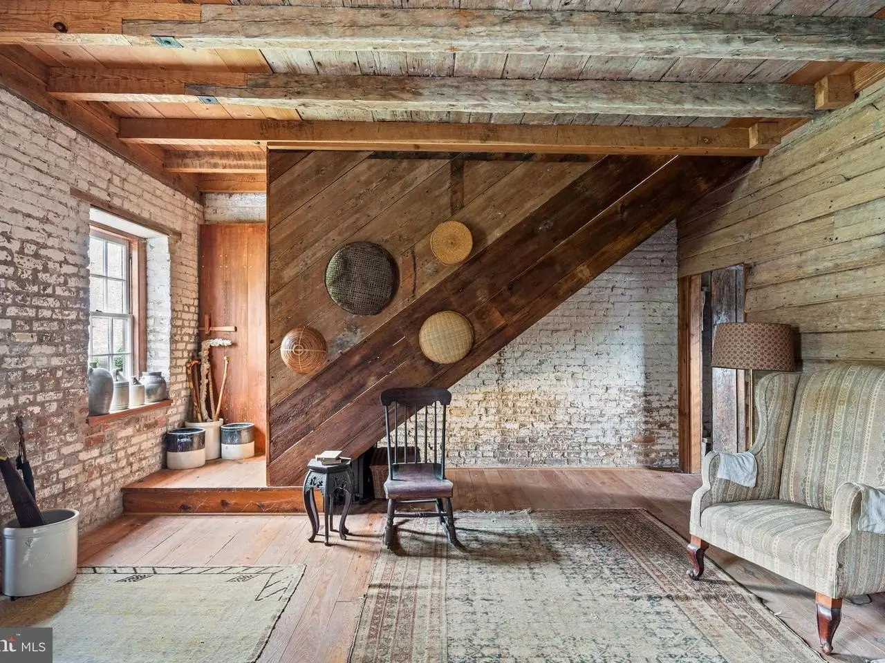 Original riven clapboard partition walls in "The Weaving House"