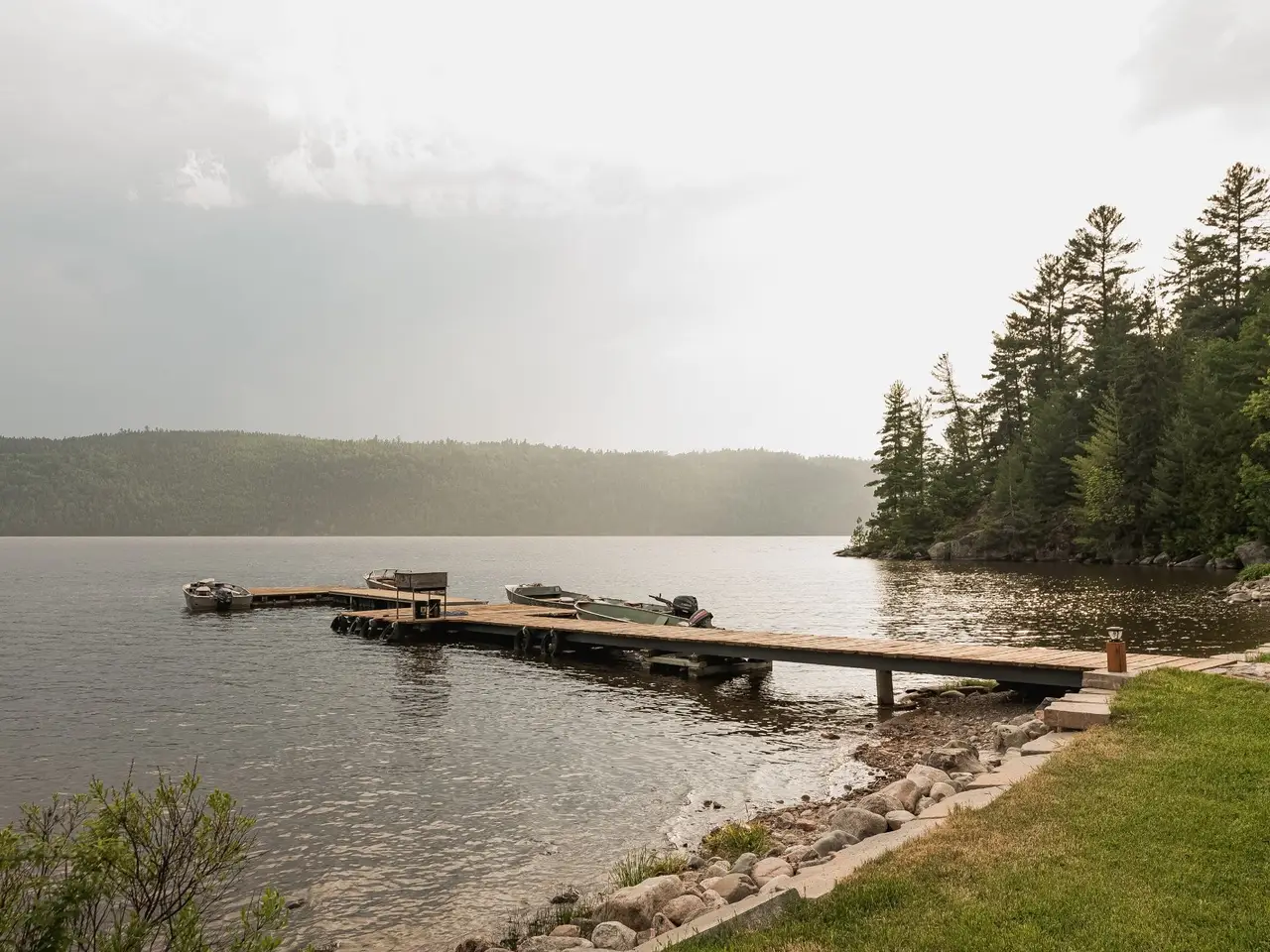 The historic Topping Retreat, nestled between towering spruce and pines, in a sheltered cove alongside the Kipawa River, is one of Quebec's most serene and isolated properties. Formerly owned by the legendary Topping Family, the retreat has lured lumberjacks, fishermen, movie stars and millionaires. Featuring four beautifully crafted log cabins with stone fireplaces and handmade furniture, the property's true value is its undisturbed privacy, world-class fishing, artesian spring water and 90-foot waterfall. Unlike anything available on the market, this is a rare opportunity to own a piece of history in a magnificent wilderness setting.