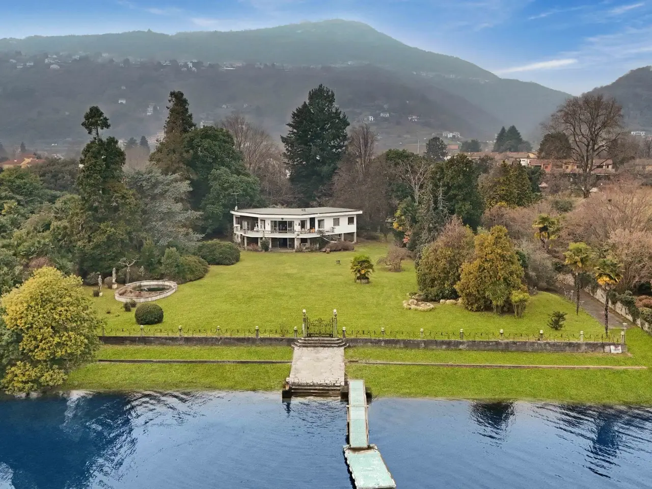 A dream reflected in the crystal clear waters of Lake Maggiore: this extraordinary luxury pieds dans l'eau villa is located on the Piedmont shore, in a simply unique location. Here, the beauty of nature blends with the elegance of architecture, creating an exclusive oasis of peace and refinement. Directly overlooking the lake, the prestigious property offers private access on the water thanks to its private beach and jetty, perfect for those who love to experience the lake in all its nuances. Flat parkland of 8,460 square meters surrounds the former greenhouses and the three residences that make up the property: Main villa of about 350 sqm Two detached cottages of 104 sqm and 64 sqm - ideal for guests or a luxury rental business Main villa The main villa is on two levels and welcomes its guests with a large hexagonal entrance hall that leads to the bright living room, overlooking a panoramic terrace. From here, the gaze is lost in the ripples of the lake, providing ever new and breathtaking scenery. The dining room and dinette, connected to the kitchen, offer a warm and convivial environment, perfect for moments of sharing. The sleeping area, located on the same floor, houses four bedrooms, three of which have spectacular lake views, and two bathrooms. Fine details, such as parquet floors and Calacatta marble in the entrance hall and living room, further embellish this home of timeless charm. Relaxation and Comfort Area Descending to the basement level, one discovers an area dedicated to relaxation and pleasure: A large living room with a fireplace that opens directly onto the garden A wine cellar perfect for wine lovers A service room A bathroom Outside, a large porch wraps around part of the villa, creating an area perfect for enjoying the gentle lake breeze. A convenient garage completes the property. Independent Villas The two independent cottages, surrounded by greenery, represent an added value for those who wish to welcome guests in a private setting or develop a luxury rental business. Surfaces: the main villa, approx. 300 sq. m., plus 150 of basement floor space Villa 2, sq m 104 Villa 3, surface area about 64 sq. m. Total gross usable area sq m 468 approx. expandable by 20% of the volume, which corresponds to sq m 93.