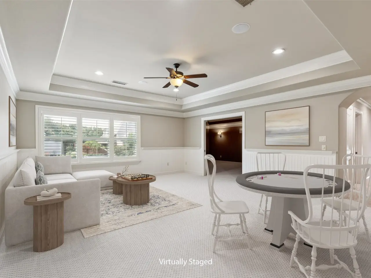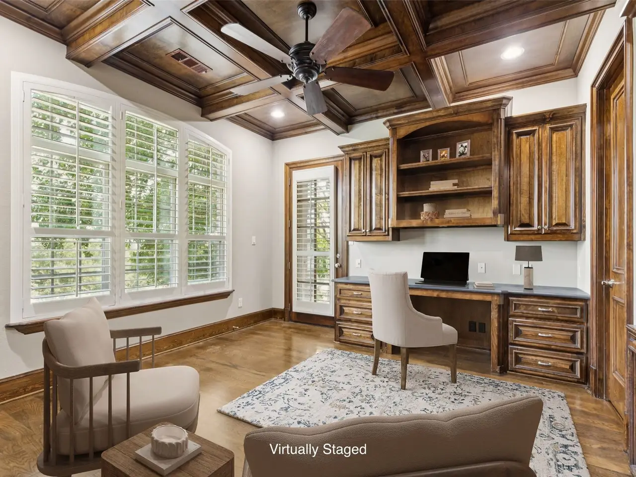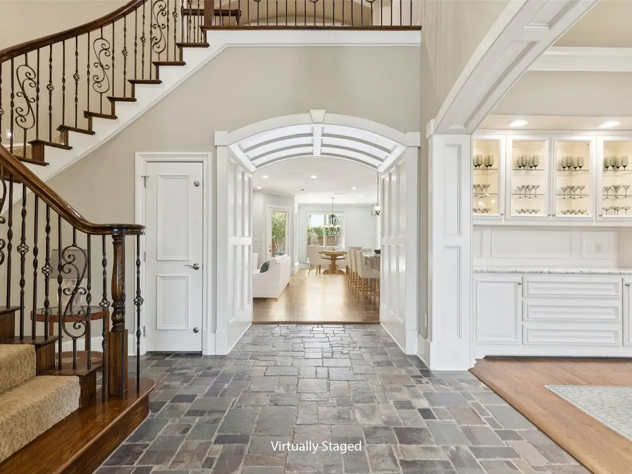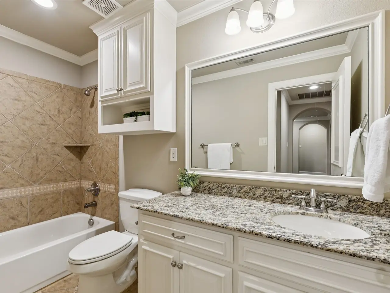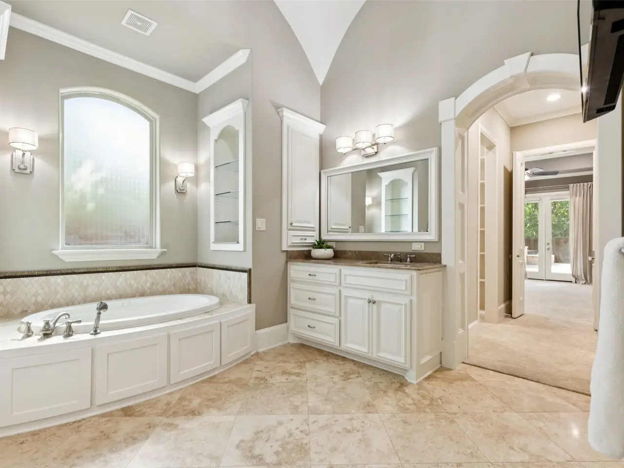 Beautifully designed with remarkable attention to detail, this Castle Hills home offers over 5,300 square feet of living space on a landscaped 0.325-acre lot. The flexible floor plan includes five bedrooms plus a private office, elegant dining areas, a spacious game room, and a fully equipped media room. The gourmet kitchen is the centerpiece of the home with built-in refrigerator, commercial-grade range, double ovens, expansive island, and walk-in pantry. It flows seamlessly into the family room with stone fireplace and views of the backyard. The primary suite on the main level is a private retreat featuring dual vanities, soaking tub, separate shower, and a generous walk-in closets with secondary washer and dryer connections. Highlights include hardwood and stone floors, wainscoting, decorative lighting, granite counters, multiple staircases, and a 3-car garage with alley access. Smart wiring, built-ins, and abundant storage add to the homes functionality. Outdoor living is exceptional with a sparkling pool, outdoor shower, covered patio, built-in grill, and full outdoor living centerperfect for entertaining or relaxing. The landscaped yard offers privacy and plenty of space to enjoy year-round. Located in the desirable Castle Hills community, residents enjoy access to walking trails, lakes, parks, golf, tennis, and a vibrant town center with shops and dining. Zoned to Lewisville ISD schools, this property combines luxury, comfort, and convenience in one of North Texas premier neighborhoods.