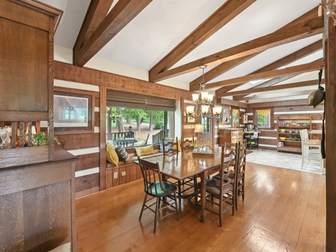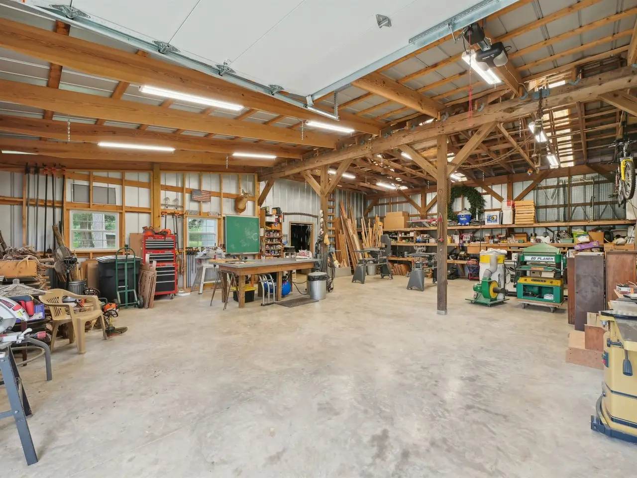 Stunning 47-Acre Retreat with a Custom Home, Pond & Outbuildings. This unique property features a 2,000 sq ft original cabin with vaulted ceilings, timber beams, and an incredible stone fireplace. In 2010 the kitchen was totally updated and a 1,200 sq ft timber-frame addition was built offering a spacious primary suite, sunroom, laundry room, additional full bath and attached garage. Permanent stairs lead to 1000+/- square feet of floored space that can easily be finished. A loft with walk-in closet overlooks the great room and could function as a fourth bedroom. With a five bedroom septic perc system, you have plenty of options. The land is ideal for recreational use with breathtaking views of the stocked 5-acre pond from the porch or dock and a screened picnic shelter and fire pit area. It can also function as a farm with fenced acreage, a chicken house, large powered outbuilding and greenhouse. Peaceful, private, and packed with possibilities - this property is a must-see!