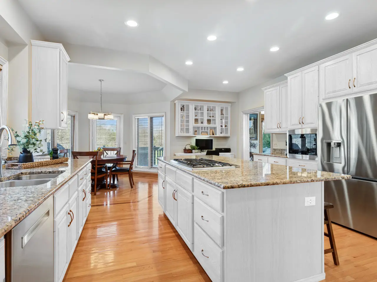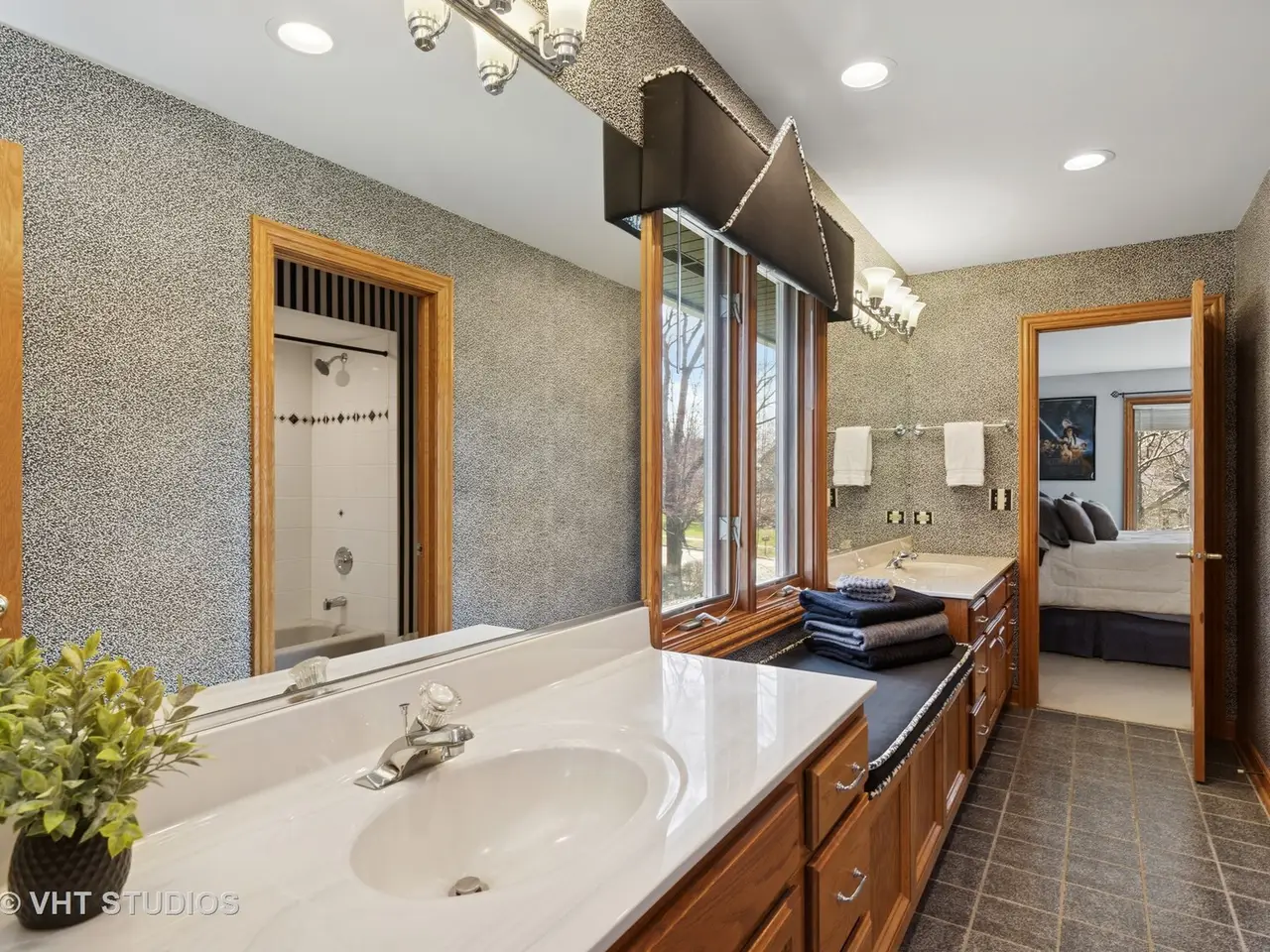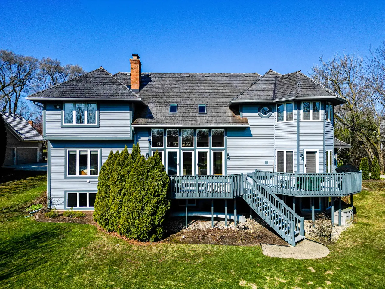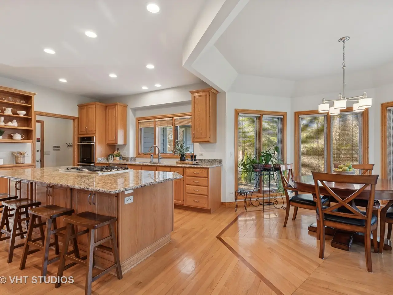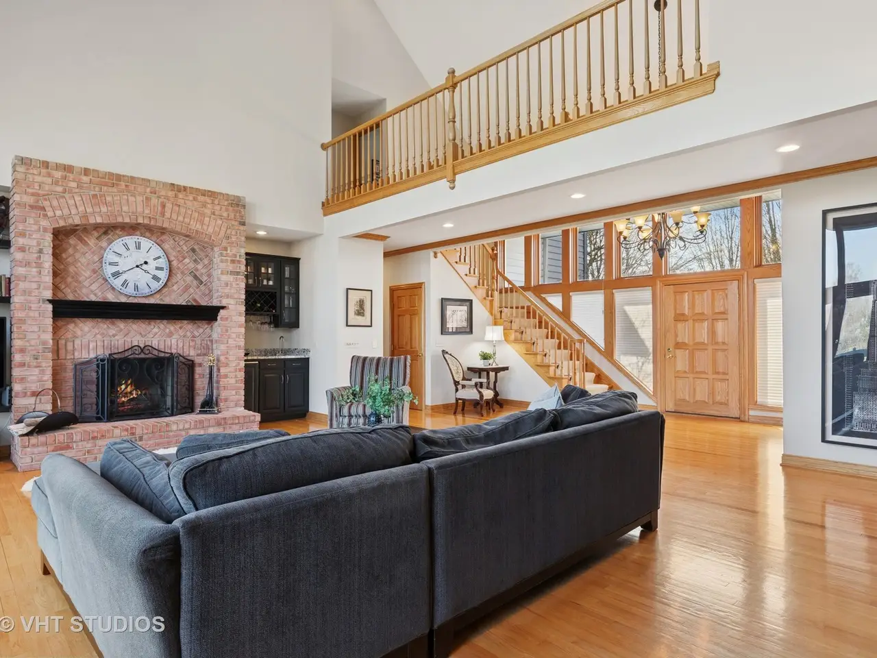 Tucked away on a quiet street in Libertyville's sought-after Wineberry neighborhood, this architecturally stunning 5-bedroom, 4-bathroom home offers the perfect mix of space, style, and privacy. Backing to open land, the backyard is incredibly serene-ideal for relaxing evenings or hosting friends and family. As you walk through the front door, you're welcomed into a dramatic great room with a soaring wall of windows that fills the space with natural light. The custom wet bar and beautiful fireplace make it a perfect spot for both entertaining and everyday living. The gourmet kitchen is not only spacious but thoughtfully designed, featuring granite countertops, high-end stainless appliances, and a unique octagon-shaped breakfast nook that makes every meal feel just a little more special. This home is made for today's lifestyle, with a first-floor office and a main-level bedroom with an adjacent, recently remodeled full bath-ideal for guests, extended family, or multigenerational living. There's also a formal dining room with plenty of space for hosting during the holidays or special occasions. Upstairs, the primary suite is a true retreat, complete with a cozy sitting area and a gorgeous, fully updated spa-inspired bathroom with a soaking tub, oversized walk-in shower, and dual vanities. Two more generously sized bedrooms share a large, well-appointed bath. The finished English basement offers so much extra space-whether you envision a media room, home gym, or a game room, there's room for it all. And tucked away downstairs, you'll find a hidden wine cellar that holds up to 3,000 bottles-a dream for any wine lover. With a new roof, fresh updates, and an unbeatable location near Libertyville's vibrant downtown, award-winning schools, METRA, and I-94, this home truly has it all. It's an incredible opportunity to enjoy luxury, comfort, and community-all in one amazing place.