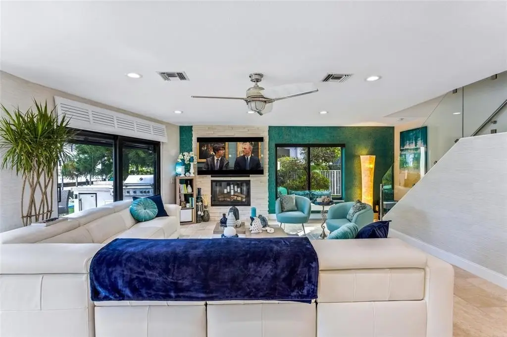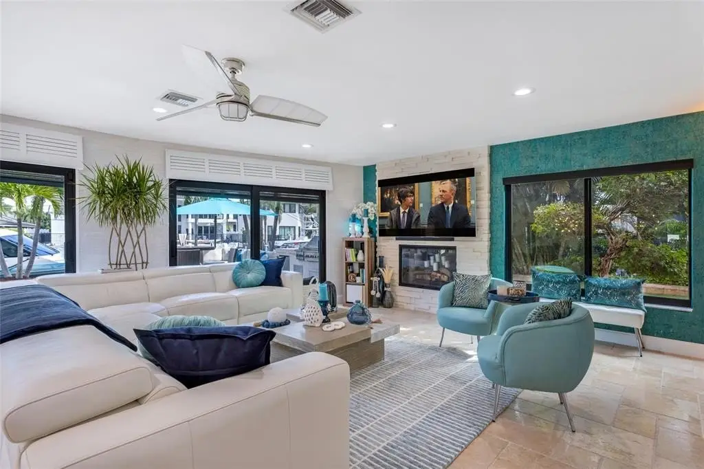 An idyllic lifestyle awaits at this Island-Inspired Deepwater Estate sited on 80’ of water frontage in the sought-after enclave of Lighthouse Point. Newly appointed designer interiors reveal 4 beds, 3 Full Baths, 1 Half bath, office & 3,226 living Sq. Ft. Impressive foyer entrance leads into a light-filled open floorplan featuring great room w/fireplace, guest suite, cabana bath & luxe kitchen overlooking waterway. Three bedrooms upstairs including large primary suite with private waterfront balcony. Amenities include fully outfitted 2 bay garage, new roof in 2019, new pavered driveway, gutters, 2 zone a/c and impact windows. Outdoor entertainment is enjoyed at the pavered patio w/resort style pool surrounded by turf and lush landscaping. Full-service yacht dock minutes to the intracoastal.